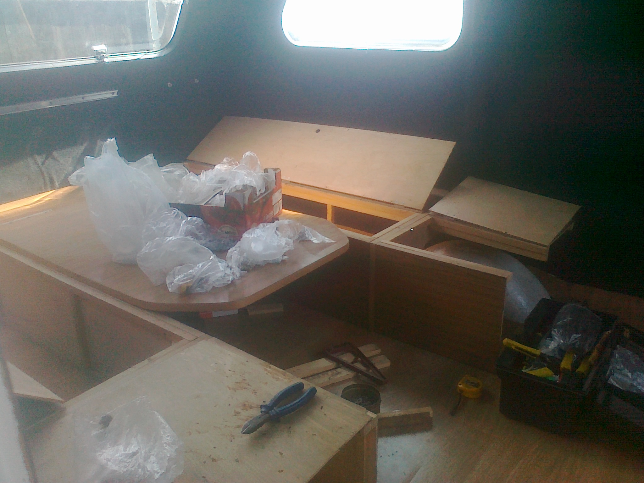 Powoli do przodu. Jak widać na zdjęciach trochę pierdolnik w środku ale w tym roku podłączyłem światła, przejrzałem i przesmarowałem łożyska, częściowy montaż mebli i podłączenie elektryki i gazu.