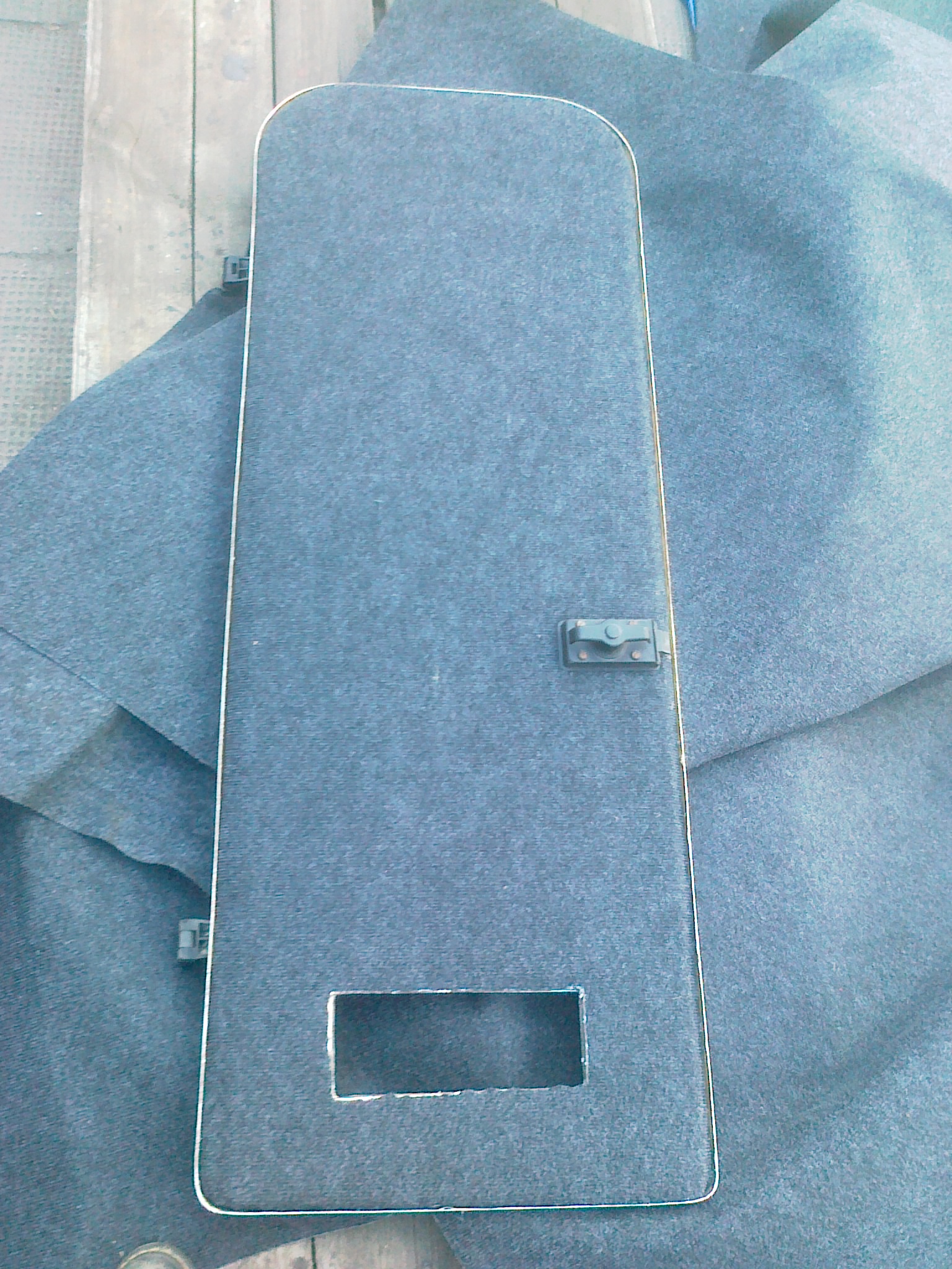 Dzisiejsze prace nad szafką nad zlewem. Półka miała oberwane drzwiczki oraz front więc dorobiłem cały nowy ze sklejki, umocowałem audio. Brak jeszcze okleiny na zamknięciach w kolorze nawiązującym do orginalnych mebli.