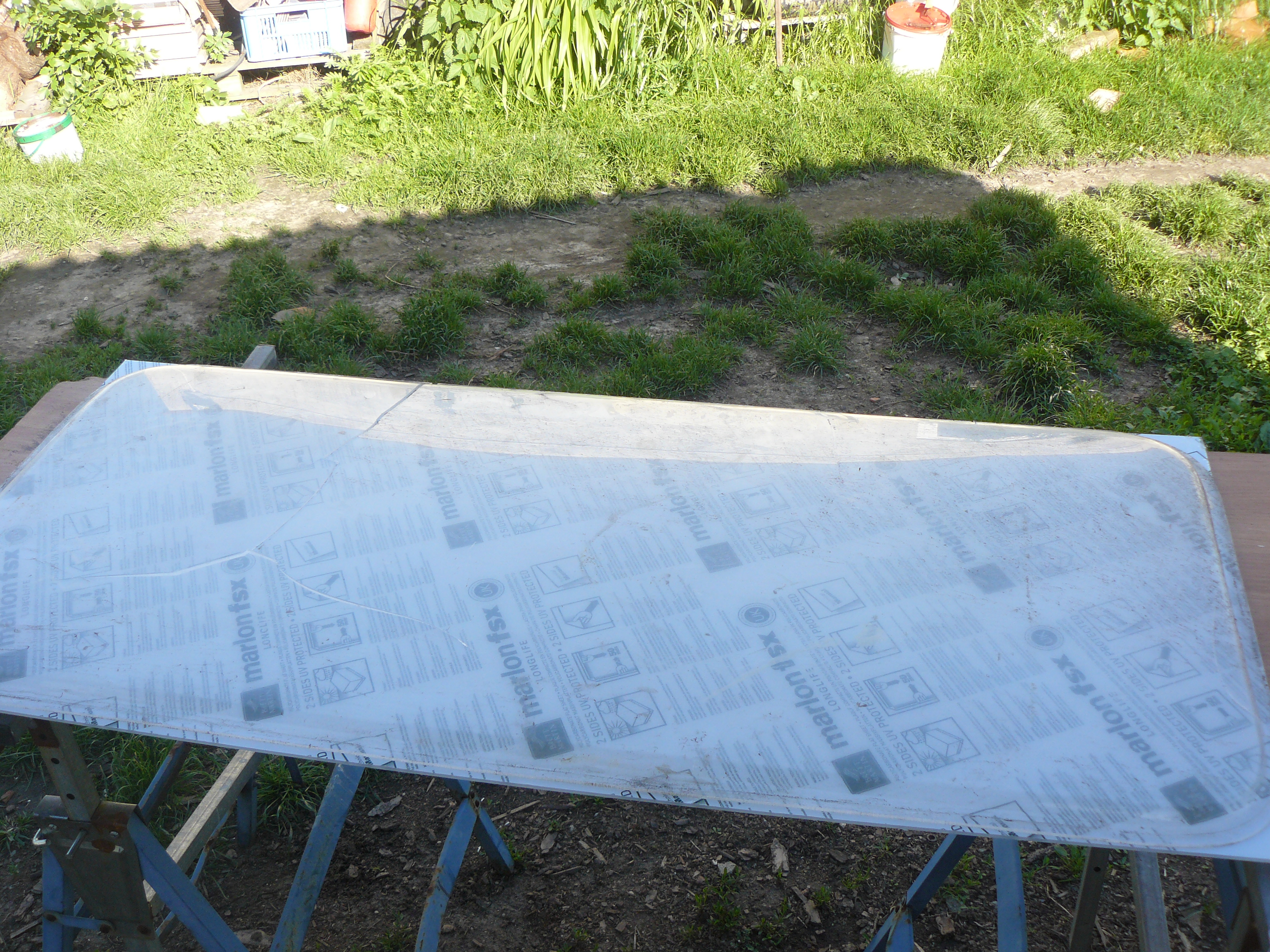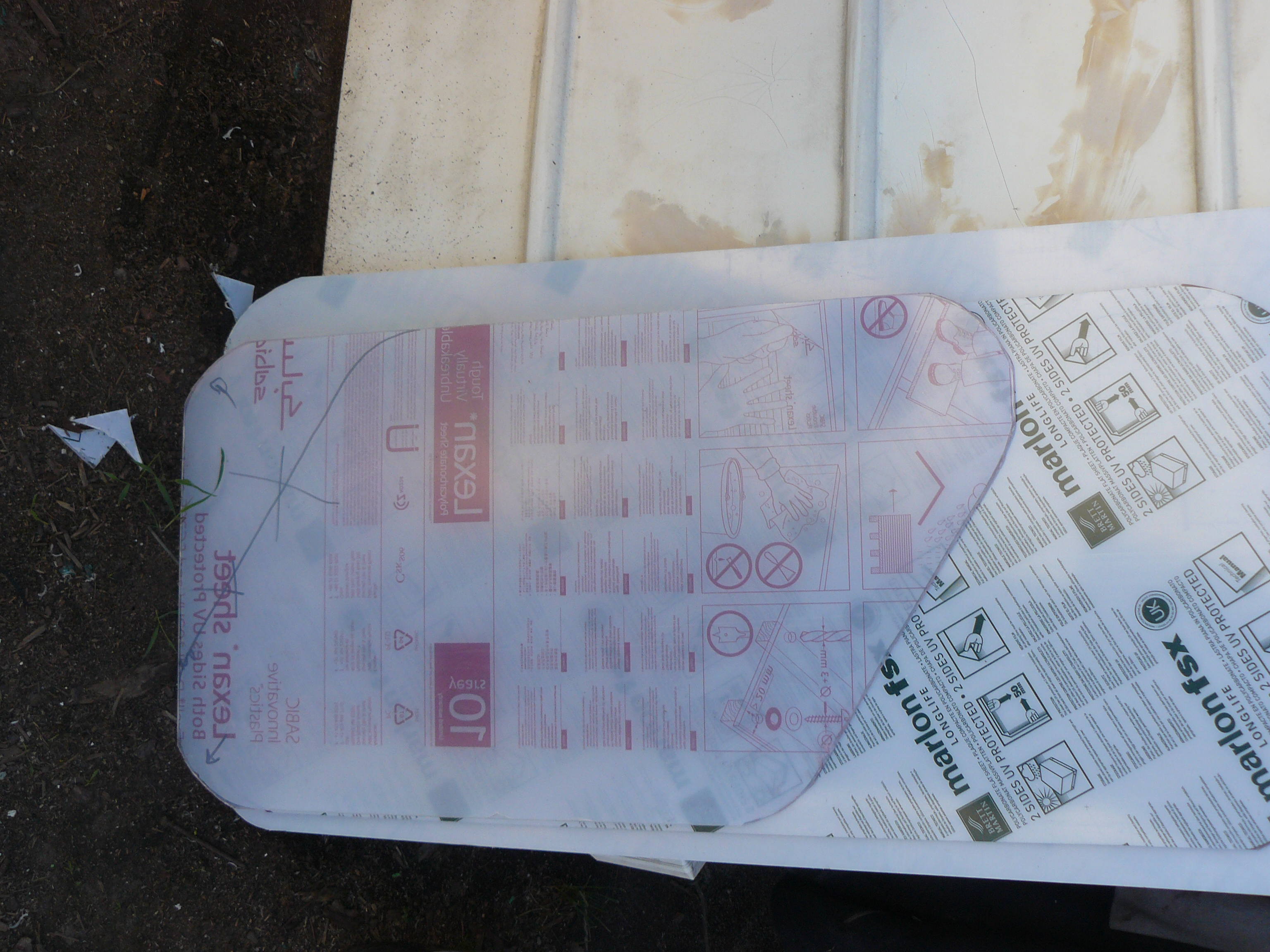 Zamówiłem prostokąty poliwęglanu, stare szyby posłużyły jako wzornik do wycięcia "krągłości".