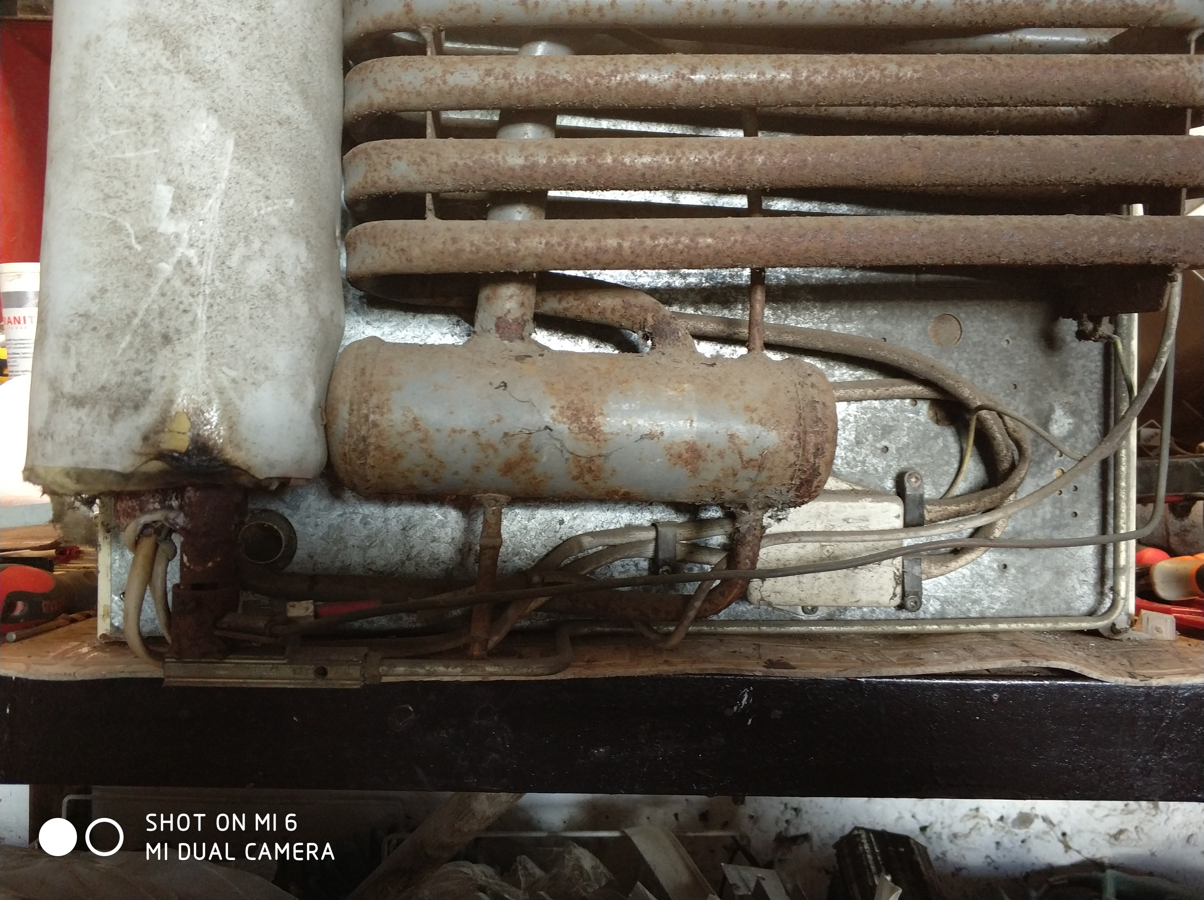 Dziś rozebrałem lodówkę. Szczerze? robota czysta i przyjemna. Parę śrubek i cały tył goły. Zdziwieniem okazała się dla mnie grzałka w jednym bolcu na 12V i 220V. Wszystko nadające się do czyszczenia i malowania. Więc działamy z lodówką... Nawet tylny styropian na wcisk i docięty fajnie na zamek - wyciągam styropian zamek i wszystko wychodzi i na wierzchu.