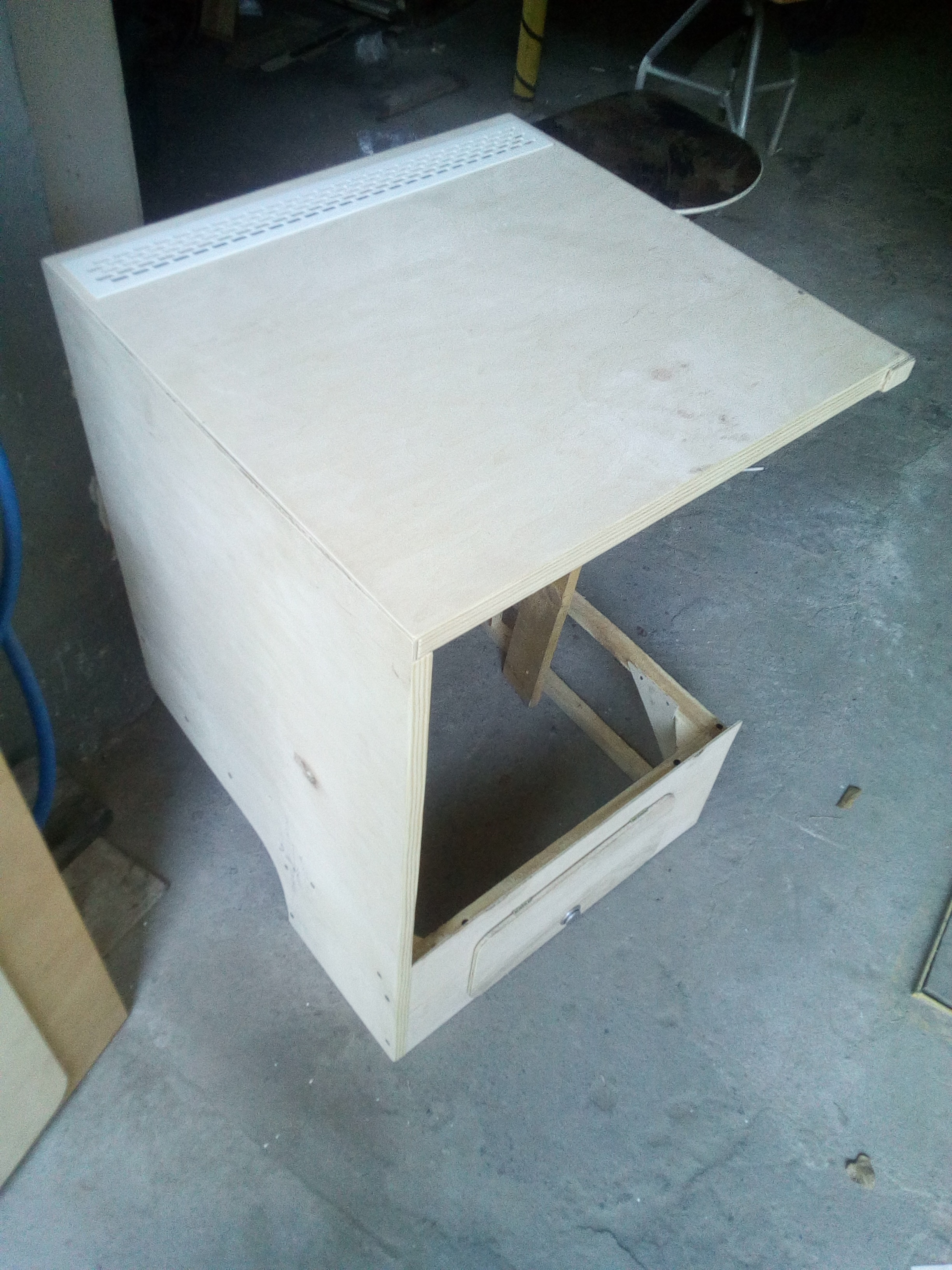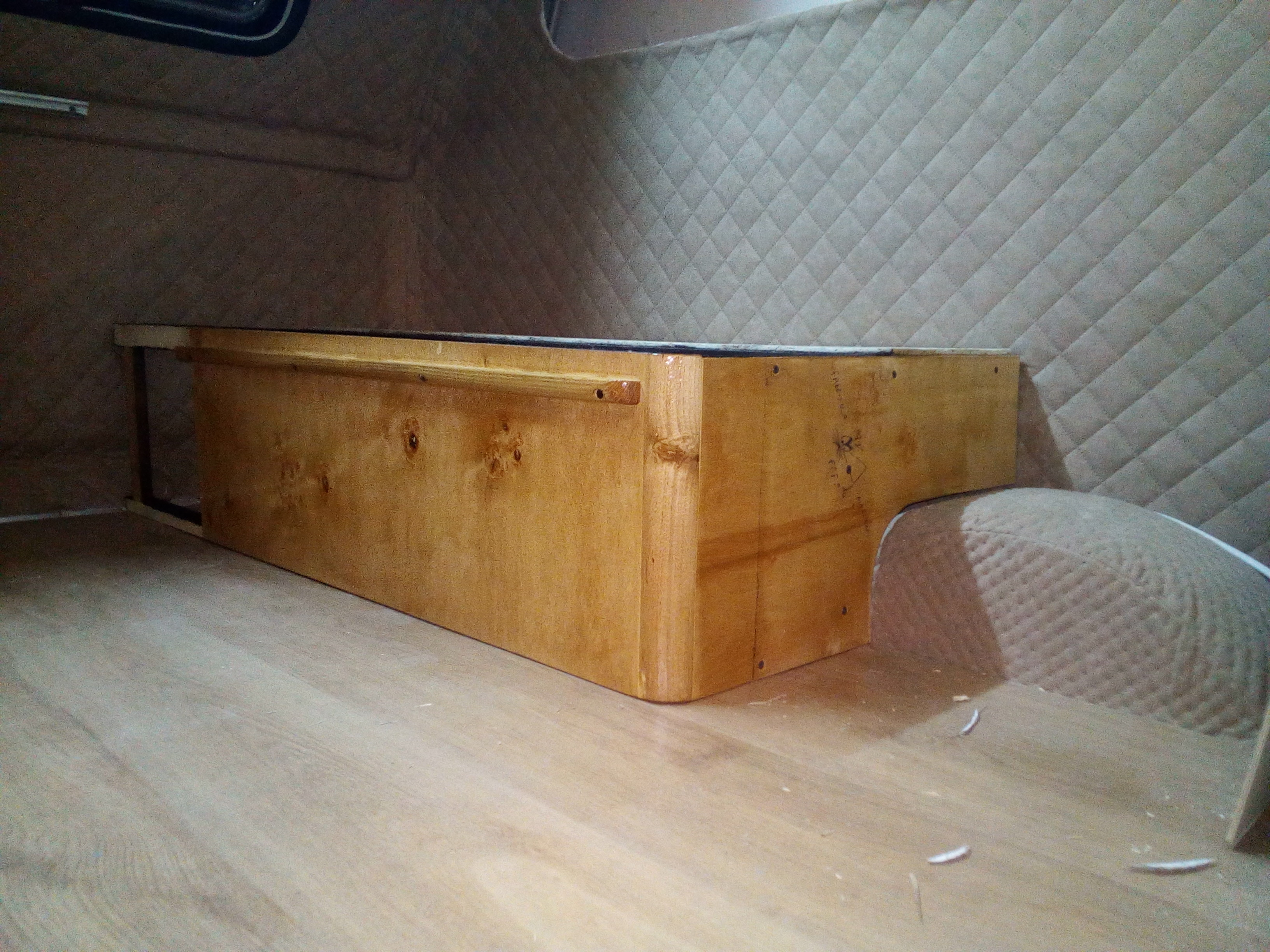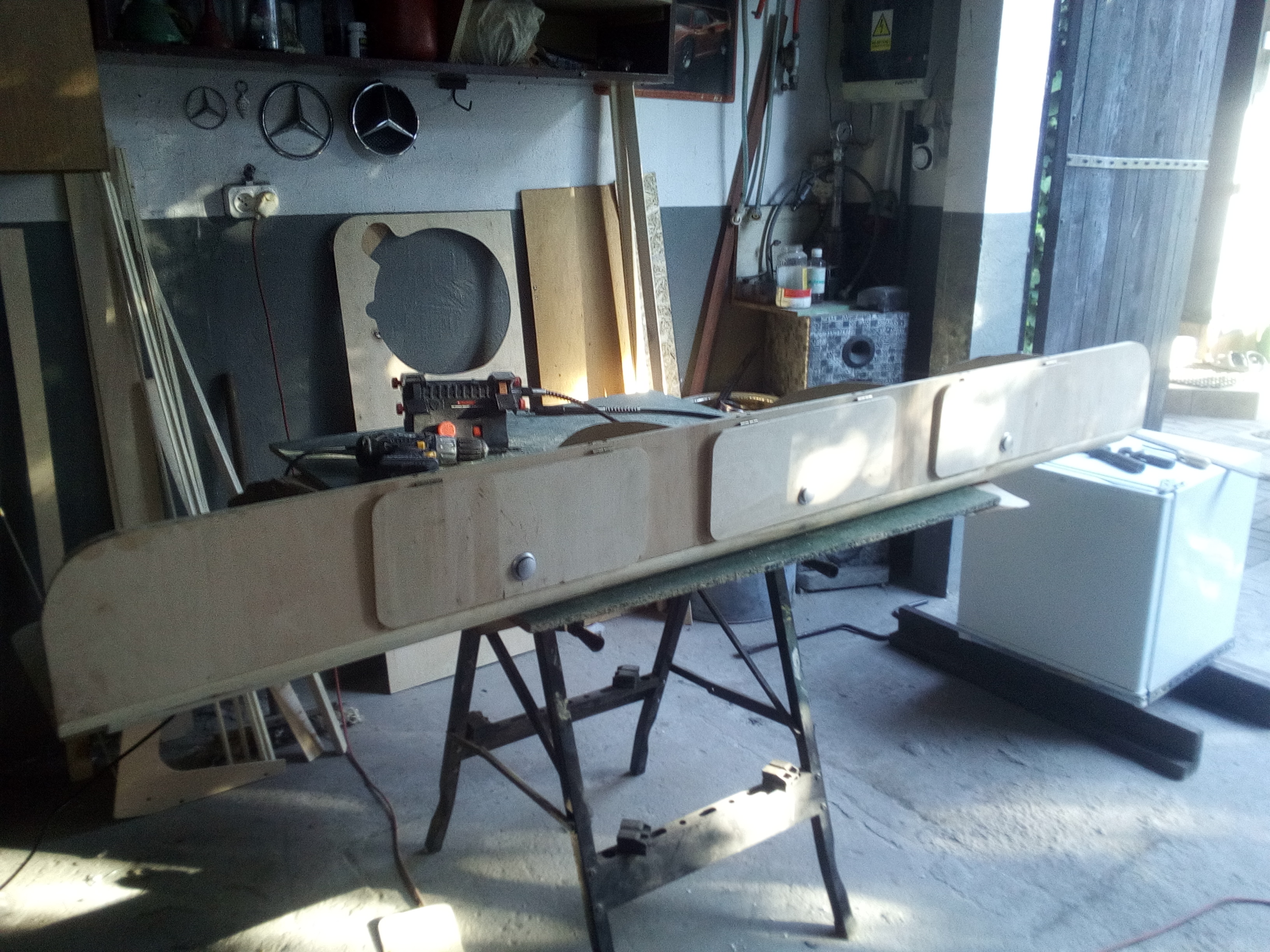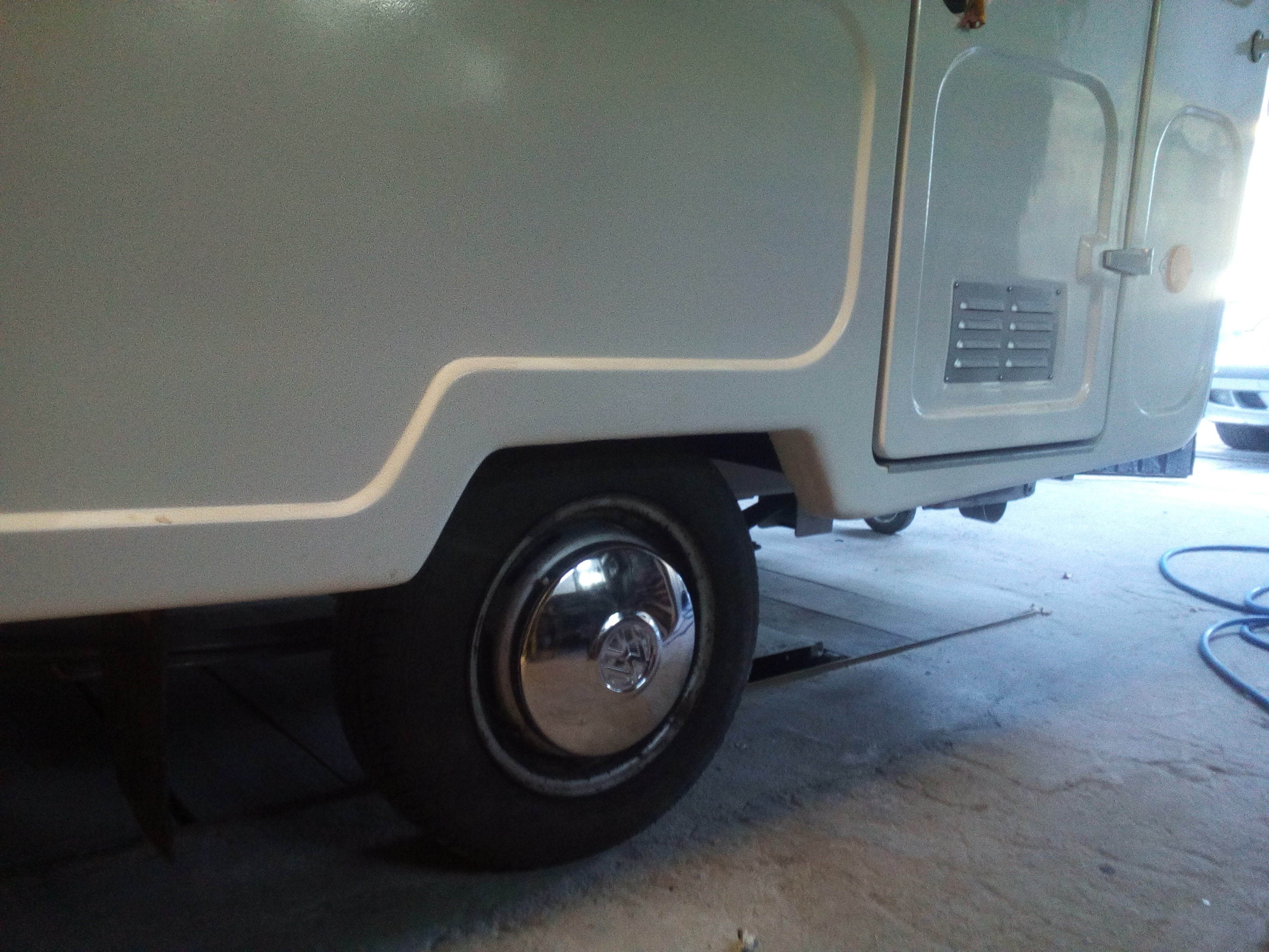 i produkcja szafki nad łóżkowej powoli ruszyła do przodu. Założyłem w końcu jakieś normalne koła (felgi oczywiście do malowania) i zaaplikowałem chrom old school vintage, czy jak kto woli loft kołpaki z garbuska. Wiem mało polskie, ale oś VW w sumie jest...