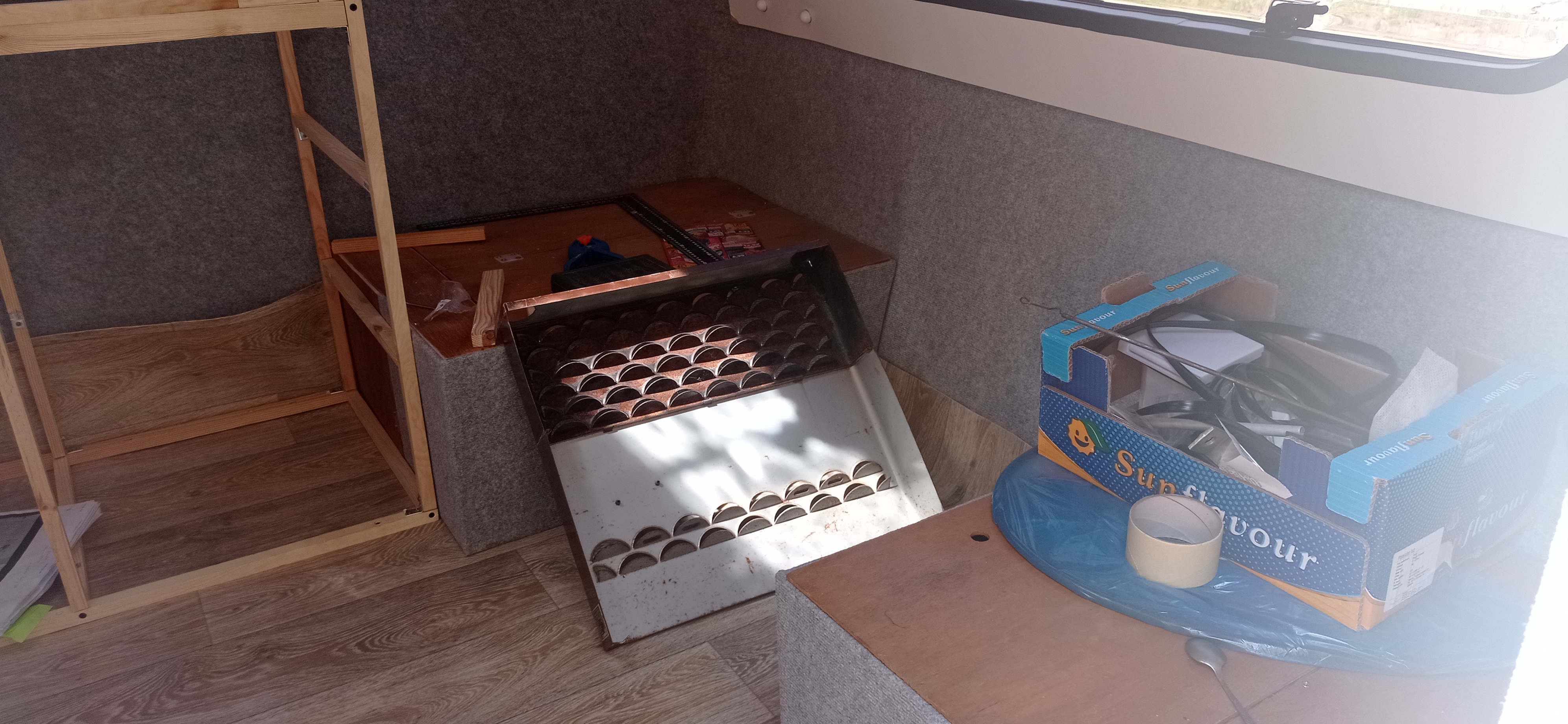 Mebelki są na tym etapie co widać. Zawsze można zmienić plany, ale muszę to uzgodnić z Agnieszką. W sumie to plan jest aby przenośny kibelek koło przyczepy w namiociku postawić.