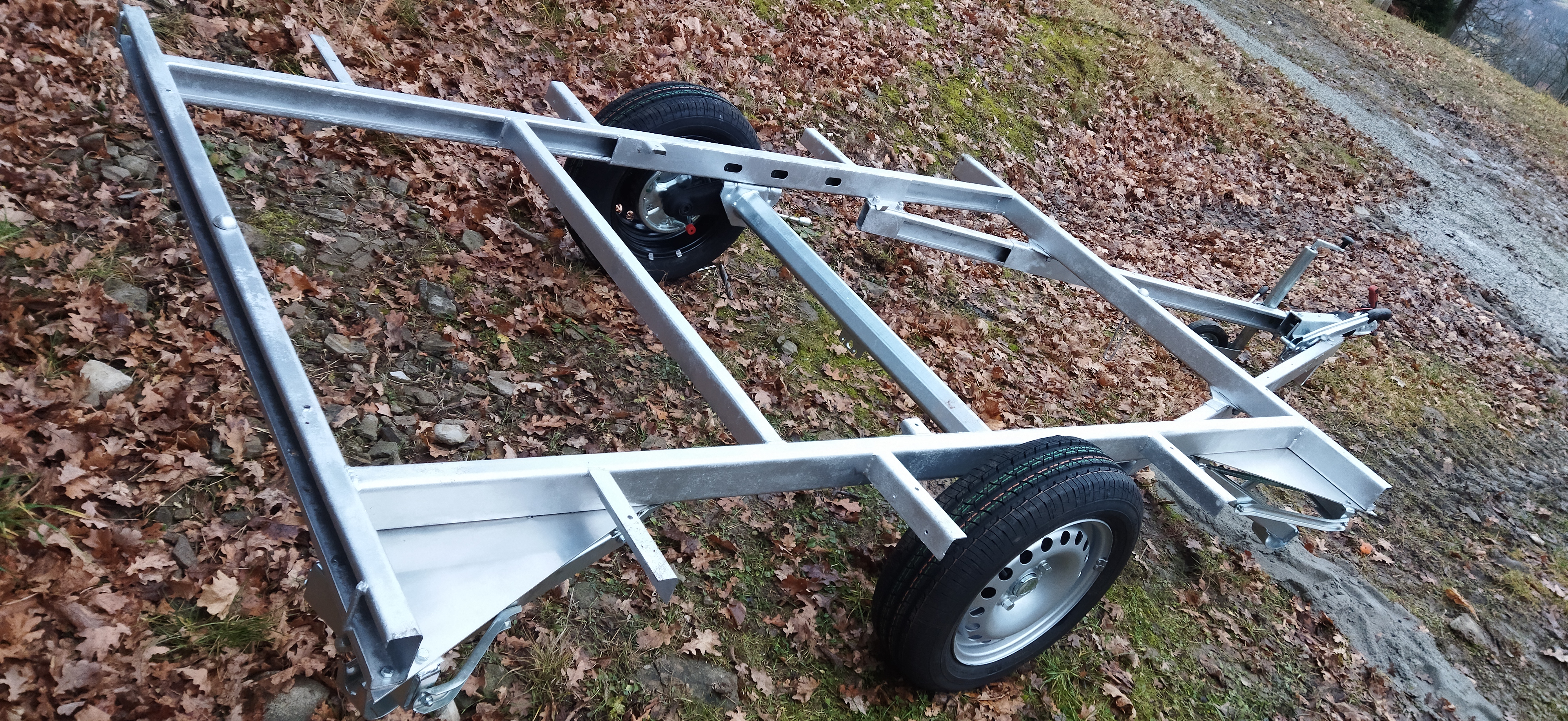 Wjechała nowa oś hamowna Al-KO, nowe felgi 14 cali z VW Caddy, nowe opony wzmacniane "Barum" 175/65 R 14 C.