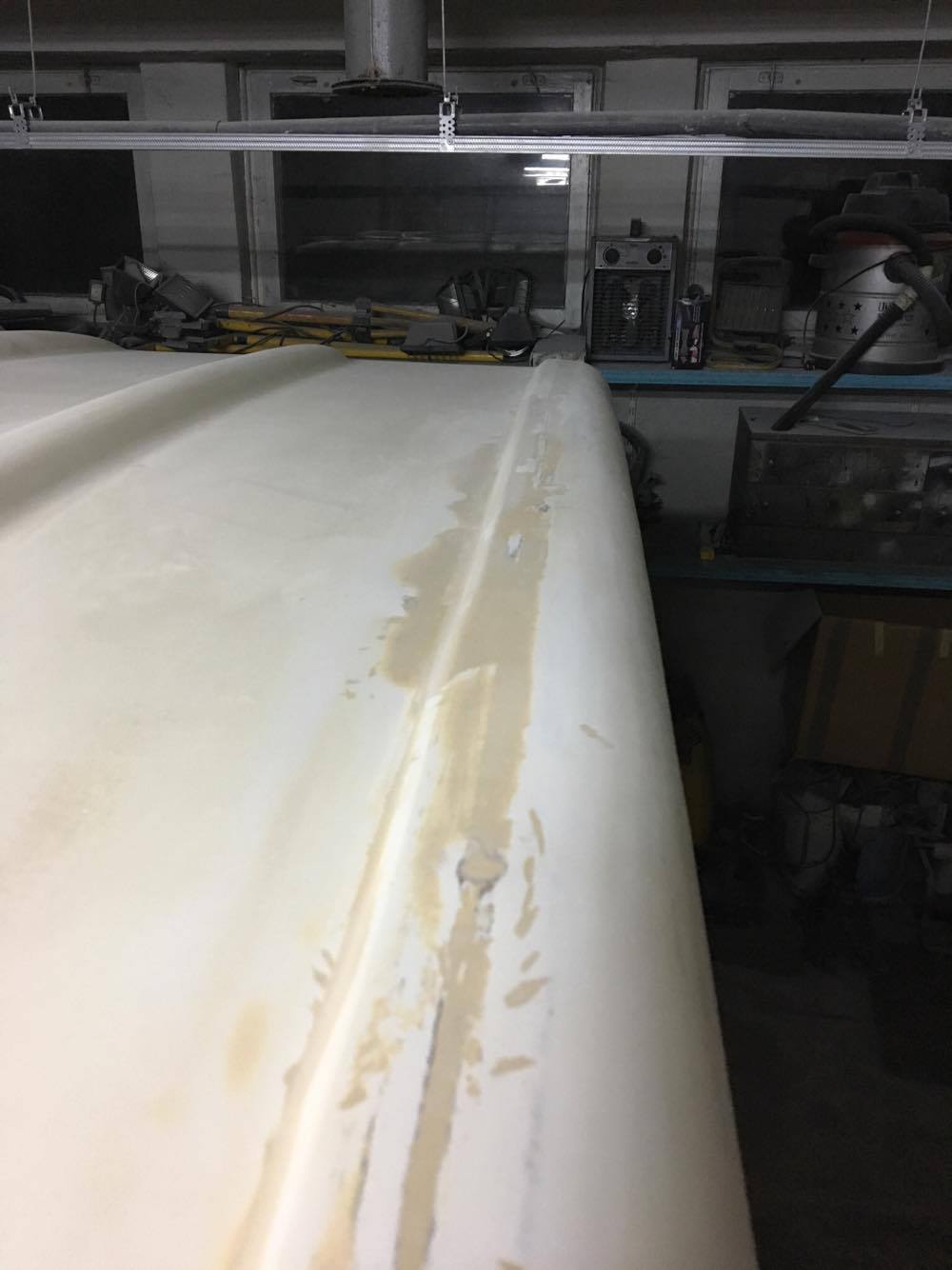 Zaś od zewnątrz są różne szkoły. Jedna mówi żeby szpachlować szpachlą samochodową druga mówi żeby zrobić sobie samemu szpachlę z żywicy z kawałkami włókna (robi się taką mamałygę - tylko żywicy tylko niezbędne minimum bo żywica jest krucha); są szpachle fabryczne z włóknem ale mają zupełnie inną konsystencję niż wyrób własny .