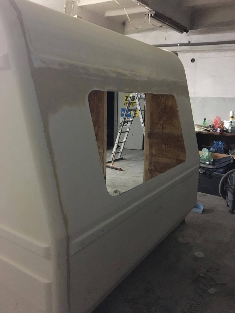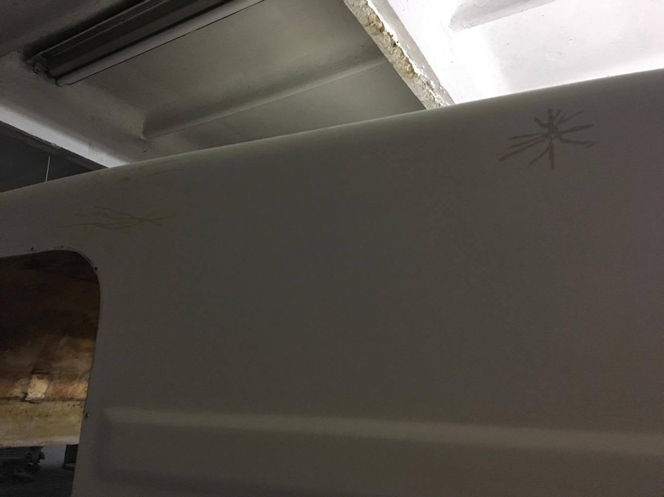 Buda wyszlifowana i zaszpachlowana. Głębsze ubytki załatałem szpachlą z włóknem szklanym a na wykończenie uniwersalna..