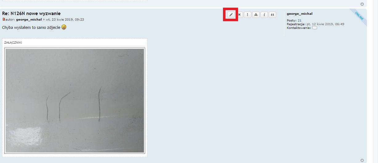 Po napisaniu posta masz 120 minut na jego edycję. Służy do tego przycisk zaznaczony na poniższym screenie.
