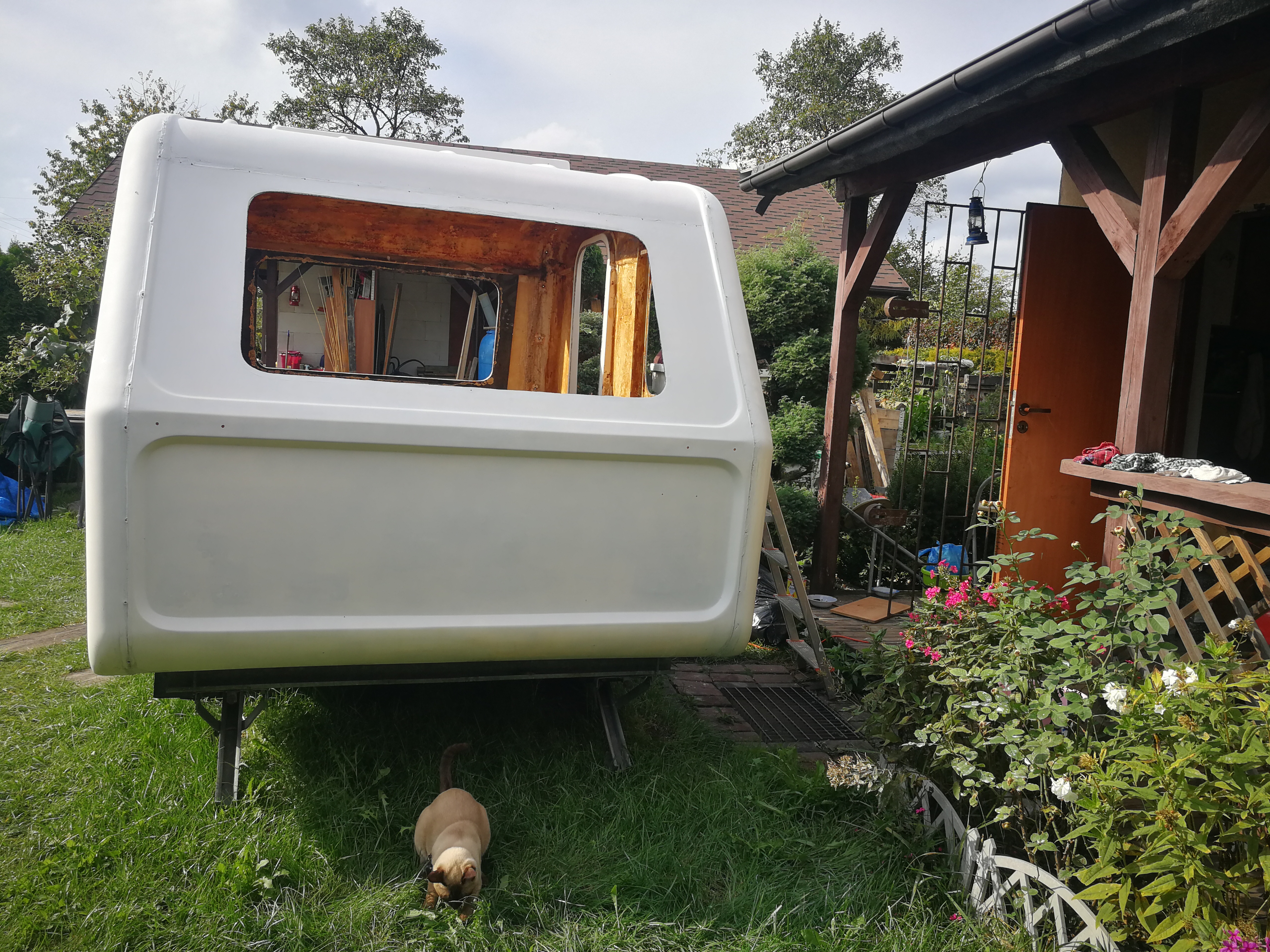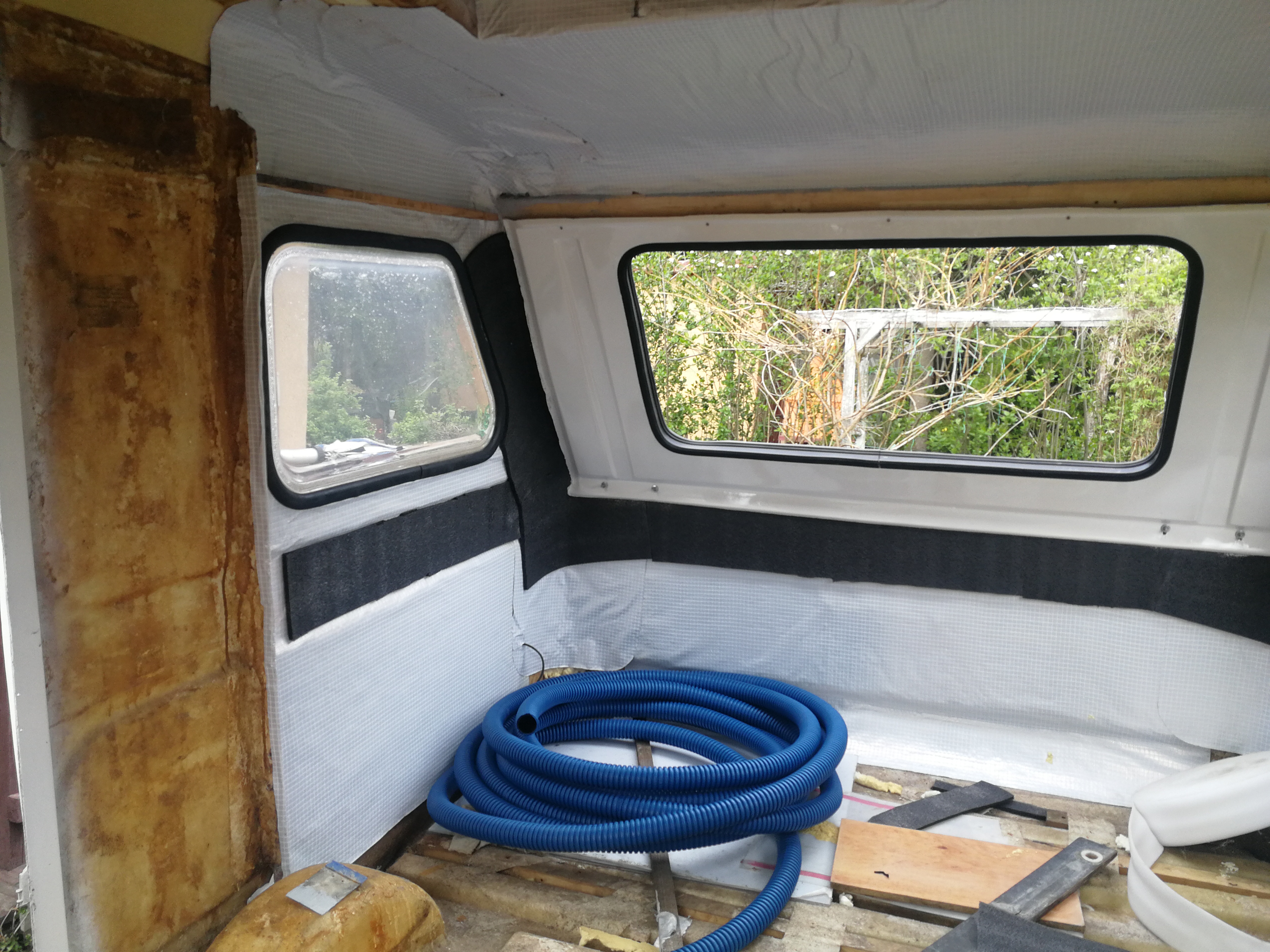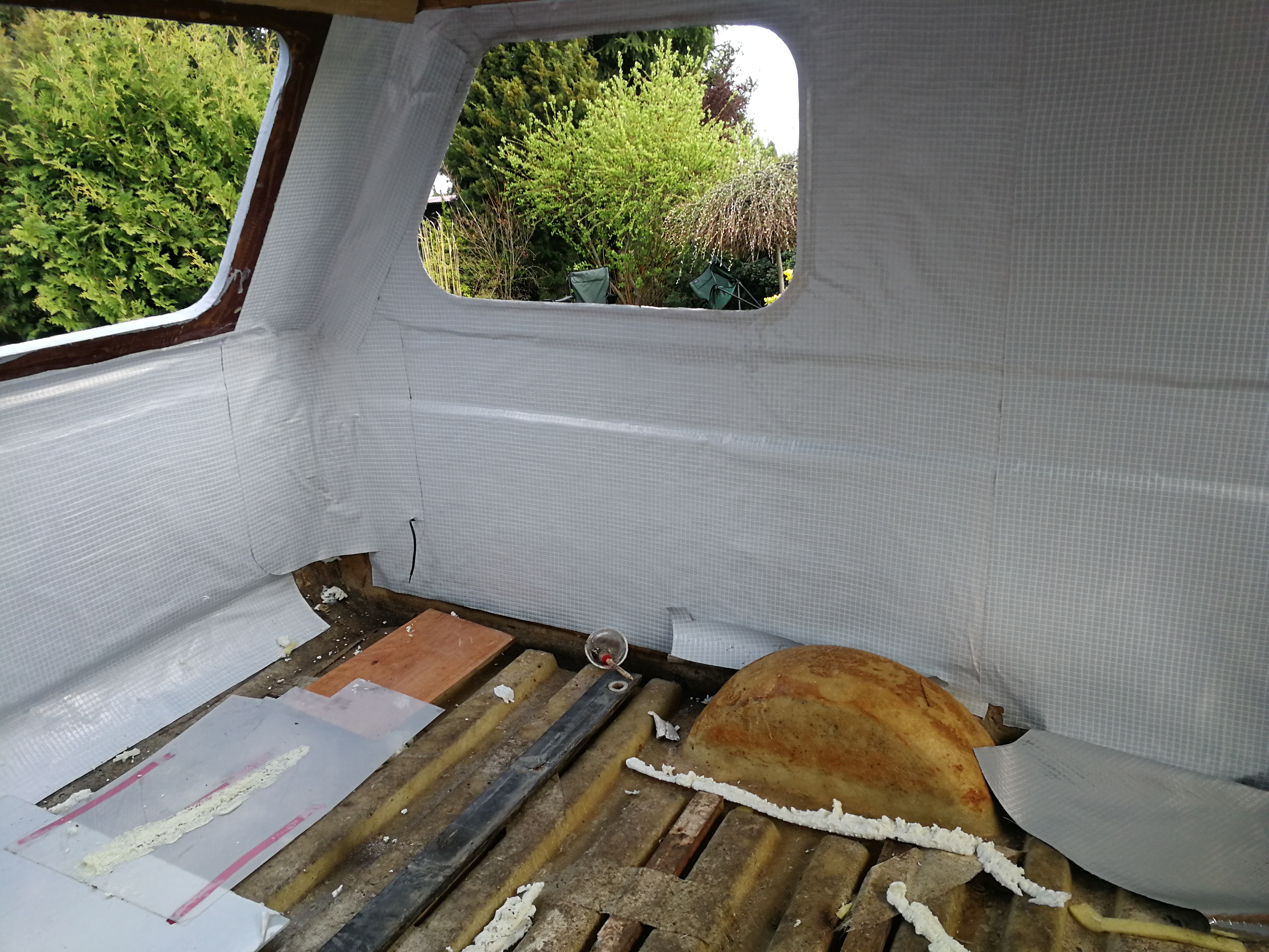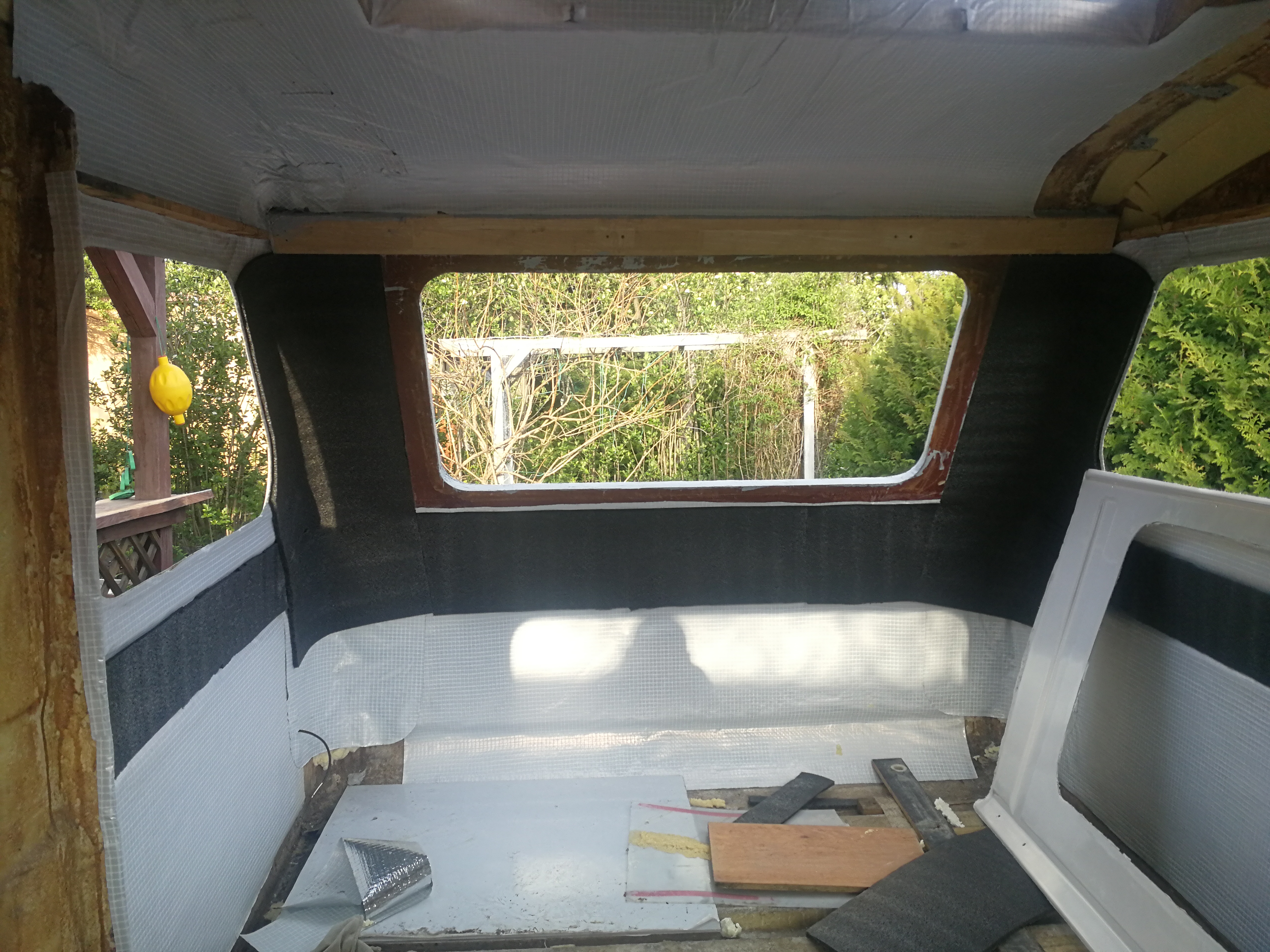 Skorupa już jest pomalowana, środek wyczyszczony, wklejone wzmocnienia i wyklejony w większości folią paroizolacyjną aluminiową.