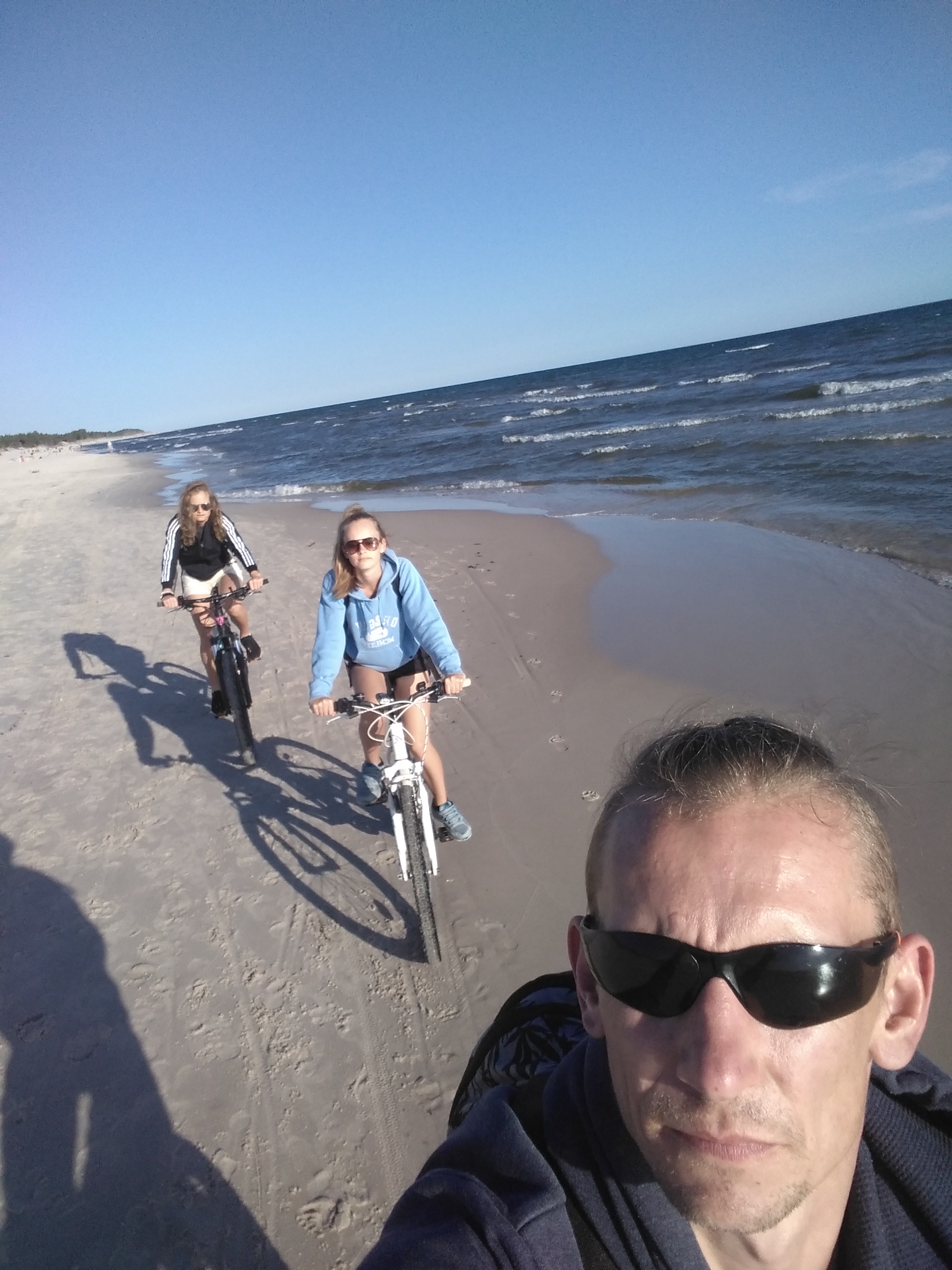 Nie mam niestety weny dziś na opisywanie wojażu z Przyczepem, ponieważ cały dzień serwisowałem nasze rowery (nasze to za dużo powiedziane, konkretnie to w większości mój) po wypadzie z nimi nad nasz małosolny Bałtyk. Niby małosolny ale szkód narobił, zwłaszcza jak zamiast plażą przemieszczałem się łachą obok plaży... Cóż, każdy ma jakiegoś bzika. Generalnie to wykręciliśmy na rowerach niespełna 200 km, z czego ok 80 plażą (lub niektórzy część tego dystansu Bałtykiem) co uważam za swoisty wyczyn, bo o ile ja uwielbiam rower to moje dziewczyny nie przepadają za wycieczkami na dwóch kółkach. Skąd wzięło się tyle km? Campingi obok Stilo nie spełniły naszych oczekiwań (nie będę się rozpisywał dlaczemu) więc pojechaliśmy do Łeby. W Łebie, sensowne (z mojego punktu widzenia) campingi miały pozajmowane wszystkie miejsca a te które miały wolne miejsca obsługiwały tylko przyczepy samowystarczalne (nasza taka nie jest, jeszcze) więc odmawiano nam postoju (co mnie nie irytowało, wręcz odwrotnie - cieszyło mnie to, że ktoś rzetelnie podchodzi do dbania o swój biznes). Była późna godzina, dziewczyny zmęczone podróżą (mimo że mogły mnie 5x wyprzedzić to ciągnęły się za Caddylakiem całą drogę) więc jako że nie mam problemów z komunikacją międzyludzką postanowiłem wykorzystać doświadczenia z wypraw 4x4, więc pojechaliśmy do najbliższej wioski i stukaniem od drzwi do drzwi tambylców chciałem wyżebrać postój na pierwszą noc. Po zawitaniu do pierwszego gospodarza okazało się że nie ma problemu z udostępnieniem kawałka działki, dostępem do prądu i bieżącej wody. Następnego dnia rano okazało się że jeśli chcielibyśmy u niego zostać to dostaniemy prywatną łazienkę (co bardzo ucieszyło dziewczyny) w niezamieszkałej części domu. Oczywiście nie ma nic za free ale cenowo wyglądało porównywalnie z campingami w Łebie ale istotnym faktem było to że w promieniu 50 m nie było ludzia żadnego. Tak że stąd wziął się wyżej wspomniany dystans przejechany rowerami a także stąd, że nie bardzo chcieliśmy być w towarzystwie innych ludziów na plaży więc pedałowaliśmy sobie dopóty dopóki co najmniej w zasięgu 100 metrów nie będzie innych plażowiczów - co akurat na zachód od główek portu nie jest wyczynem, mimo że to szlak na wydmy...