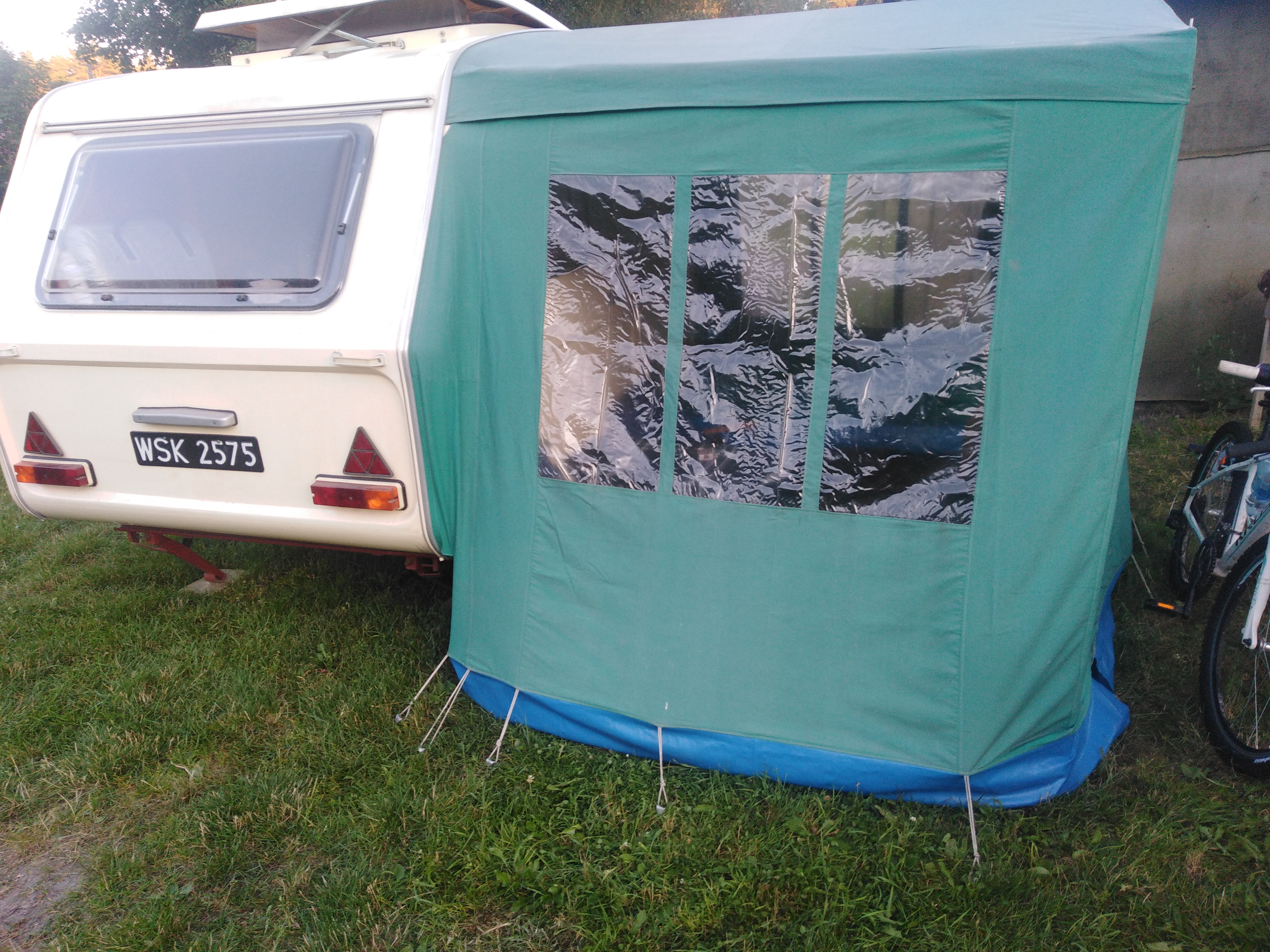 Dzisiejszy wpis w pamiętniku mocno ograniczony, bo rozpisałem się w innych tematach a muszę się jeszcze spakować bo jutro wyjazd, jak ktoś to zdjęcia pokażą zakres prac, generalnie to sprzątanie przez dziewczyny, ja pomierzyłem instalację elektryczną, jest stara ale bezpieczna. Ogólnie z Przyczepa na dzień dzisiejszy jestem dumny dla mnie wart zapłaconych 3k, zwłaszcza przez wzgląd na paragon który w nim znalazłem. Miałem okazję z grubsza przymierzyć przedsionek, jest kompletny, likszpara nie pogięta, liklina cała więc jest wypas. Brakuje tylko kilku oczek na bocznych ściankach, ale mam stado KO które używam do montażu lazy Jack'a - czyli takich sznurków które trzymają lazy bag czyli pokrowiec w który chowa się grot czyli żagiel główny.