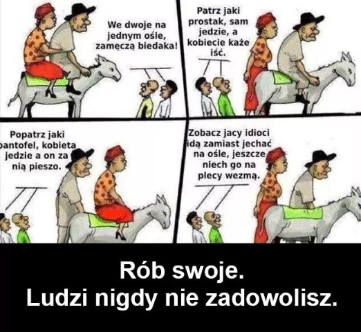 Wyprzedzając możliwe nieprzychylne komentarze, stawiające tezę, że zapewne jestem handlowcem i zacznę szanownym Koleżankom i Kolegom coś wciskać, uprzejmie informuję iż handlowcem żadnym nie jestem i niczego nie sprzedaję, jestem szkutnikiem a to o czym piszę jest fundamentalną kwestią mojego zawodu. Nie mam problemów z dzieleniem się wiedzą, nie usłyszy nikt ode mnie że coś jest tajemnicą. Sposób mojej wypowiedzi nie wszystkim zapewne się podoba, ale cóż poradzić, jak pokazuje poniższy obrazek wszystkim nie dogodzisz.