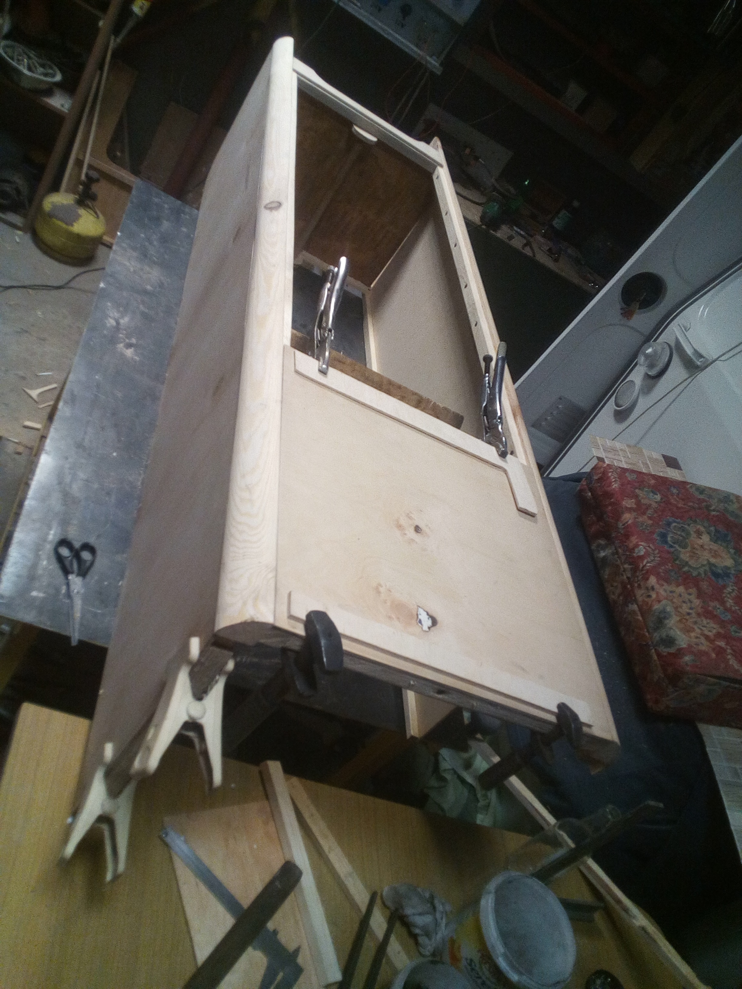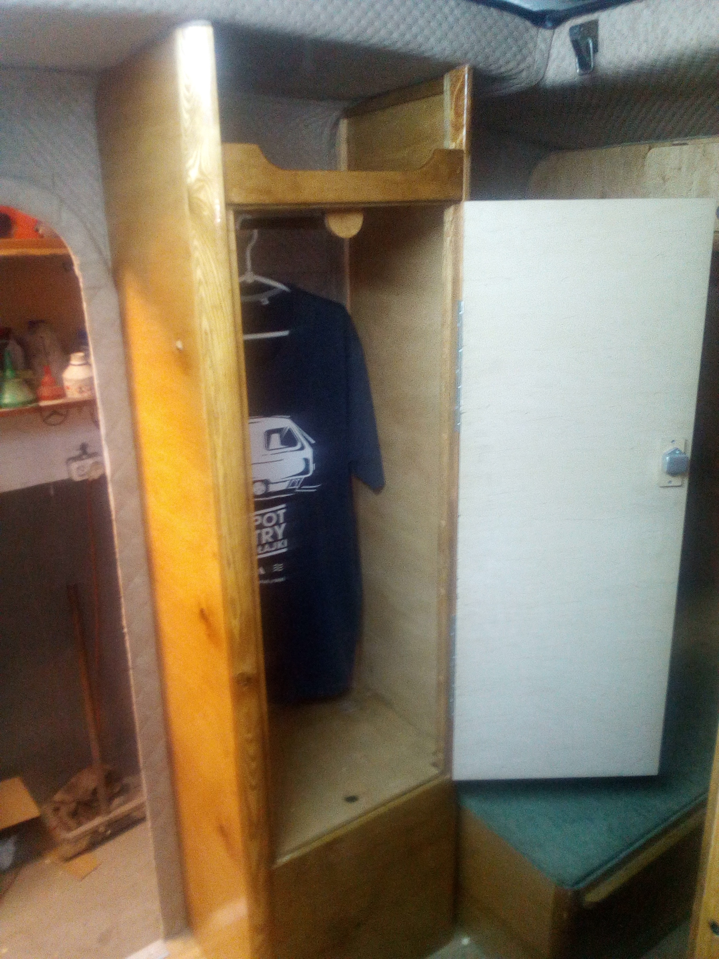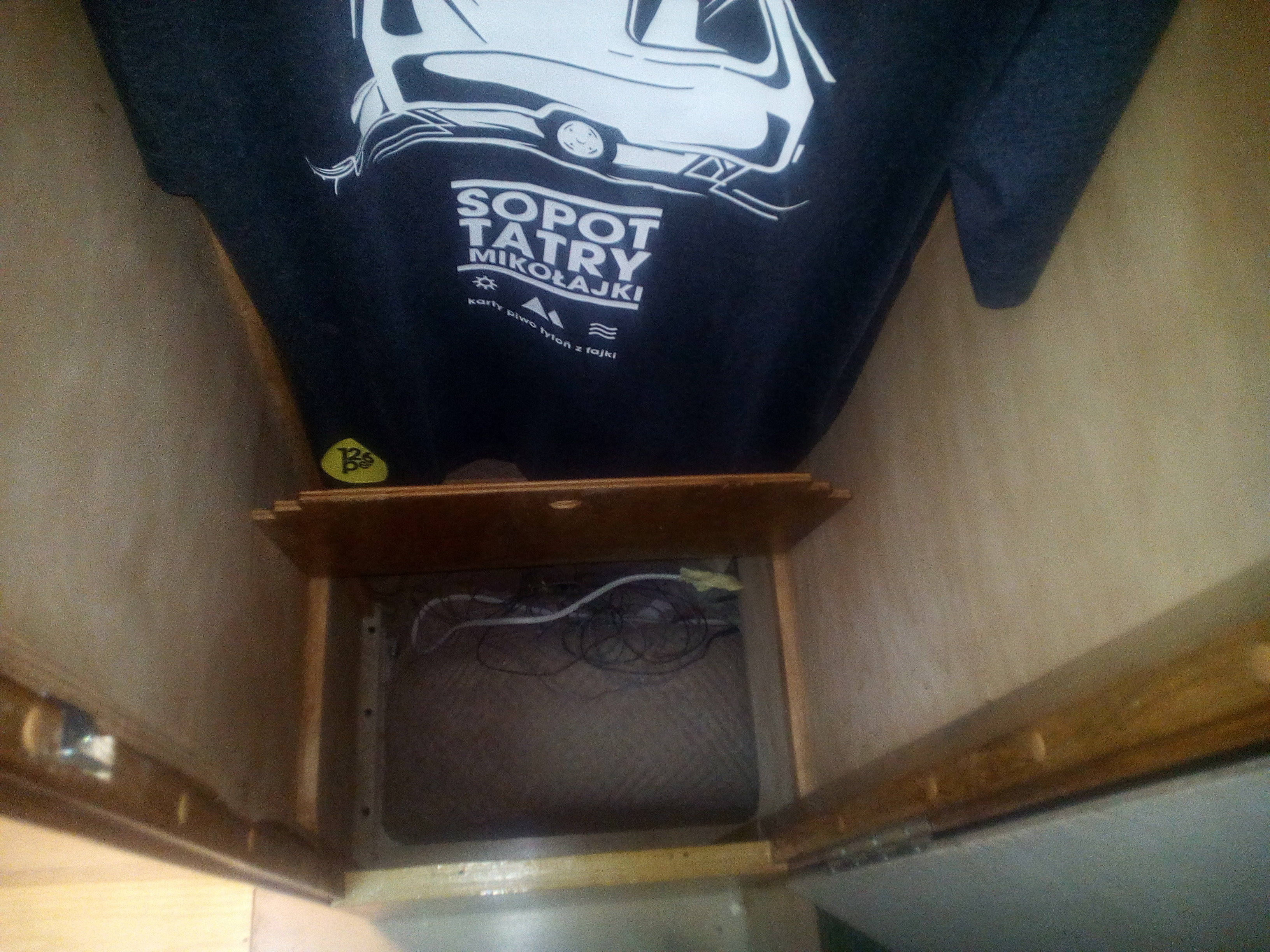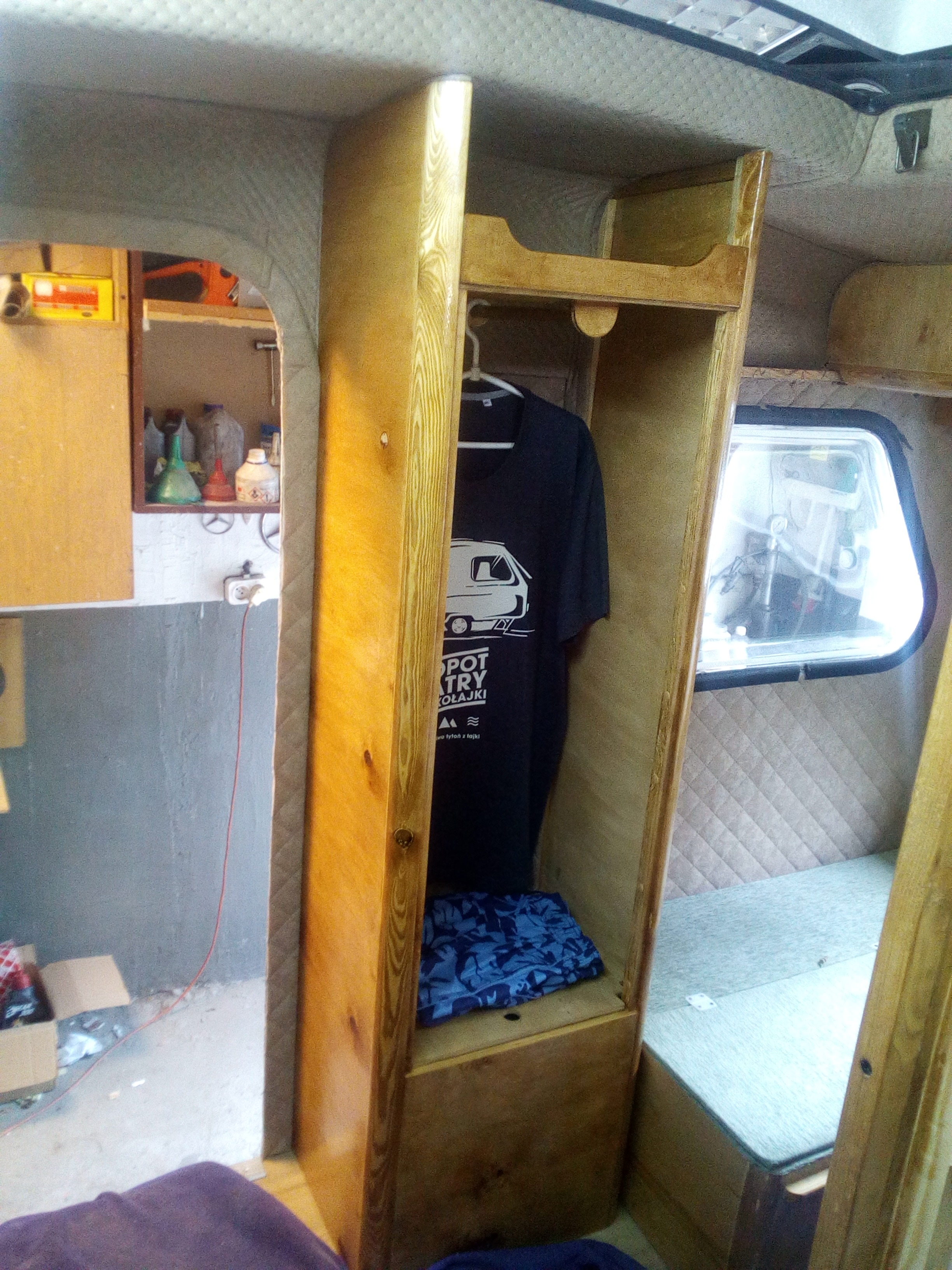 Szafę wstawiłem, przykręciłem jak widać jest trochę węższa na równi z otwieranym dachem, a wszystko po to żeby było trochę więcej miejsca