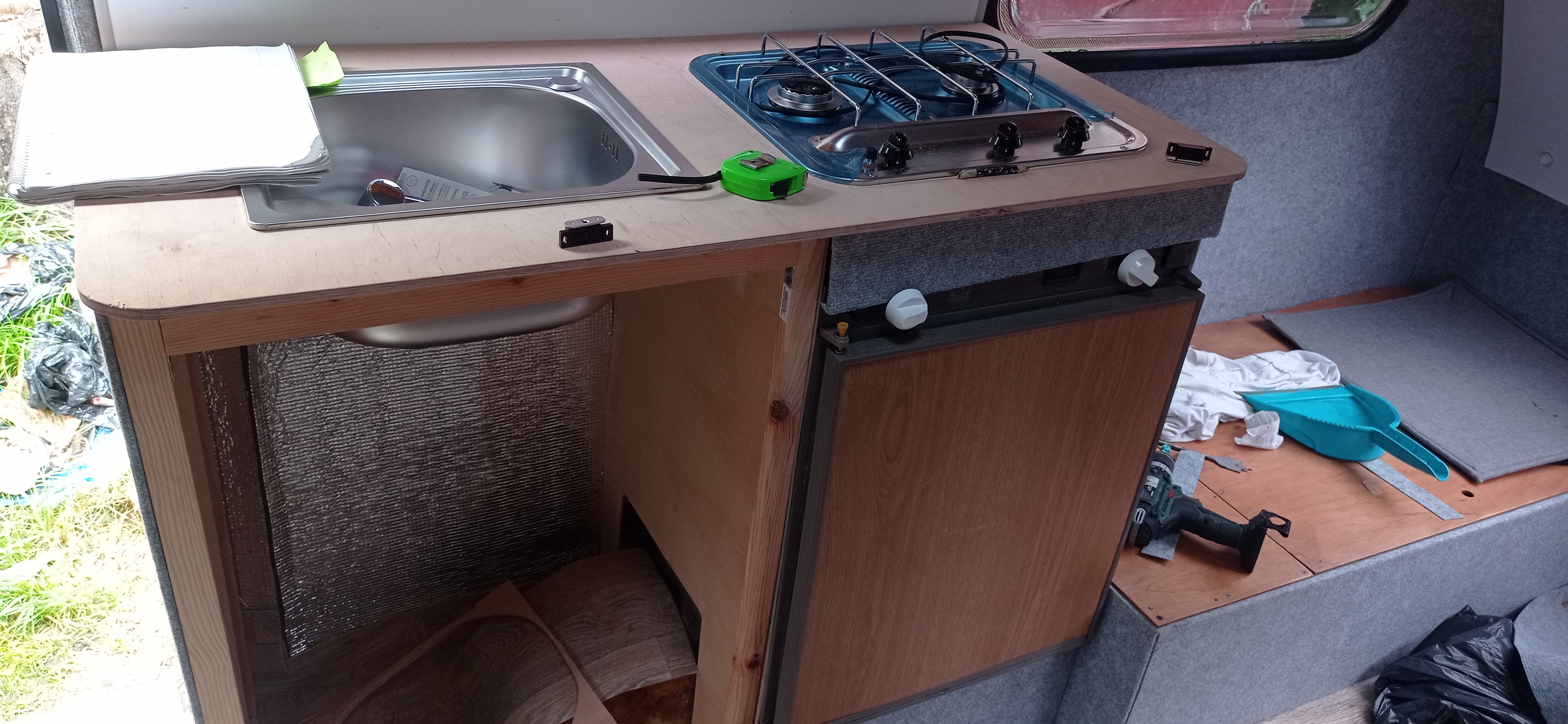 Lodówkę ogarnąłem. Kuchnia złożona. Do pomalowania blat i można złożyć na stałe. Meble poskładałem najlepiej jak umiałem przy zastosowaniu dostępnych mi narzędzi. Budżet na chwilę obecną nadwyręża domowy budżet kosztem innych przyjemności. Ale priorytet to skończyć wieloryba. Stan prac na dzień dzisiejszy...
