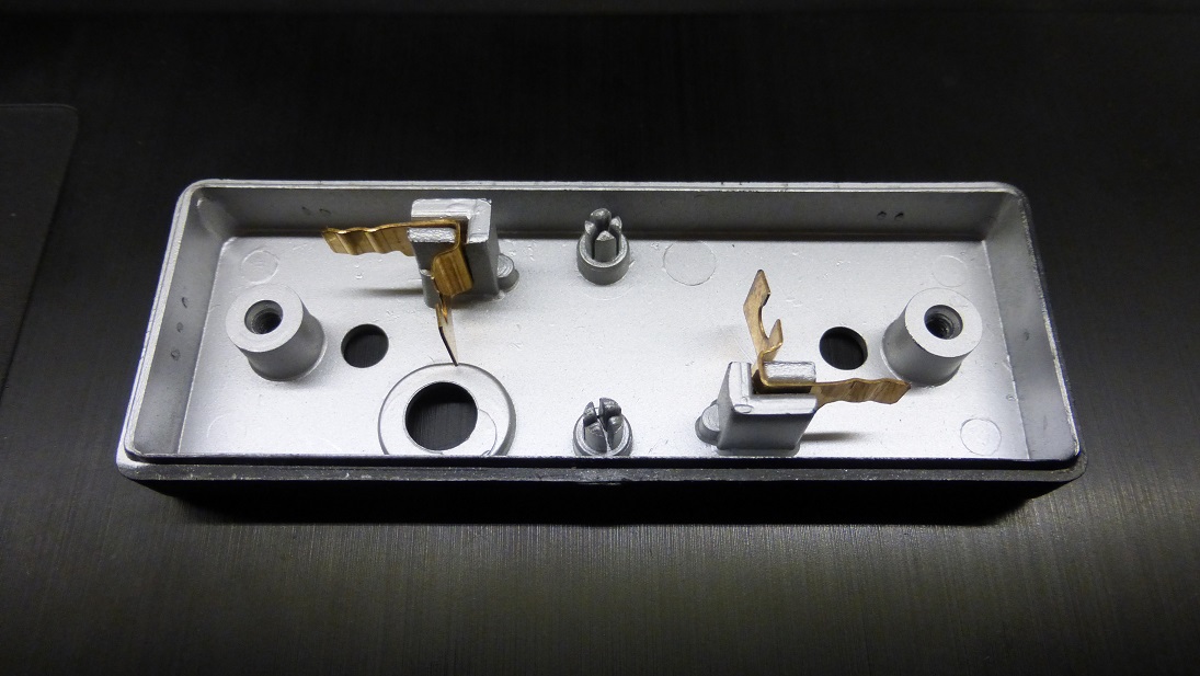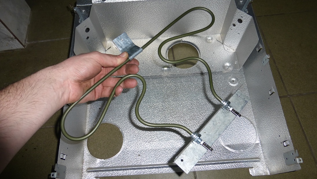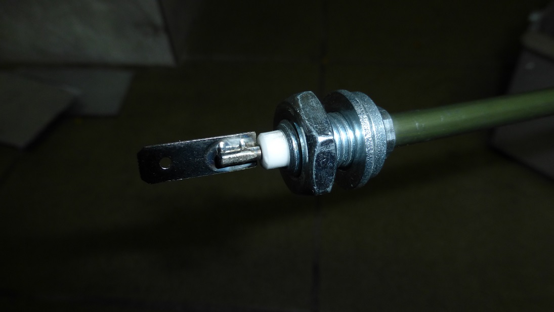 Grzałka ma końcówki na wsuwki i gwinty które montuje się o otwory i skręca nakrętką. Wygiąłem ją odpowiednio żeby pasowała do obudowy i dorobiłem element mocujący.