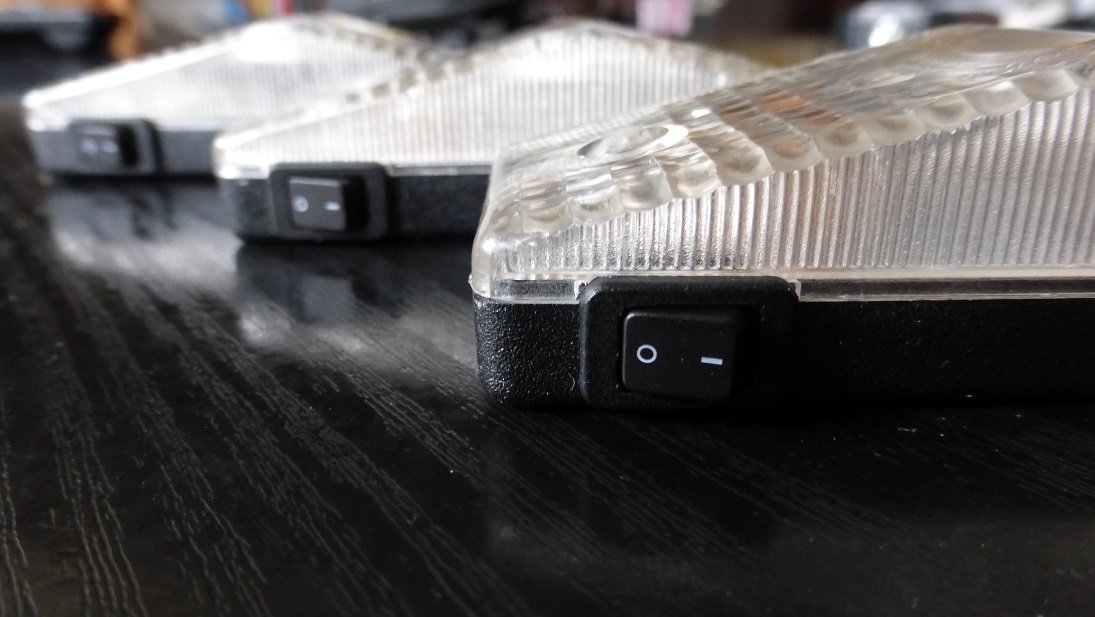 One są do oświetlenia środka, ale ten włącznik wydaje się bardzo mały i może być niewygodny w użyciu. Na zewnątrz kupiłem zwykłą lampę cofania za osiem złotych, jakoś nie mogę się zmusić do wydania tylu pieniędzy za kawałek plastkiu(mówię o dedykowanych lampach do przedsionka)