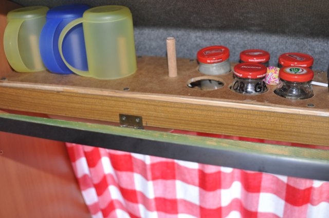 Dokładnie tak jak napisał Maxim08. Słoiczki i kubki stoją nad przednią lampą oświetlającą kuchnię.