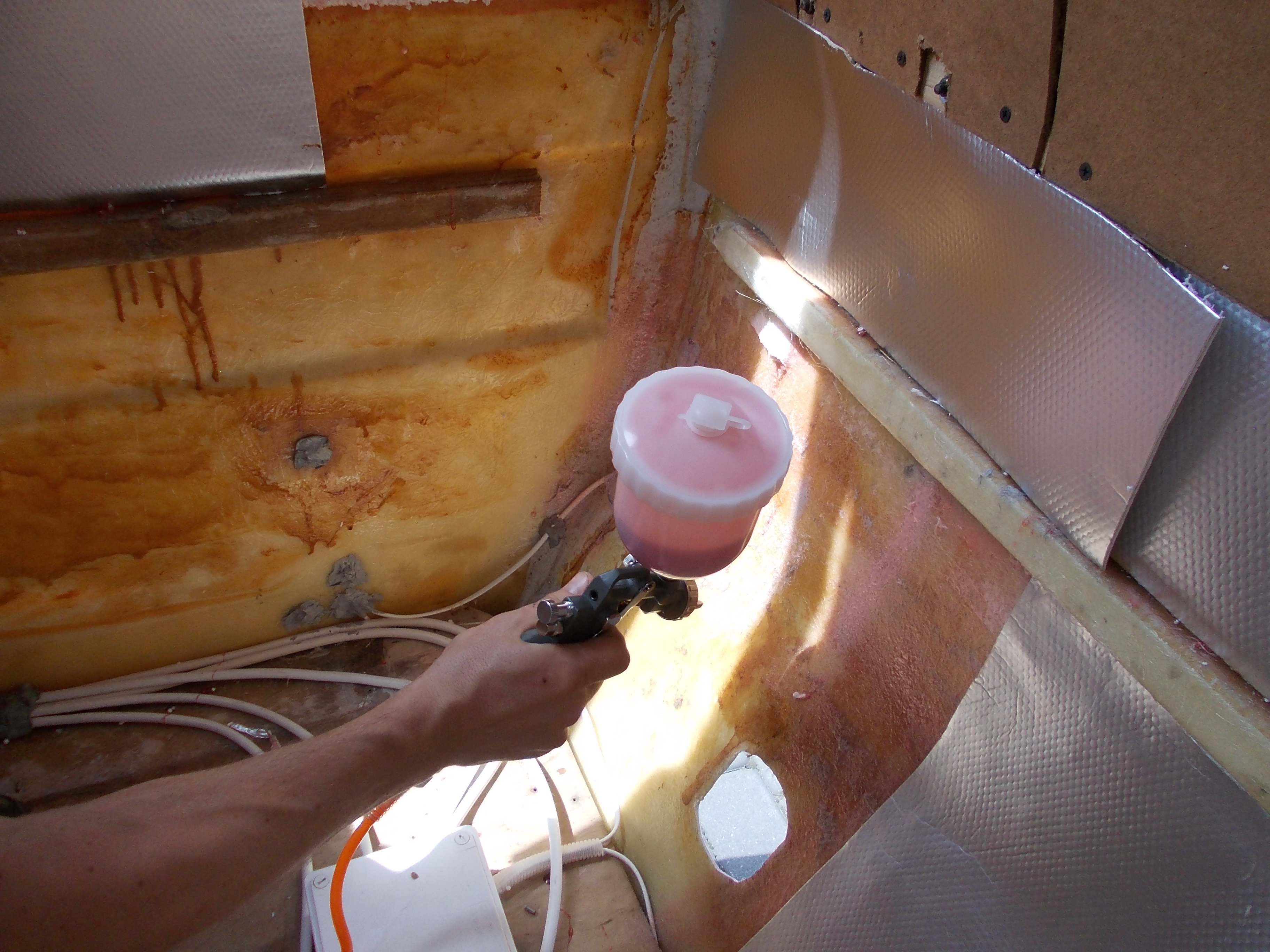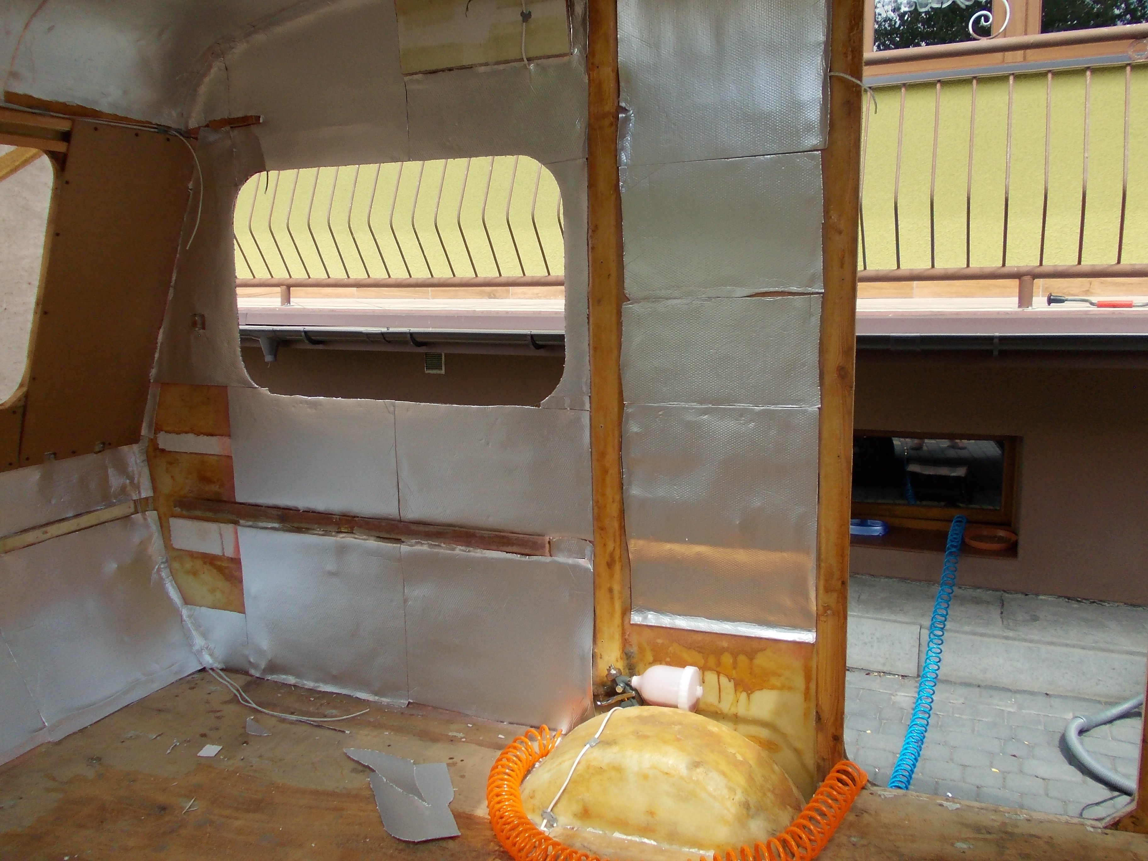 Enka ocieplona i oklejona remontówką w jeden dzień. Na początku klej nanosiłem pędzlem ale przy suficie to była jakaś masakra, klej kapał na rękę,podłogę ,ogólnie jeden wielki syf. Po wyklejeniu dachu dałem sobie spokój i zacząłem nanosić pistoletem.No ludzie po prostu bajka! Żadnego chlapania klejem,czysta i przyjemna robota. Teraz prace posuwały się 3 razy szybciej i dokładniej niż pędzlem.Pistolet nanosi klej dokładnie jakby barankiem a i kleju idzie dużo mniej ; czyściłem go tylko raz co trwało kilka minut.Przy pędzlu to uklejony byłem a zanim skończyłem kawałek smarować to już na początku był prawie suchy- -porażka.To moje spostrzeżenia gdyby ktoś jednak miał dylemat czym nanosić klej. Odnośnie materiałów to dokładnie czytałem wątki ile czego potrzeba.Ekranu poszło 3 rolki i trochę,bonatapu miałem zużyć 12-13 litrów ,kupiłem 15 a poszło 7 litrów na wszystko.Remontówki miało zostać trochę a nadwyżki mam około 8m2.Nie wiem jak koledzy obliczali swoje zużycia ale różnice są spore.