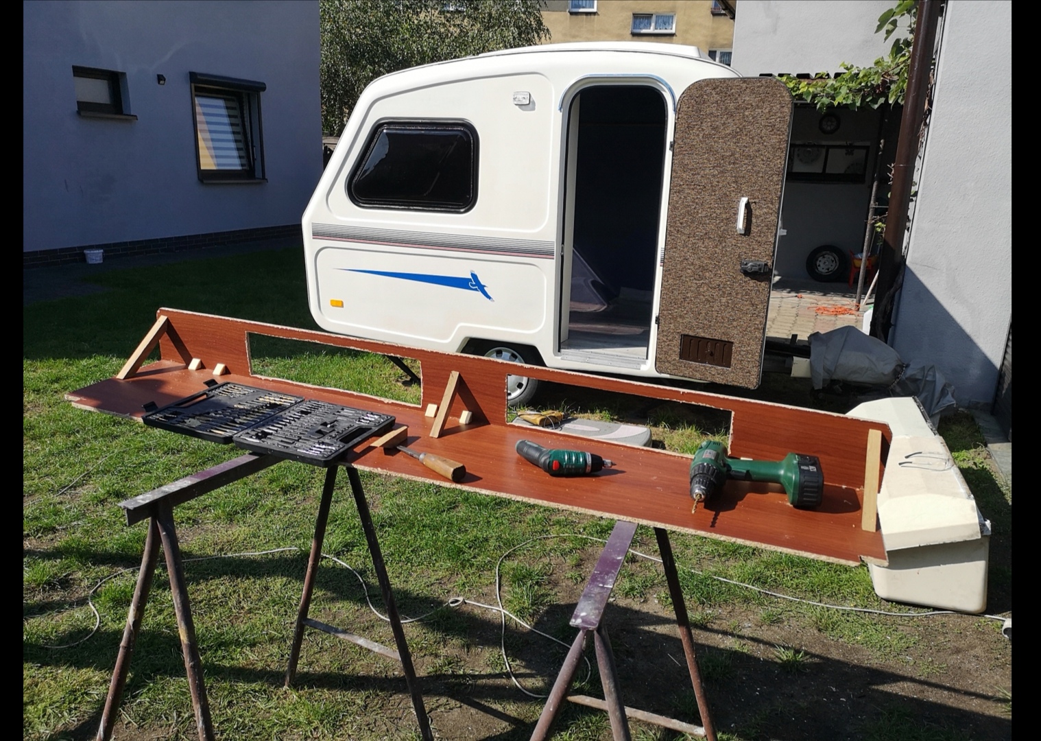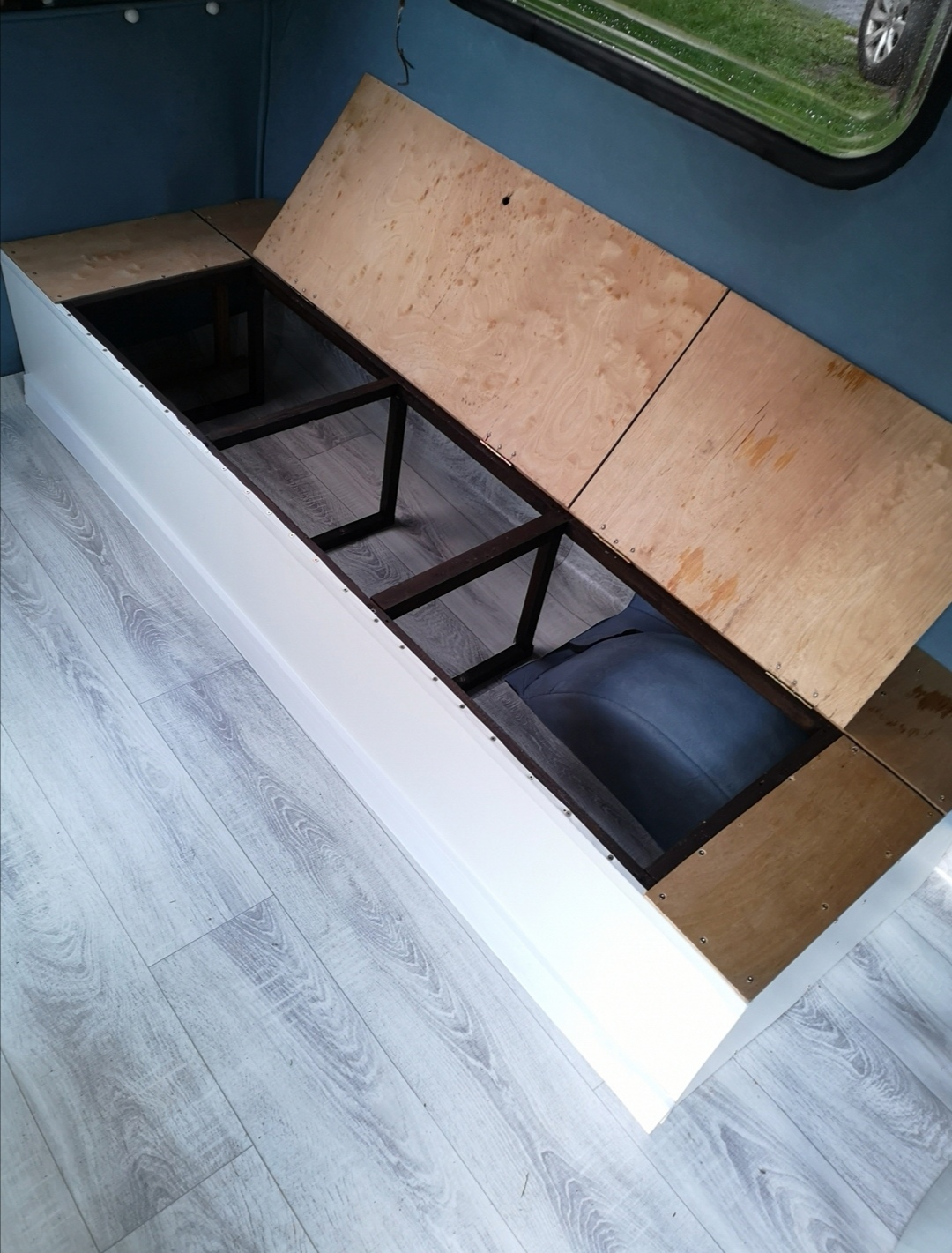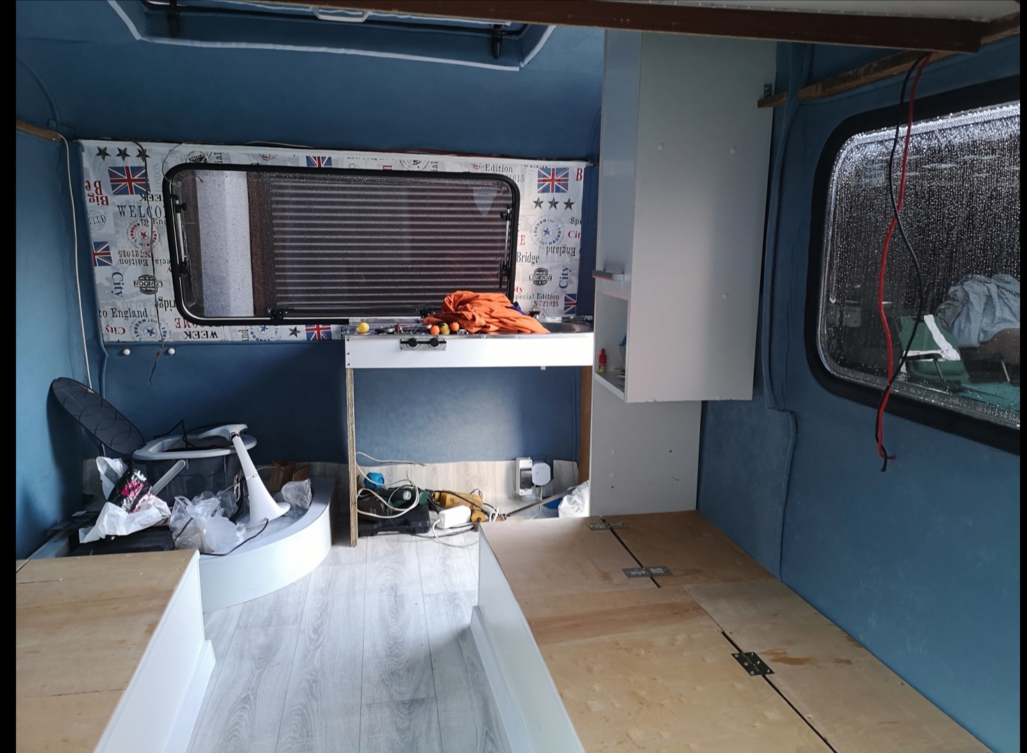 Zrobiłem półkę nad tylnym oknem (30cm głębokości), dwie kanapy, instalację 230v, na drzwiach kosz i materiałowe schowki. Powierzchnia Łóżka po rozłożeniu ma wymiary 185 x 165cm. Muszę jeszcze sklejkę z kanap obszyć szarą wykładziną i zabieram się za łazienkę i kuchenkę. W sumie pozytywnie mnie zaskoczyła ilość wolnego miejsca pod łazienkę - zobaczymy jak to wyjdzie. No i już zacząłem przerabiać podnośniki dachu powinno być wyżej o około 5cm. Kilka foto aktualnego stanu.