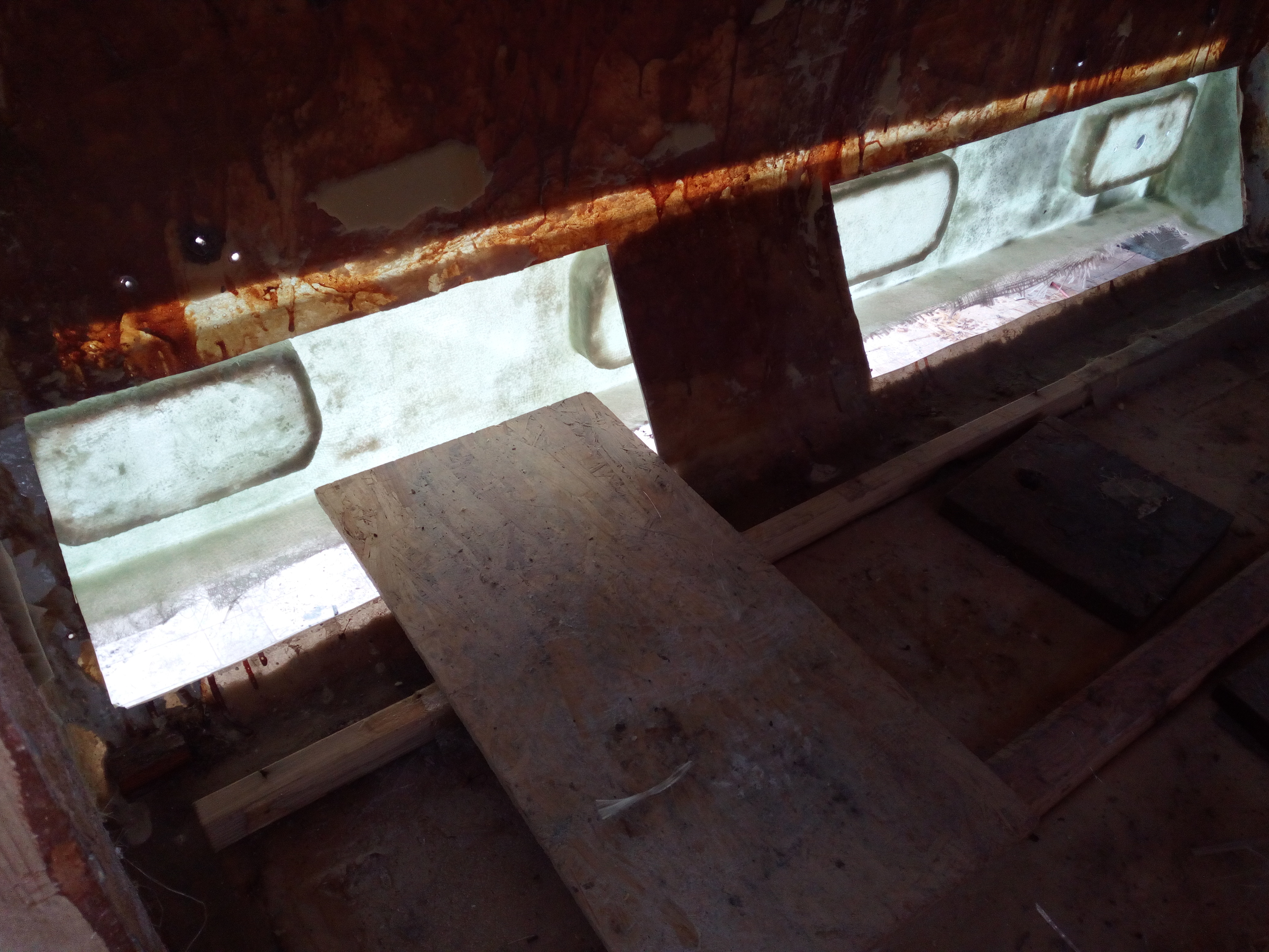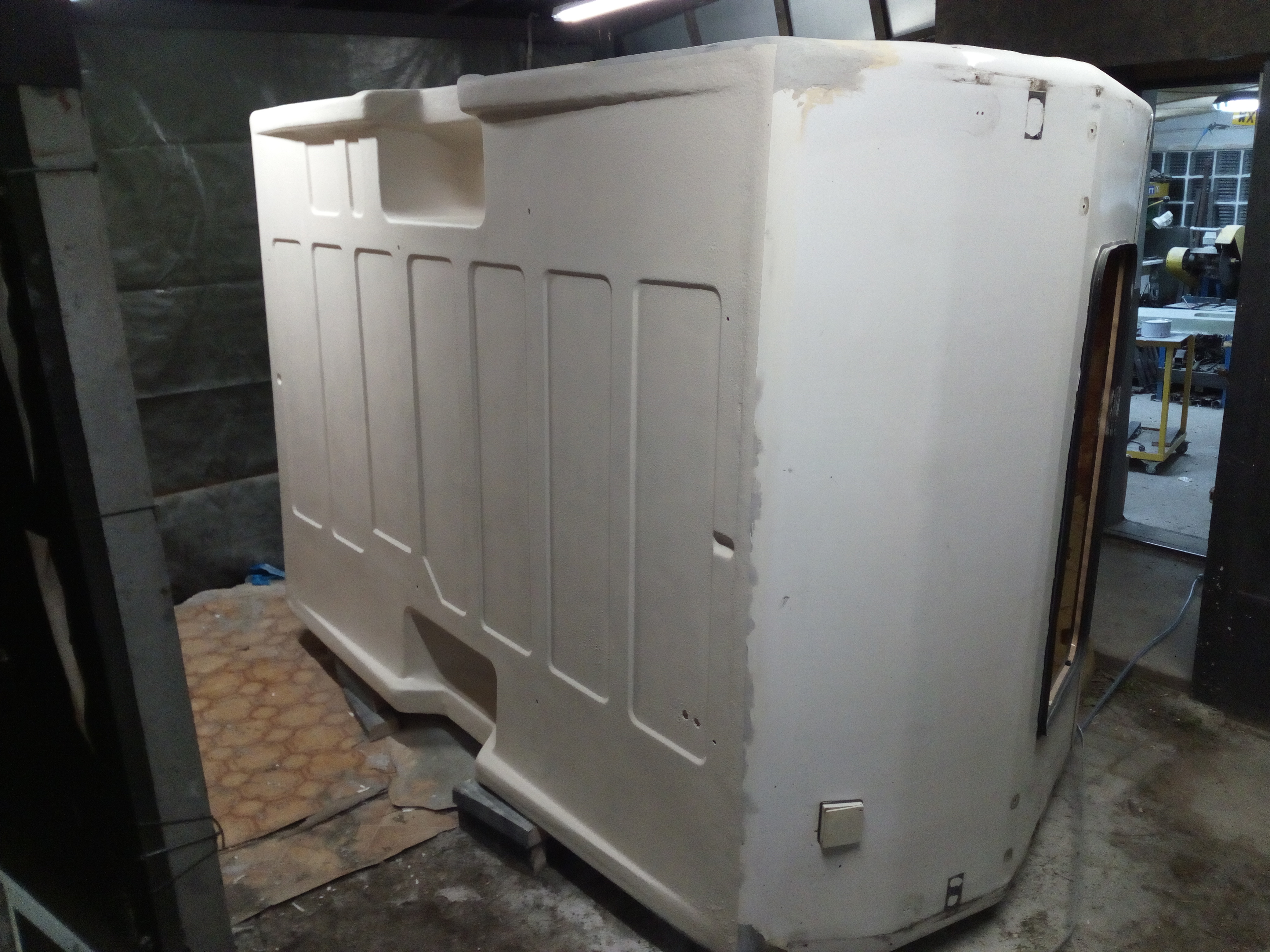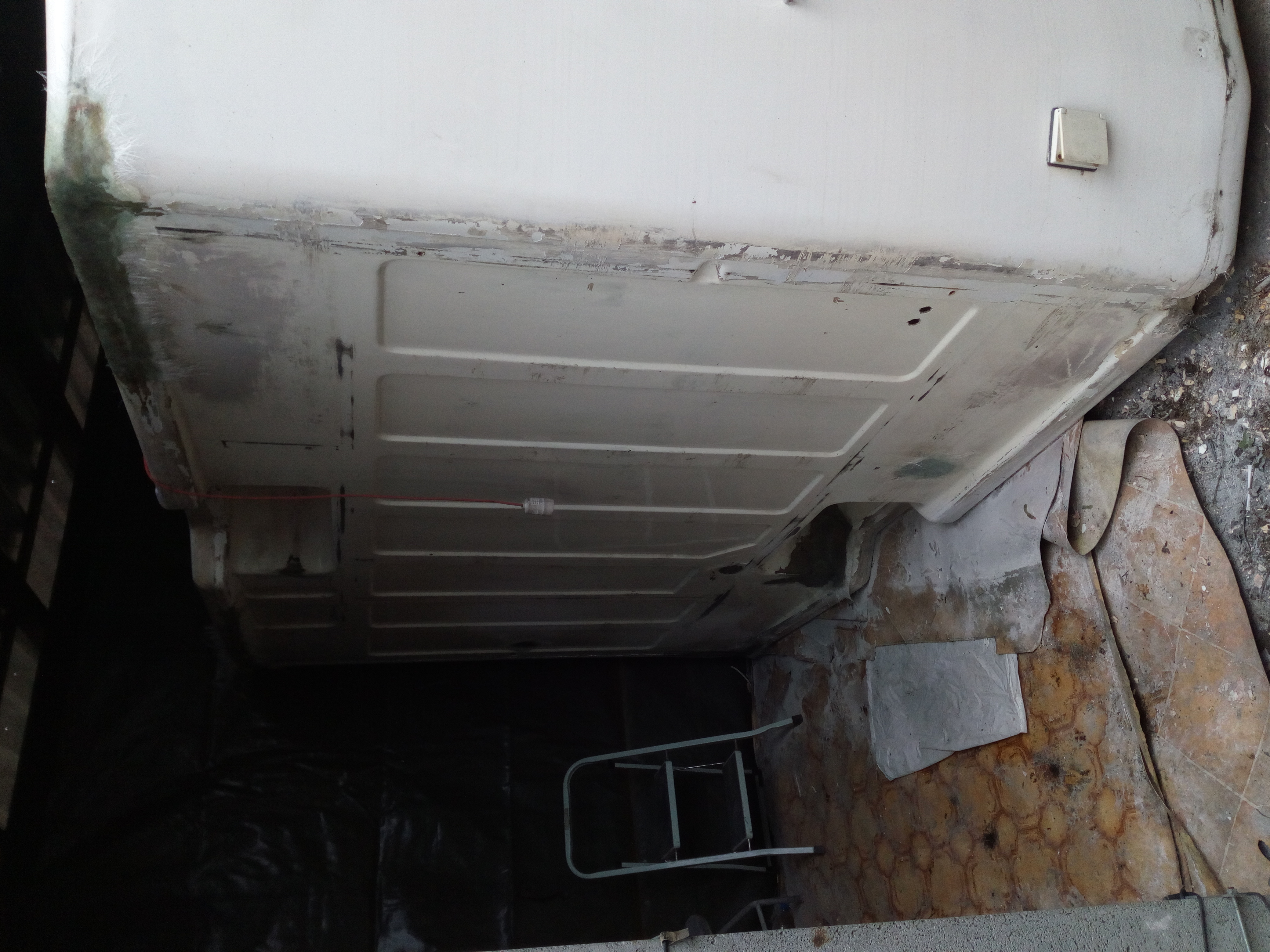 Panowie, co do tyłu to co mam powiedzieć??? Ja to dopiero mam obawy, że popęka, że będzie pękał, że całą budę zepsuję i jeszcze - jakby nie patrząc - płacąc za to pieniędzmi i czasem... Ale jadę dalej z tematem; powstał model-wzór i w głowie i w postaci modelu. Tak więc patrzymy wszyscy i zobaczymy co z tego będzie. Dziękuję za słowa otuchy jak i wszelkie uwagi przeciw; co więcej powiedzieć, albo będzie 1 albo 0.... Trochę się ociepliło no to buda na bok i jazda - myte podwozie. Ku zdziwieniu w bardzo dobrym stanie jeśli chodzi o cornicus-laminatus. Potem "zepsułem" to co poprzedni właściciel "naprawił". Około 1 kg szpachli i naprawiłem po normalnemu. Jeszcze ta dziura została do zalaminowania...
