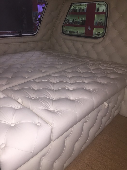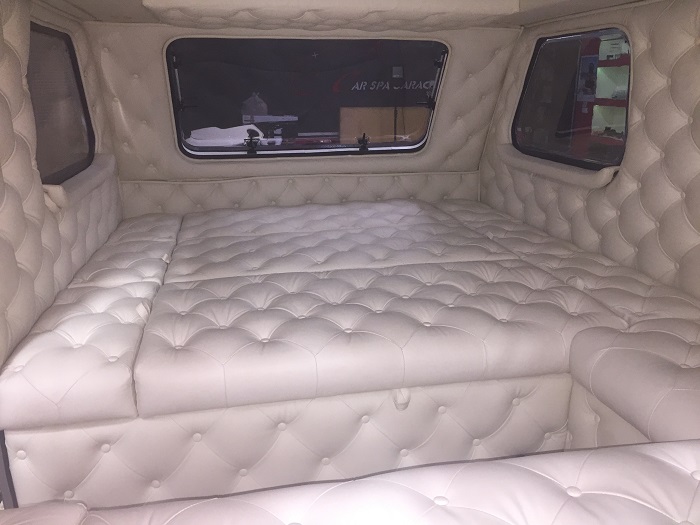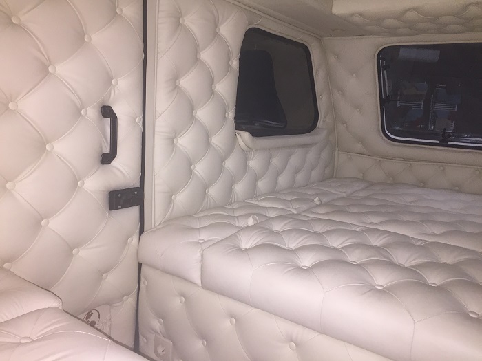 Cała buda dostała nową pikowaną skórzaną tapicerkę takiego samego typu jak w holowniku, pod tapicerką znalazła się gąbka 5 cm.