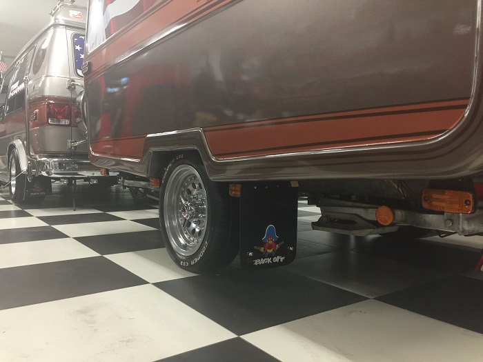 Felgi cięte na pół żeby weszły we wnękę, odnowione, założone opony Coopera identyczne modele jak w holowniku.