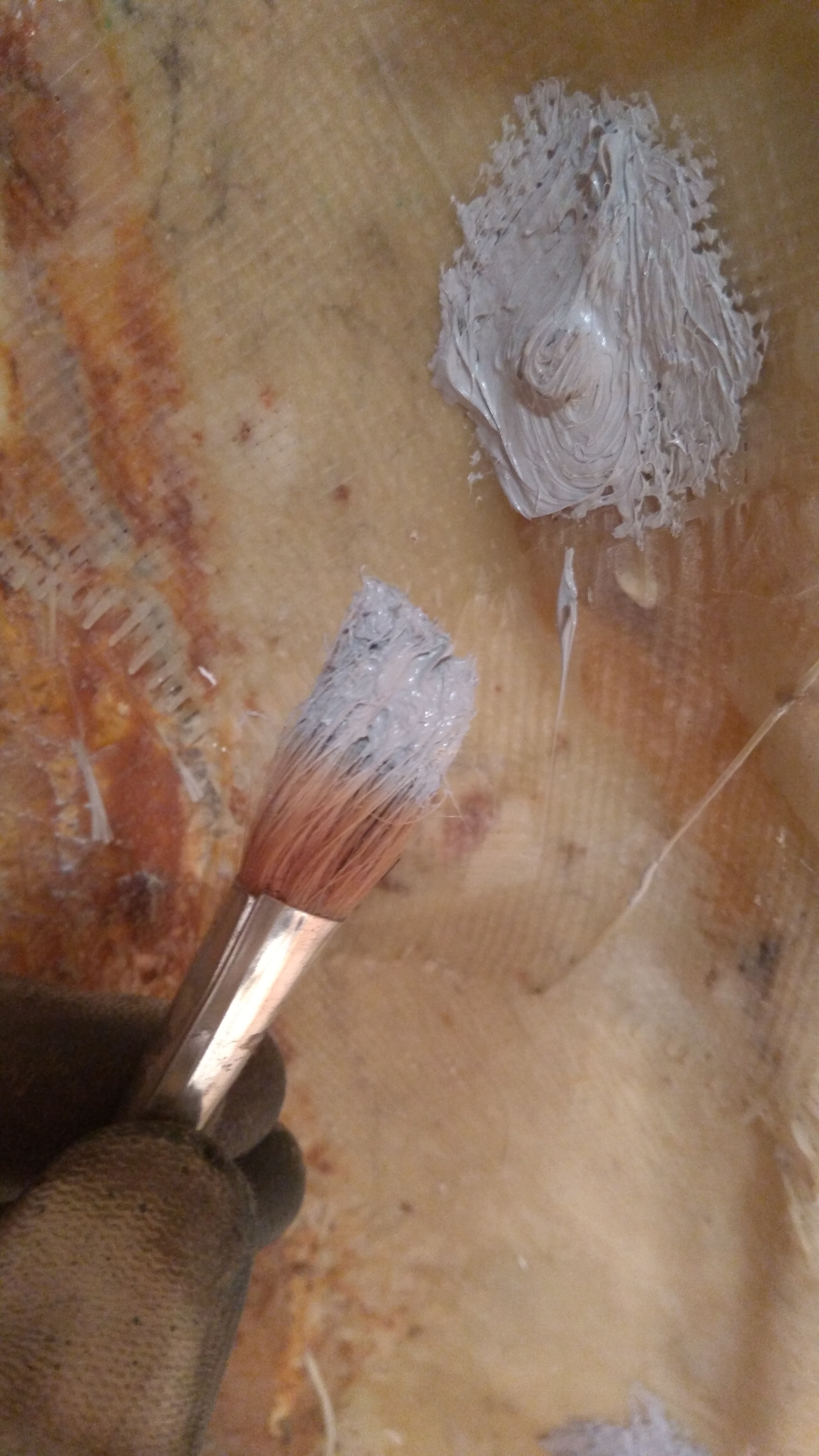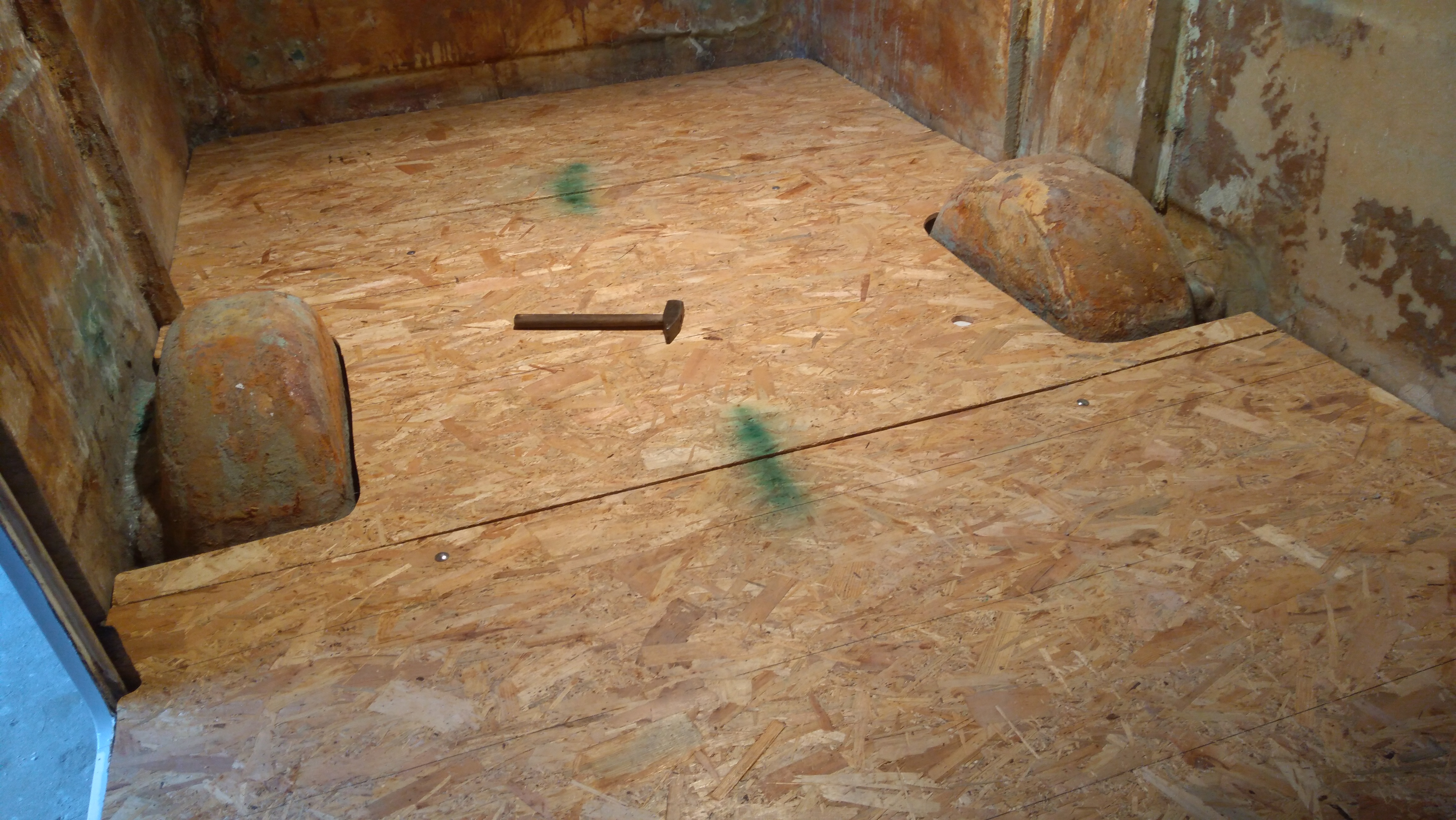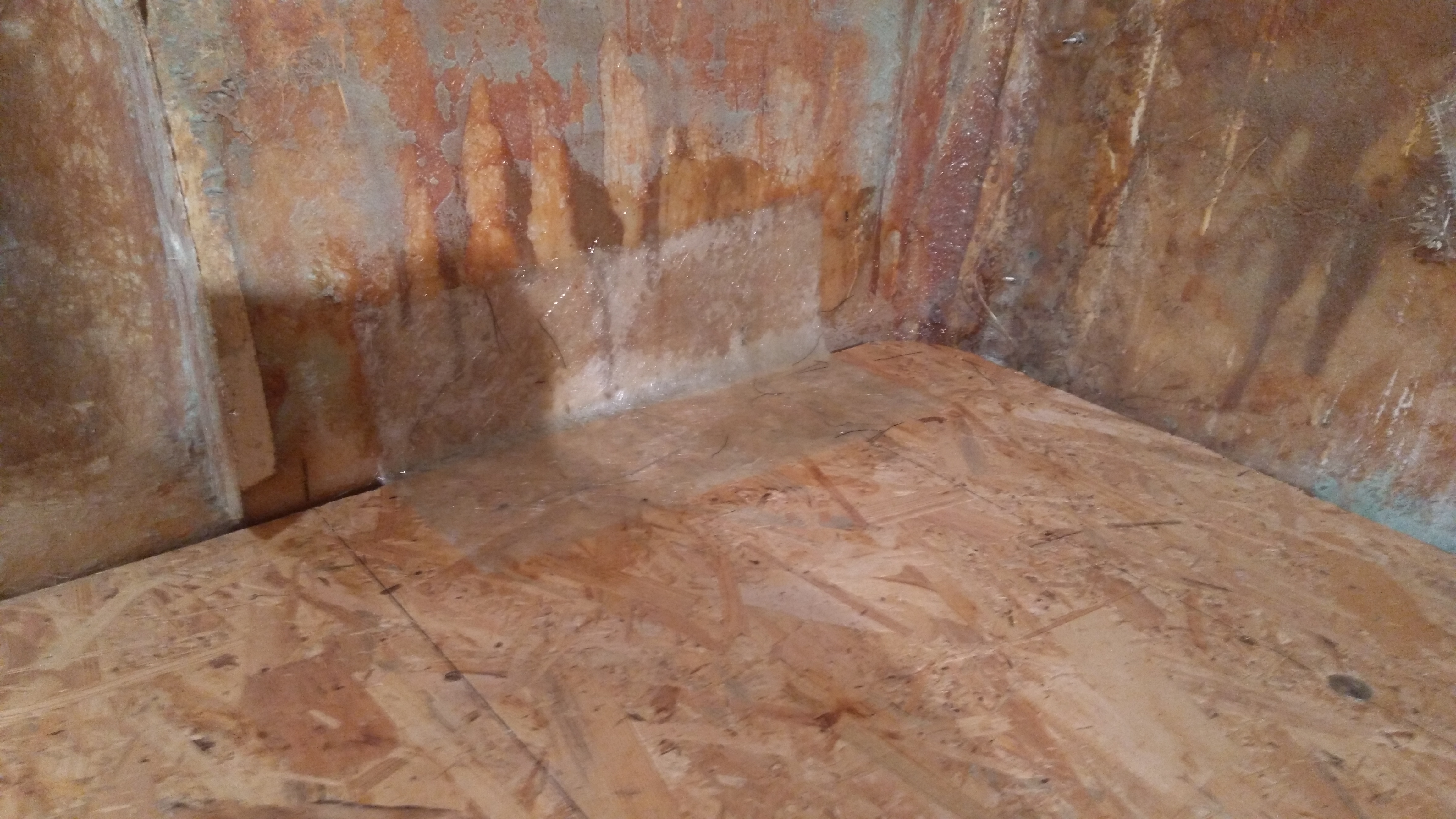 Podkładu 3 puszki a lakieru 5 na budę i 1 na podłogę. W sumie 9 puszek Olivy.