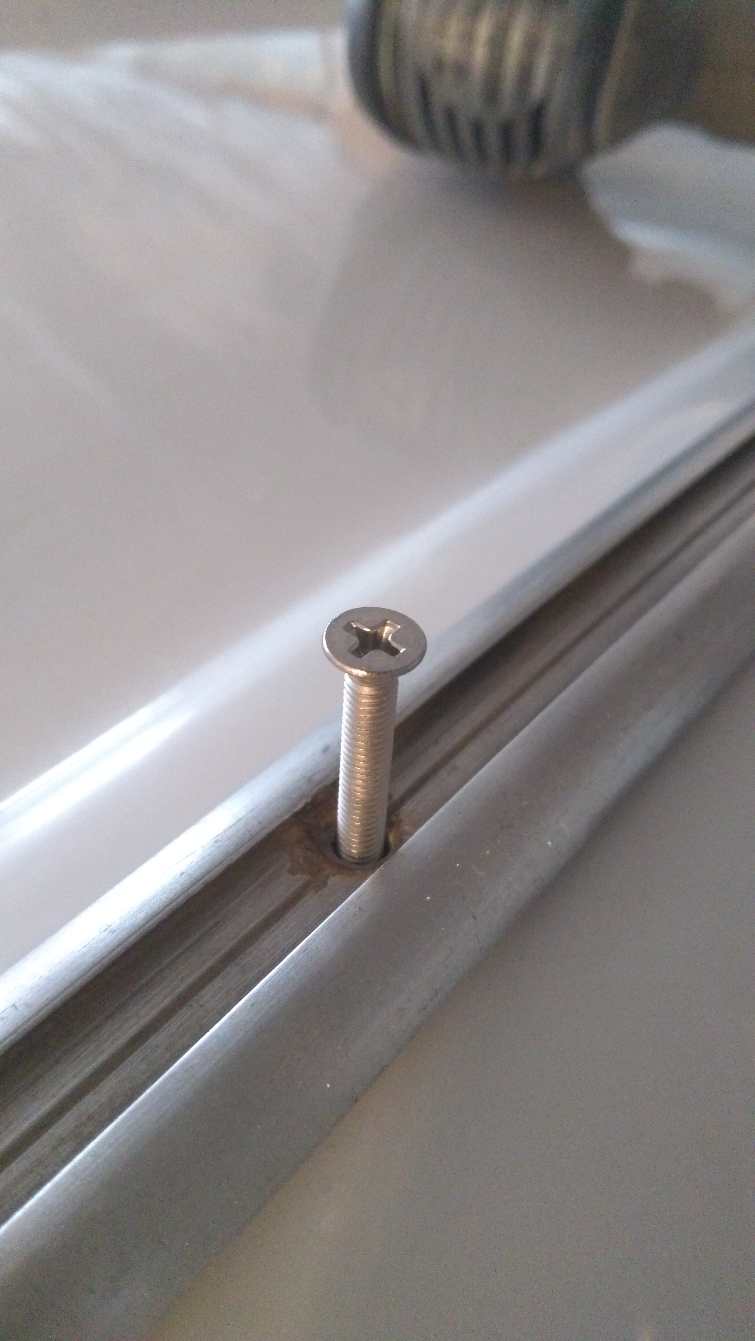 Listwy dałem na butyl i śruby nierdzewne choć przy takim łączeniu paneli przy remoncie wystarczyłby sikaflex ale co tam, niech jest porządnie. Otwory w listwach zfazowalem wiertłem fi 8 aby nowe śruby ładniej się schowały w listwie