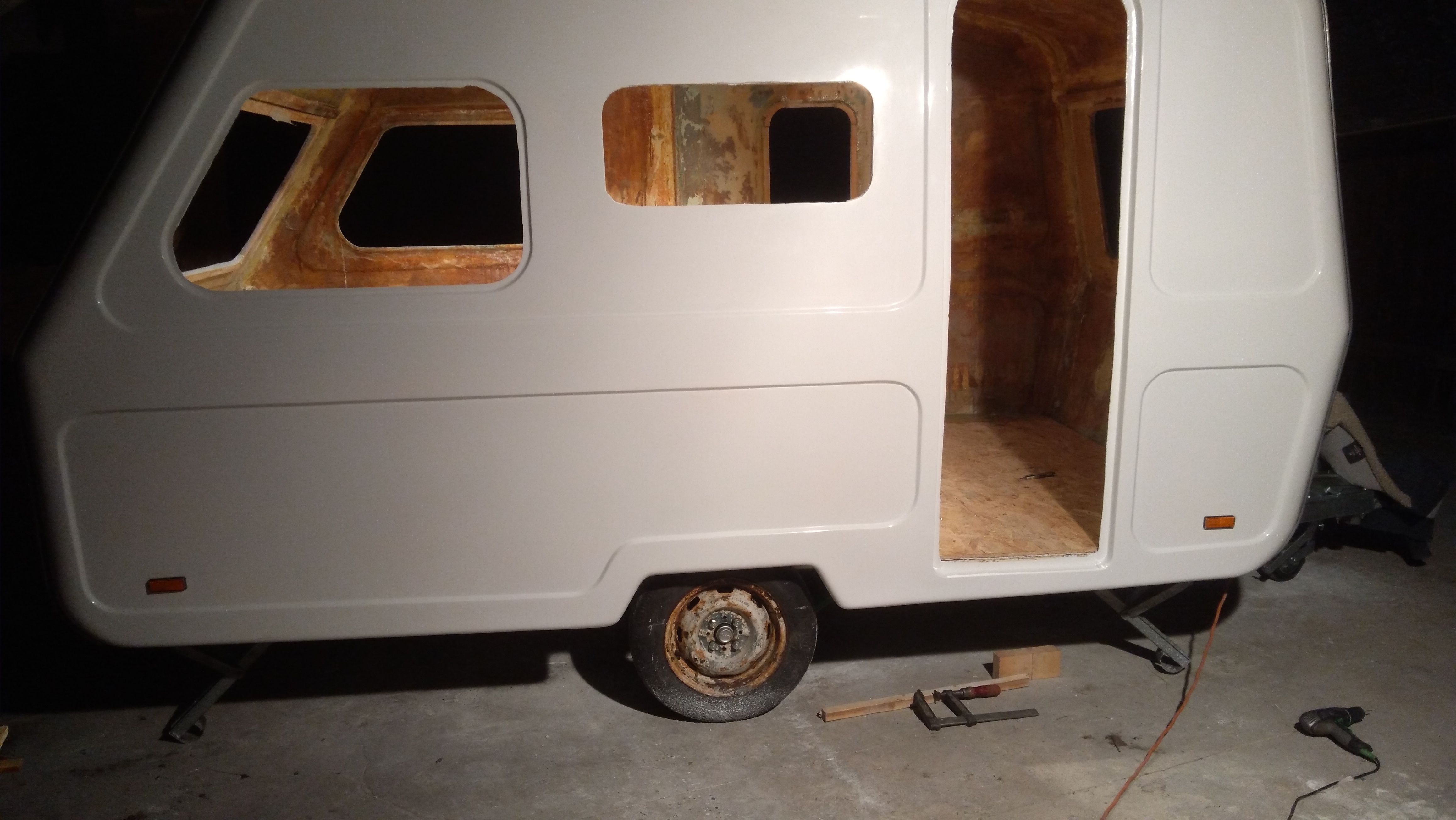 Dziś siadła podłoga, listwy kedrowe, lampy tylne, obrysówki i kawałek termoizolacji