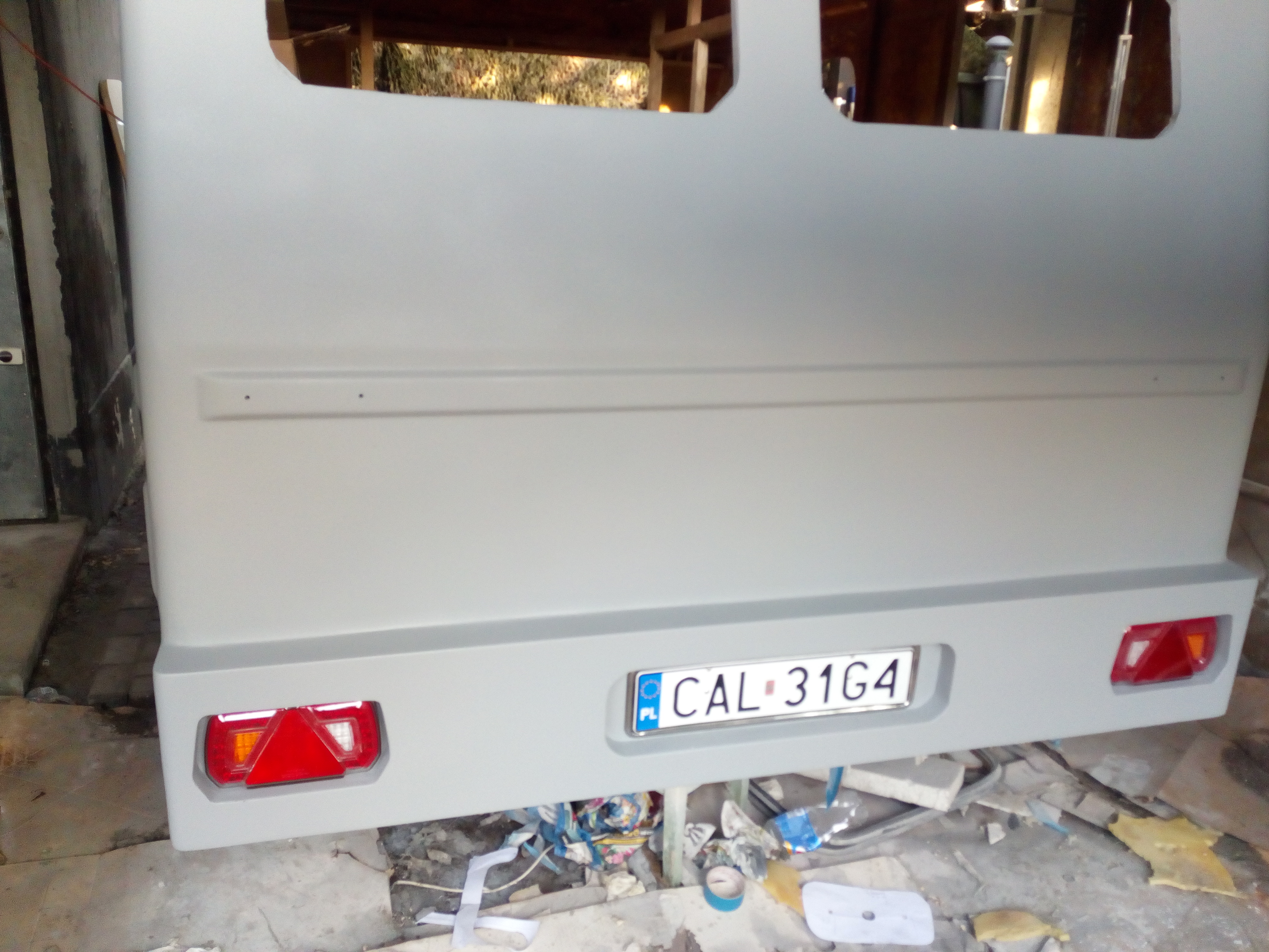 Odcięcia nie będzie widać; listwy okienne i kedrowe zasłonią. Tym czasem to już nie jest podkład, a w końcu pomalowana cała przyczepa!!!!! Jeszcze jak na złość przy ostatnim 0,5 litra pierdyknęła uszczelka pod głowicą w sprężarce. Resztę musiałem na 24litrowej; myślałem, że spuchnie z wrażenia.