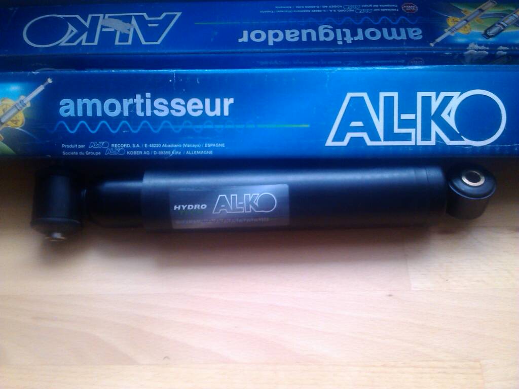 Pogoda za oknem mało zachęcająca do wyjścia więc dzisiaj nadal prace domowe ale właśnie dojechały amorki. Nówka sztuka, podobno do jakiegoś starego passata ale na oko wyglądały ok więc kupiłem. Za komplet z przesyłką wyszło coś koło 70 plnów. Czekam jeszcze na nowe łożyska, bo jak już będę wyciągał oś do spawania to przy okazji wymienię. Uchwyty dorabia mi ojciec na podstawie fotek Maćka. Całkiem przypadkiem są one firmy Al-ko czyli prawie jakby do przyczepy były przeznaczone.