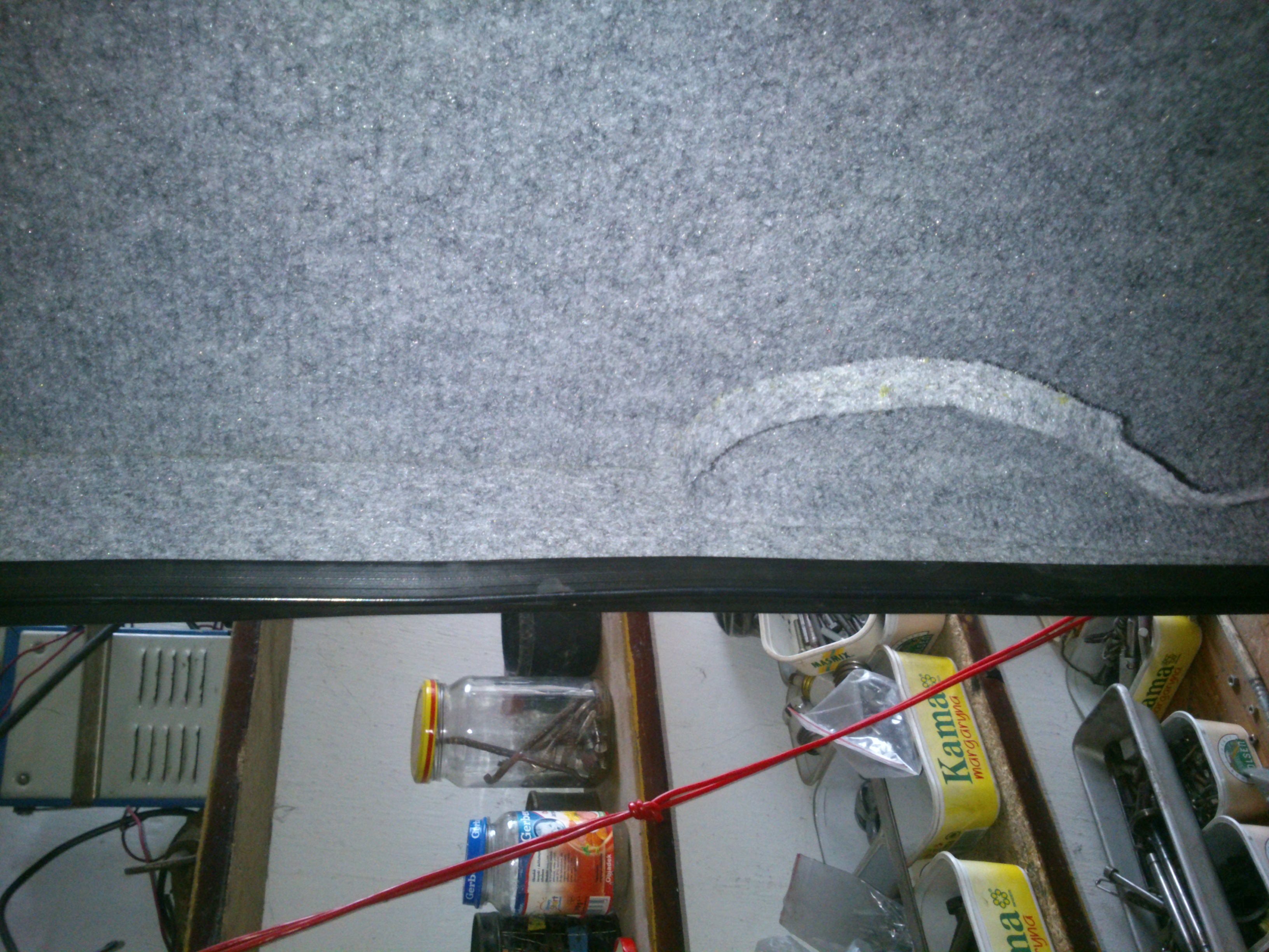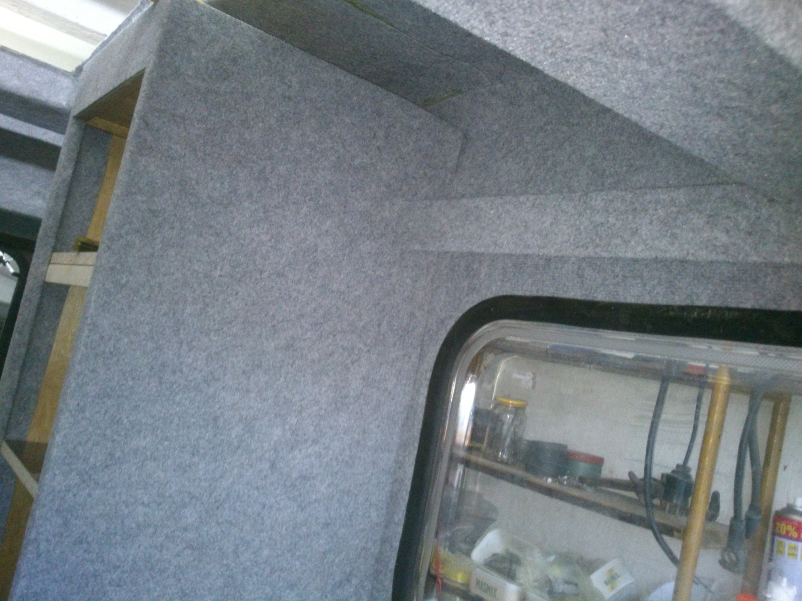 ,otwór w daszku wywierciłem otwornicą za 5zł od Chińczyków idealnie pasuje to największe kółko. Drzwiczki do szafy kupiłem nowe a boki wykleiłem wykładziną,w poniedziałek biorę się za obudowanie trumy -tego boku co wystaje,nie widzi mi się takie rozwiązanie ale tego już nie przeskoczę.