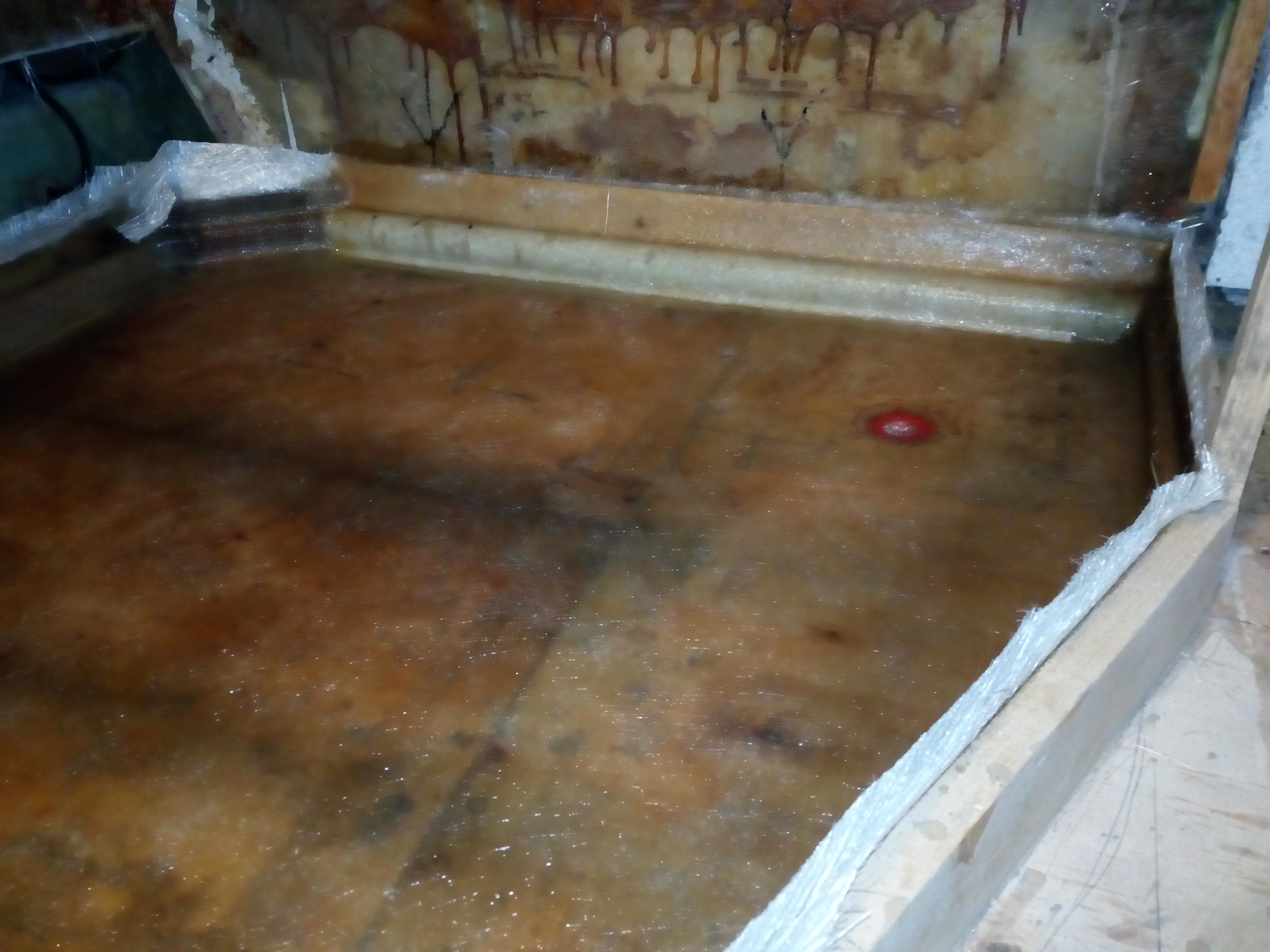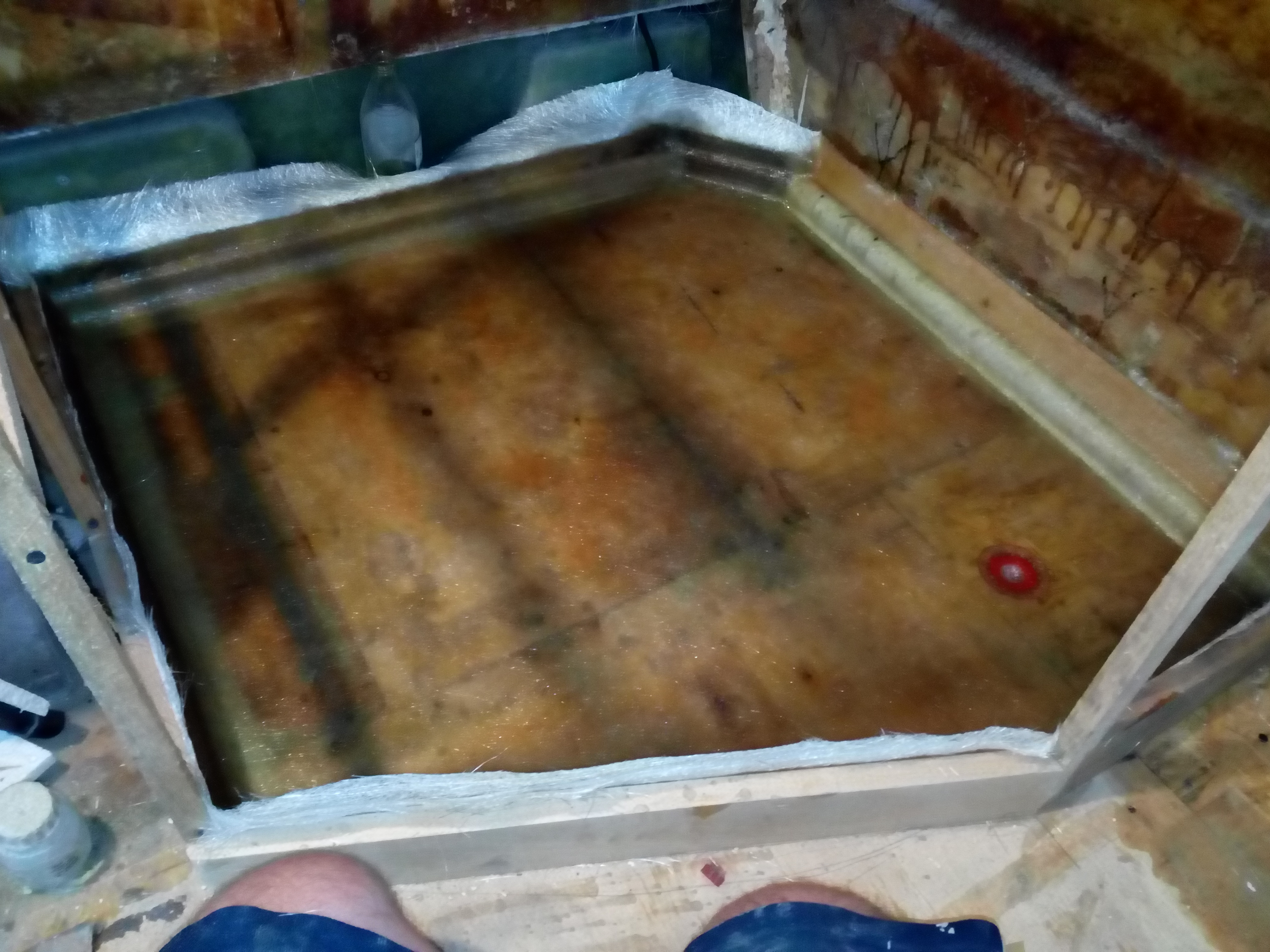 I ruszyłem z koncepcją brodzika. Miały być formy, pierdoły, ale stwierdziłem, że i tak to wyląduje w tym miejscu; sporo krzywizn - kit z formą jadę na "gołego" :lol: Zobaczymy co z tego wyjdzie. Na razie żeluje sobie :mrgreen: 3 warstwy powinny starczyć maty szklanej.