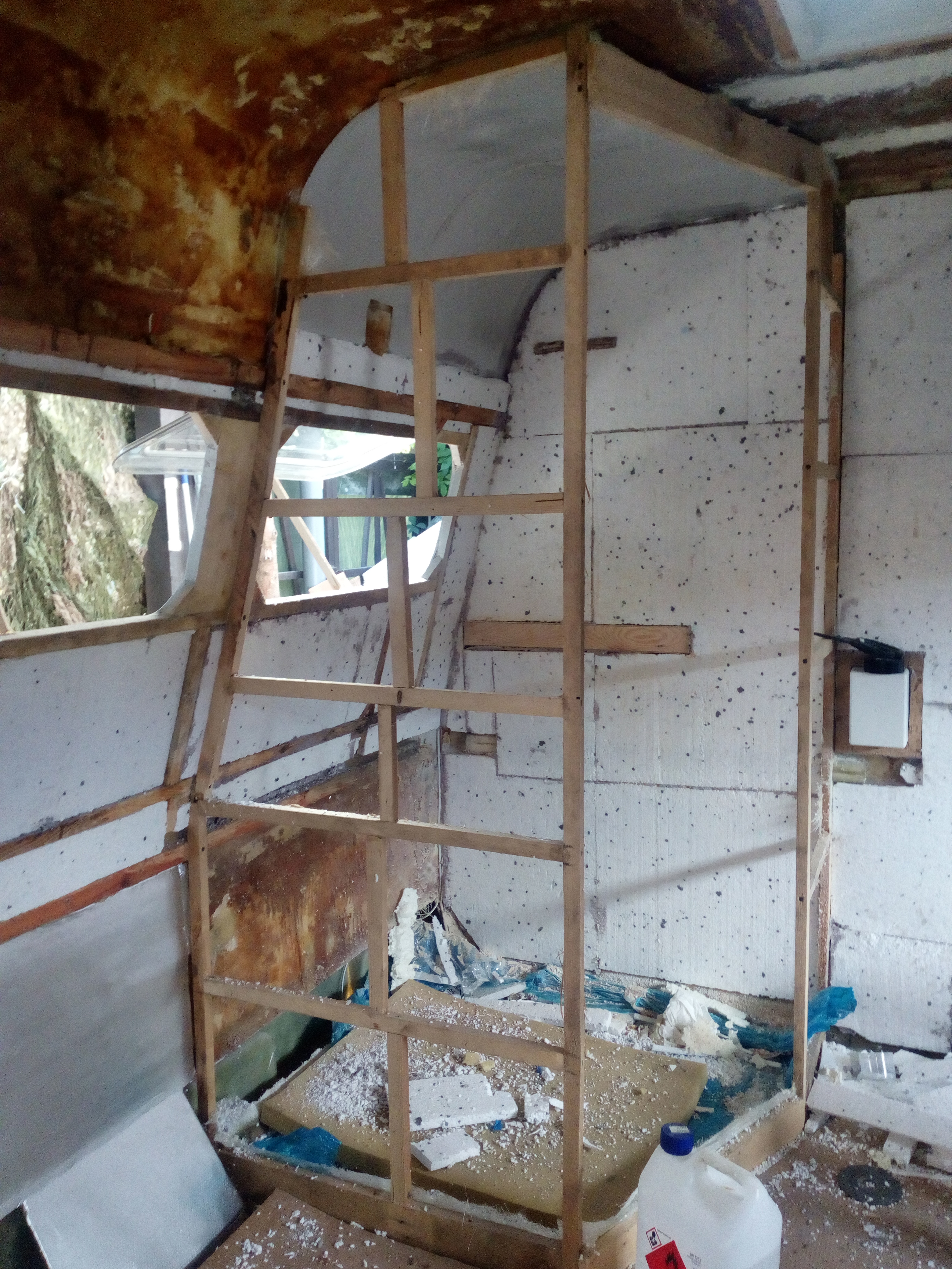 Styropian; hmm. Styropian jakiś podłogowy kupiłem, grubość 10 mm, ale w moim przypadku przy oknach przód-tył 20 mm i jedna ściana, która będzie w łazience też 20 mm; reszta dycha . Kurcze, naprawdę okleiłem 2 przyczepy matami, a patent ze styropianem i pianką robi robotę!