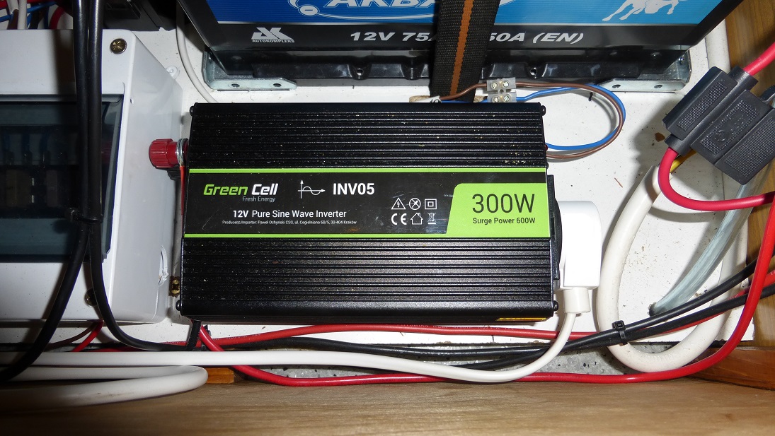 Pisałem wcześniej że przenosiłem włącznik przetwornicy 12V > 230V ale nie pokazałem samego urządzenia, choć już dawno je założyłem. Przetworniczka 300W czysty sinus.