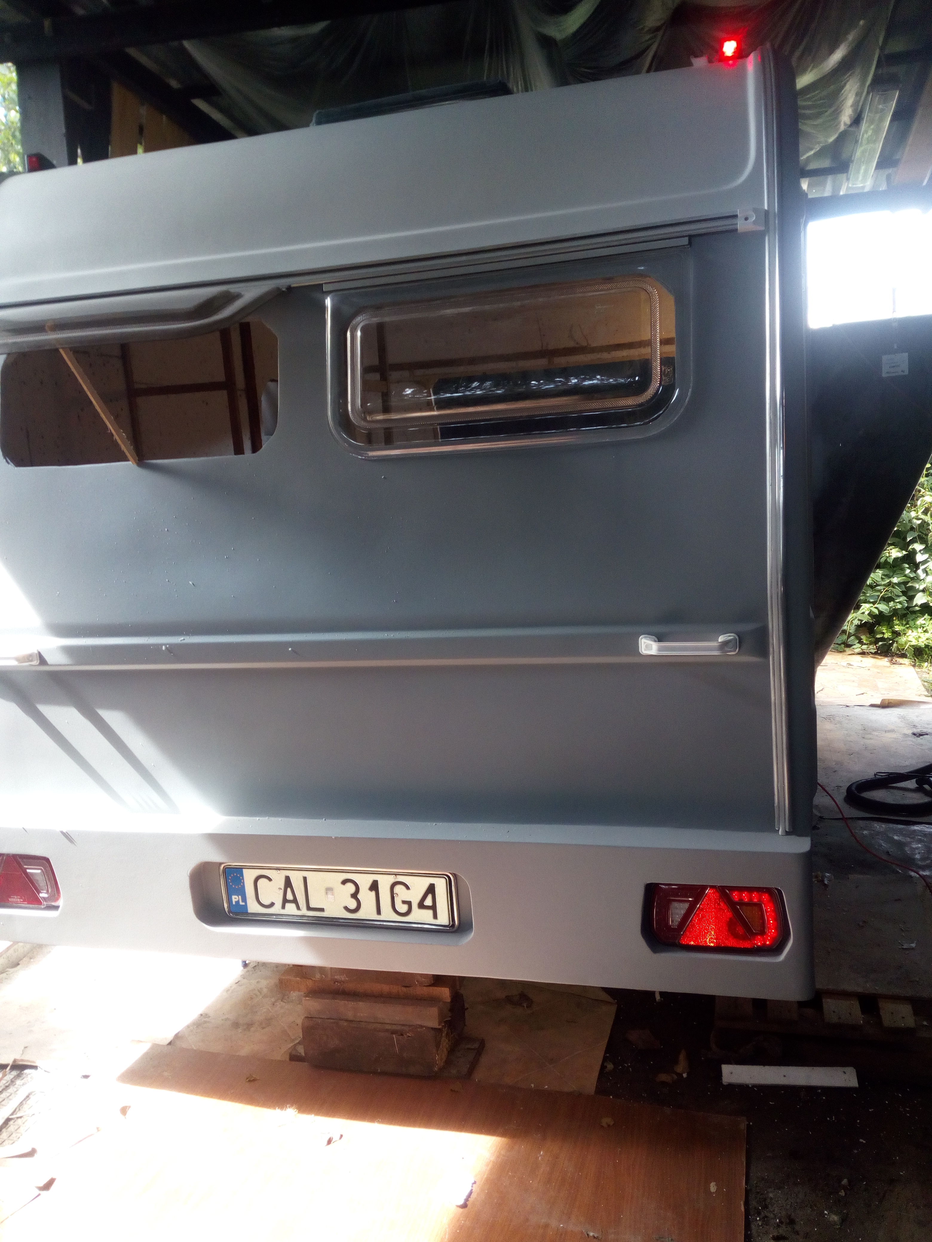 Zanim zrobiłem otwory pod te lampy to samo pierwsze sobie pomyślałem. Wiesz, ale kit z tym, raz się żyje. Dzisiaj brodzisław nabrał koloru, okno się pojawiło i zawitały naklejki z logiem firmy. Pewnie większość wie, a ja się dzisiaj dowiedziałem, że nowe zamknięcia nie pasują do starych szyb...