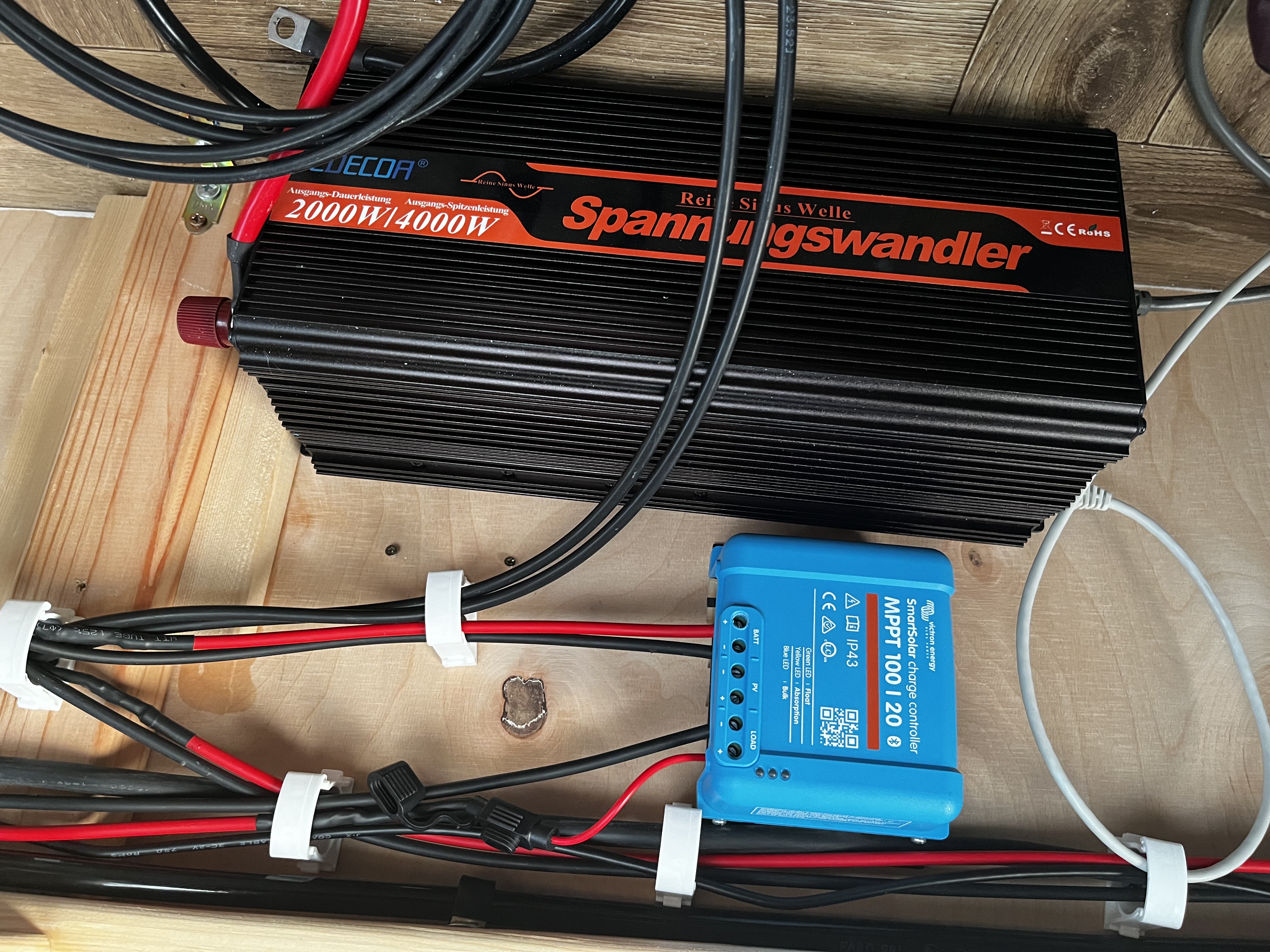Regulator Victron, aku LiFePO4 100Ah i zasilacz komputerowy.