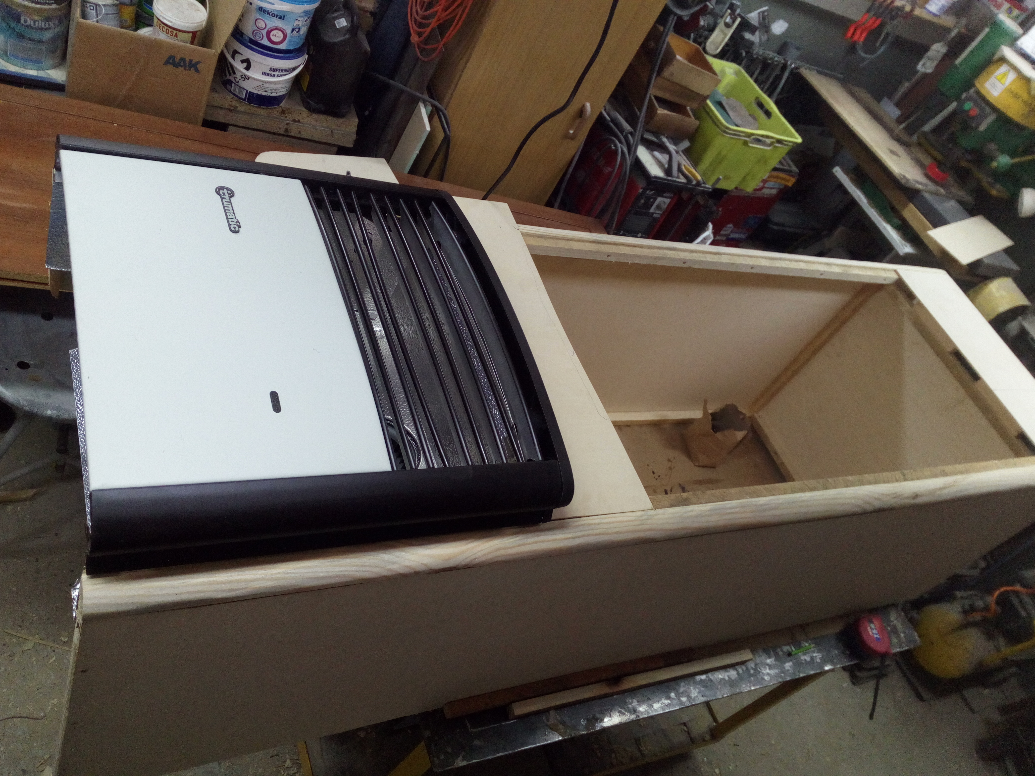 Stworzyłem dziś nowe mebelki oraz kupę innych cudownych rzeczy, których nigdy nie będzie widać, a jednak będą działać... Stworzyłem jakieś "optymalne" warunki dla pracy Trumy oraz lodówki. Co do lodówy wiadomo, jeszcze wentylatorki oraz kuweta na dole do odmrażania...