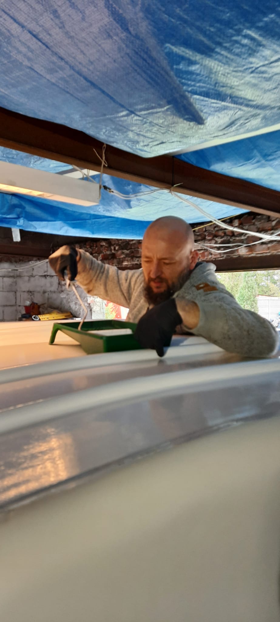 Niestety nie mam warunków do malowania pistoletem więc ostatecznie będzie wałek, dlatego pytam o farbę. Laminat jest w dobrym stanie, w jednym miejscu jest lekko wgnieciony narożnik i jest jeden pająk na dachu. Trochę poszpachluje. Co do okna 50x50 trzeba wklejać kantóweczke aby zrobić grubość montażową dachu więc i tak jest robota z żywicą. Trochę się pobawię i będę zmniejszał. Jak wyjdzie? Zobaczymy. Trzeba się przekonać na własnej skórze :D .