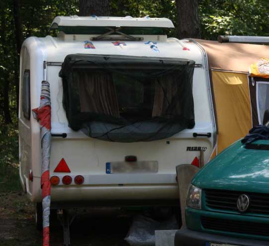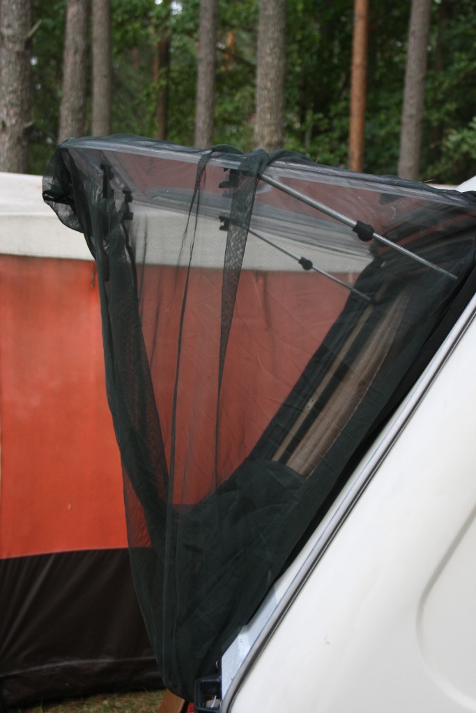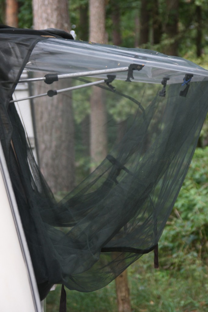 Otóż patent jest najprostszy z możliwych jakie wymyśliłem, a w zasadzie sam się nawinął. Miałem bowiem ze sobą dwie moskitiery armii brytyjskiej (dawno temu kupiłem i akurat wziąłem - ja lubię brać ze sobą na wakacje mnóstwo rzeczy niepotrzebnych).