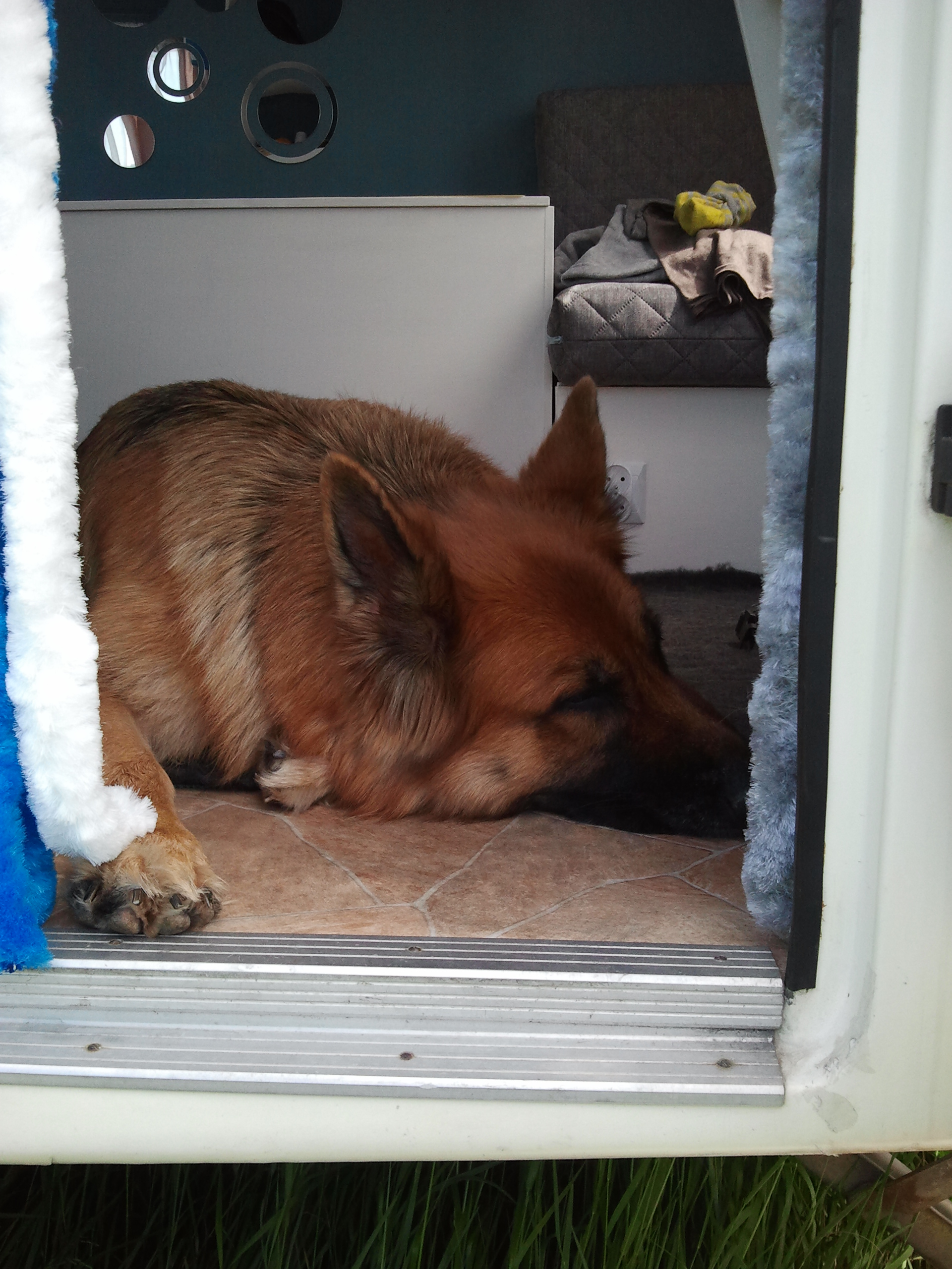 Moja psinka lubi sobie popatrzeć z przyczepki lub popilnować. Przydałby mi się daszek taki jak zrobił u siebie Tarapukuara.