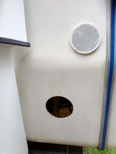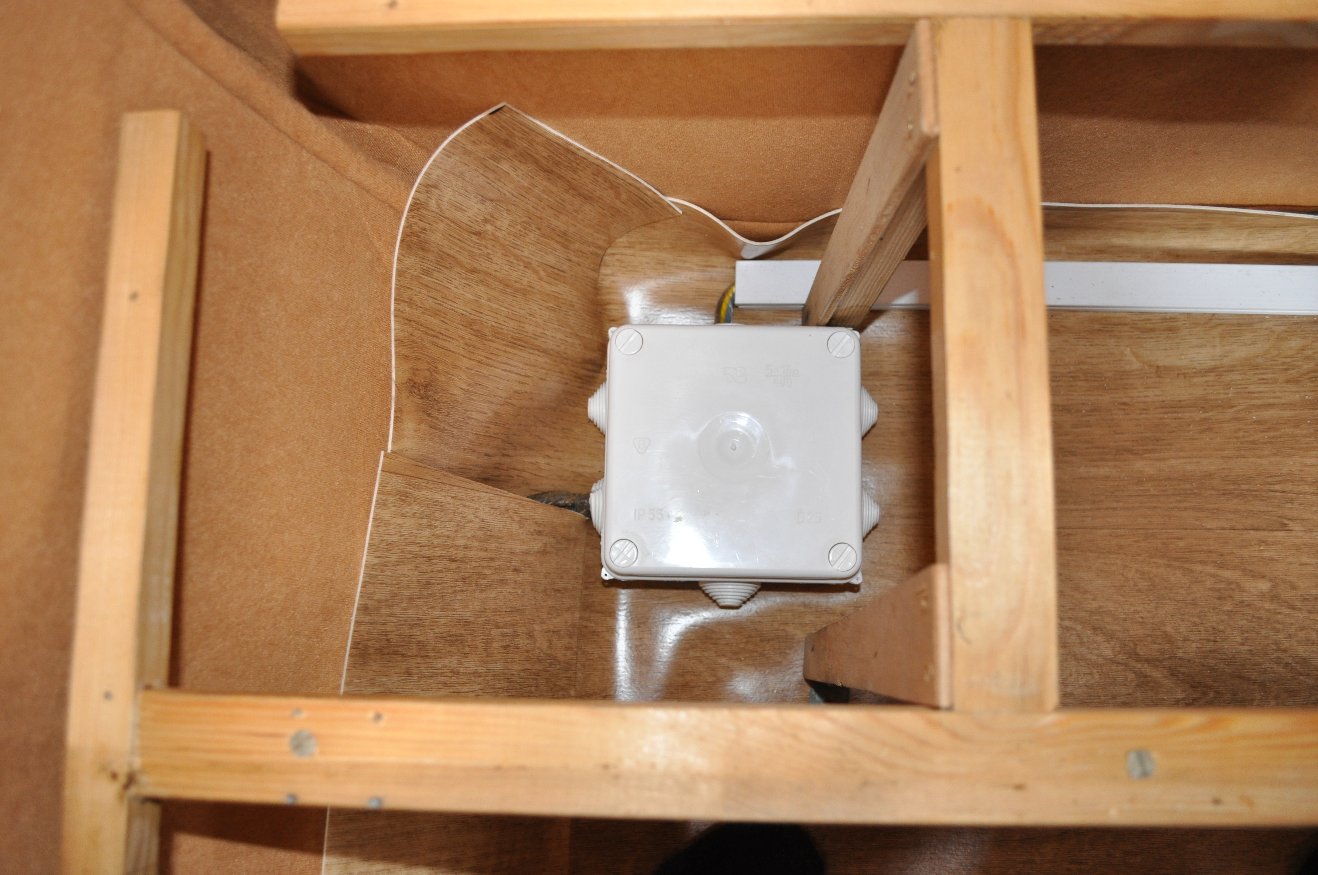 Co gorsze przy nowym kufrze gniazdo 220V wychodzilo w miejscu sciany nowego kufra , trzeba było je przesunąć. Zaoparzyłem się w żelkot , żywicę , matę , pierwszy raz mialem laminować ale przy pomocy pewnego szkutnika ktory opowiedział mi jak to najlepiej robić , zalatalem dziurę po starym gnieżdzie i zrobiłem nowa obok.