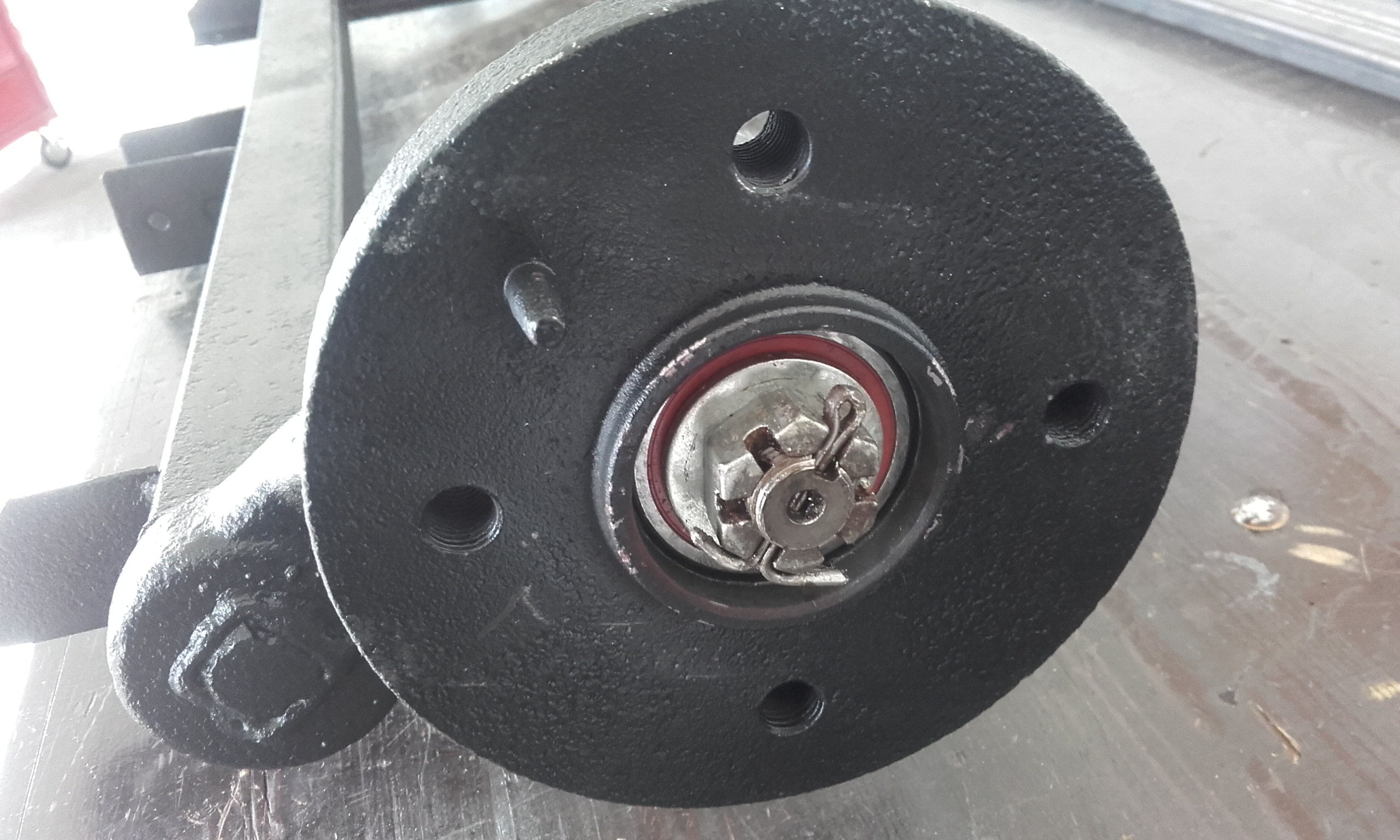 Na następnym zdjęciu,piasta koła zamontowana na osi i dokręcona śrubą: