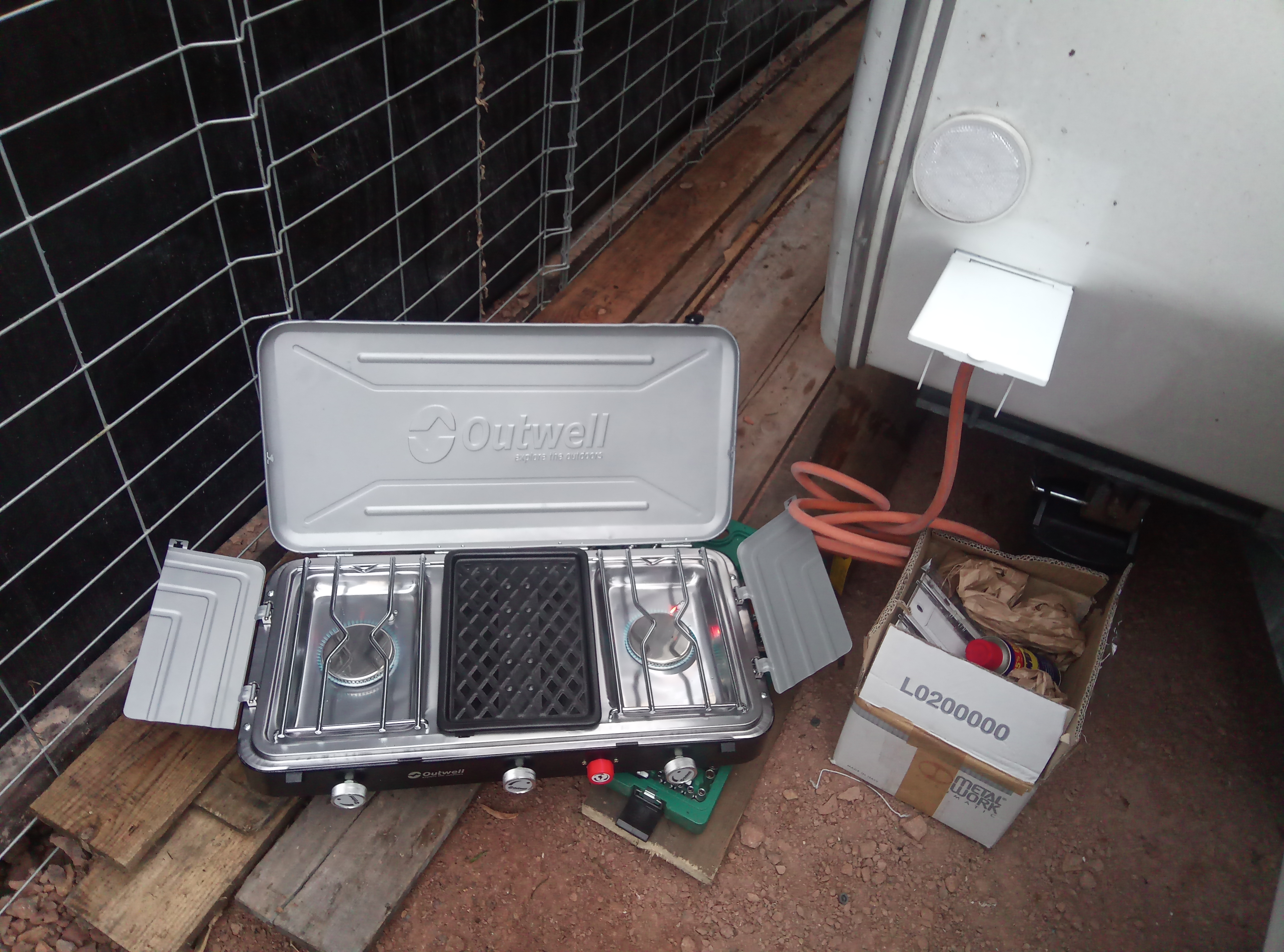 Poza tym dzisiaj były intensywne testy pieca. Grzeje jak wściekły, po ok 30min na maksa w przyczepie ukrop. Były tylko małe problemy z regulacją, grzał albo full, albo wcale. Po paru minutach pracy regulacja ,,wróciła,, ale nie do końca.Jest 0, potem pół i full. Nie wiem co może być przyczyną, na razie nie ruszam. Wyjdzie w praniu.