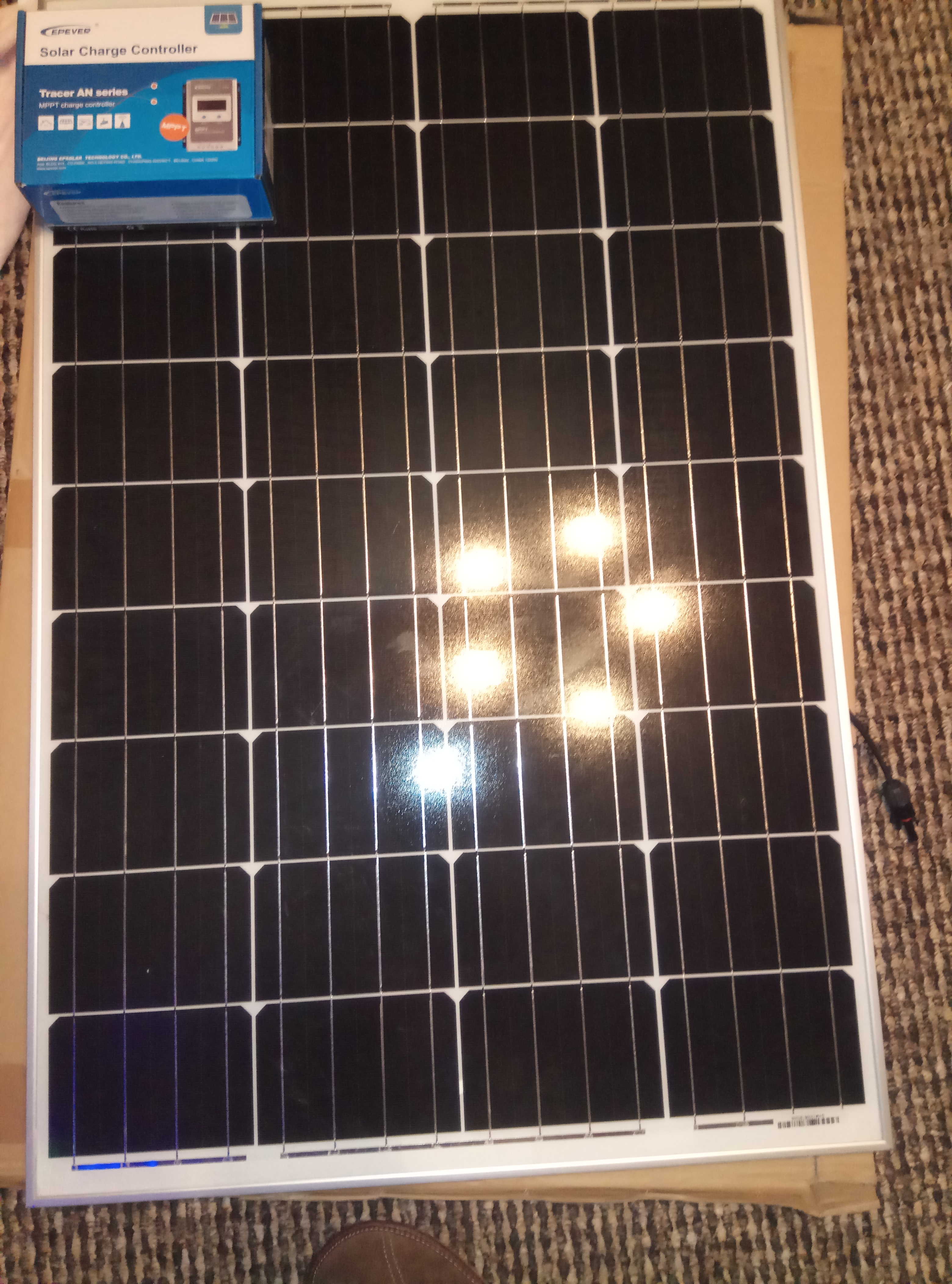 Przyjechała elektrownia. Jak zwykle kolejne udane zakupy u Bartka, dzięki raz jeszcze. Będzie jednak taki sam jak w zgniłku, 12V 100w, sterownik mppt. Działało, prundu nie brakowało, po co zmieniać. Waham się tylko jeszcze cały czas, czy na dach, czy na stelażu i mobilny. Ale to jak pogoda pozwoli, to będę robił przymiarki.