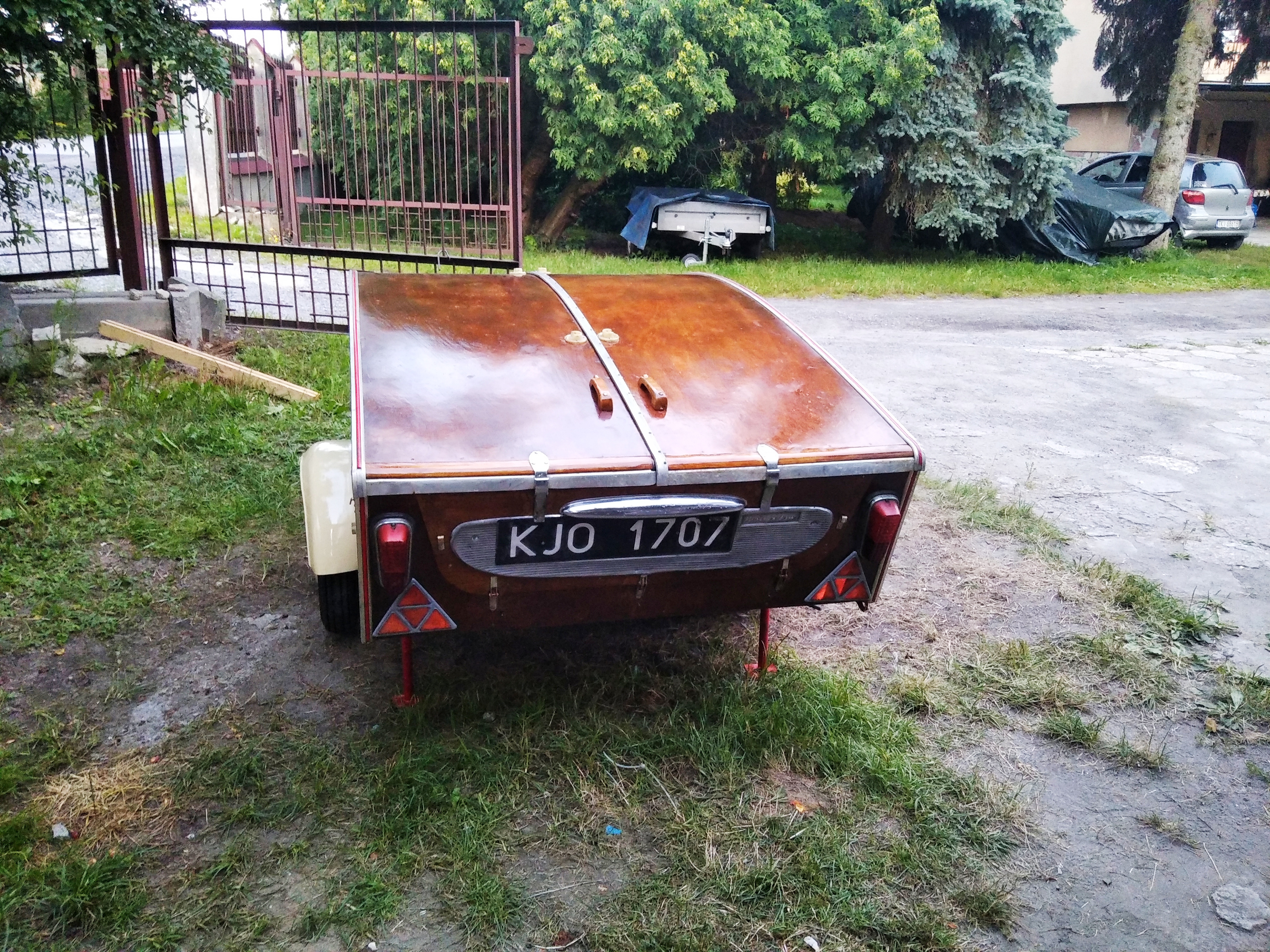 Przyczepa sama w sobie klasa. Proszę żeby Kolega się nie gniewał ale nie przyłożono się do drewienka. Restaurację należało zlecić fachowcowi, który zamiast szlifowania wycyklinował by skrzynię ze starych lakierów i przed lakierobejcą zagruntował by powierzchnię epoksydem albo rozcieńczonym lakierem żeby ujednolicić podłoże. Wtedy kolor byłby równy bez takich ciemnych łat, które świadczą o przecierkach i o tym, że było grzebane. Ech te elektronarzędzia... gdyby nie one to walizkę kasy by Kolega za to dostał. Ciekaw jestem jak będzie wyglądała po dwóch latach od remontu.