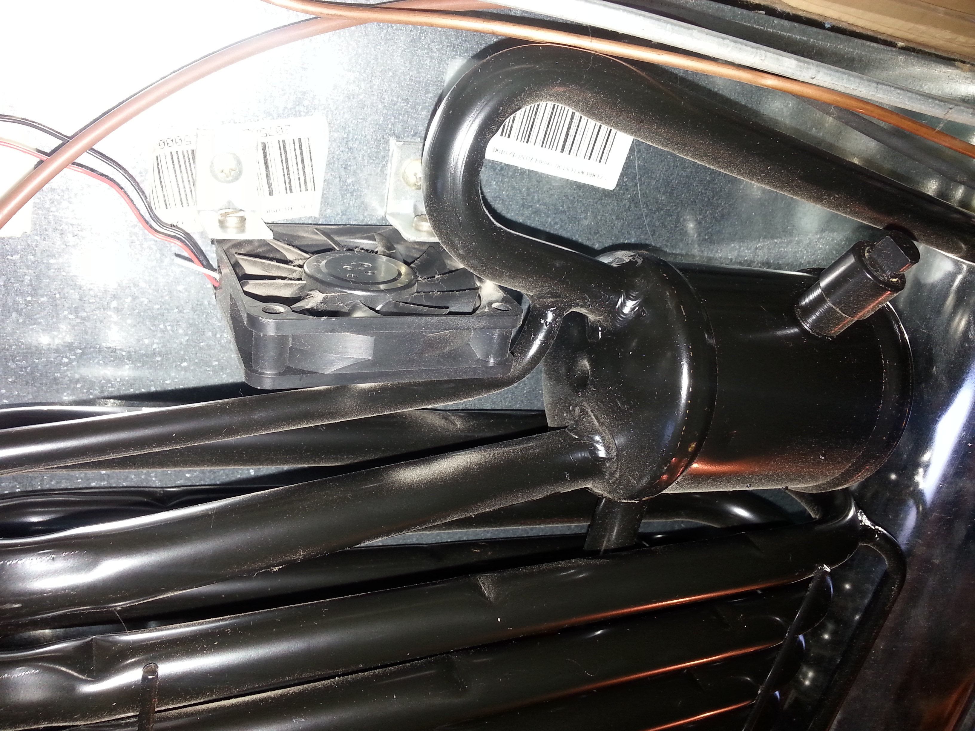 Pogoda wiadomo jaka jest więc na wyjazd przyczepą spod wiaty trzeba jeszcze trochę poczekać. Dziś z nudów założyłem miniwentylatorek na radiator lodówki z odzysku po laptopie.