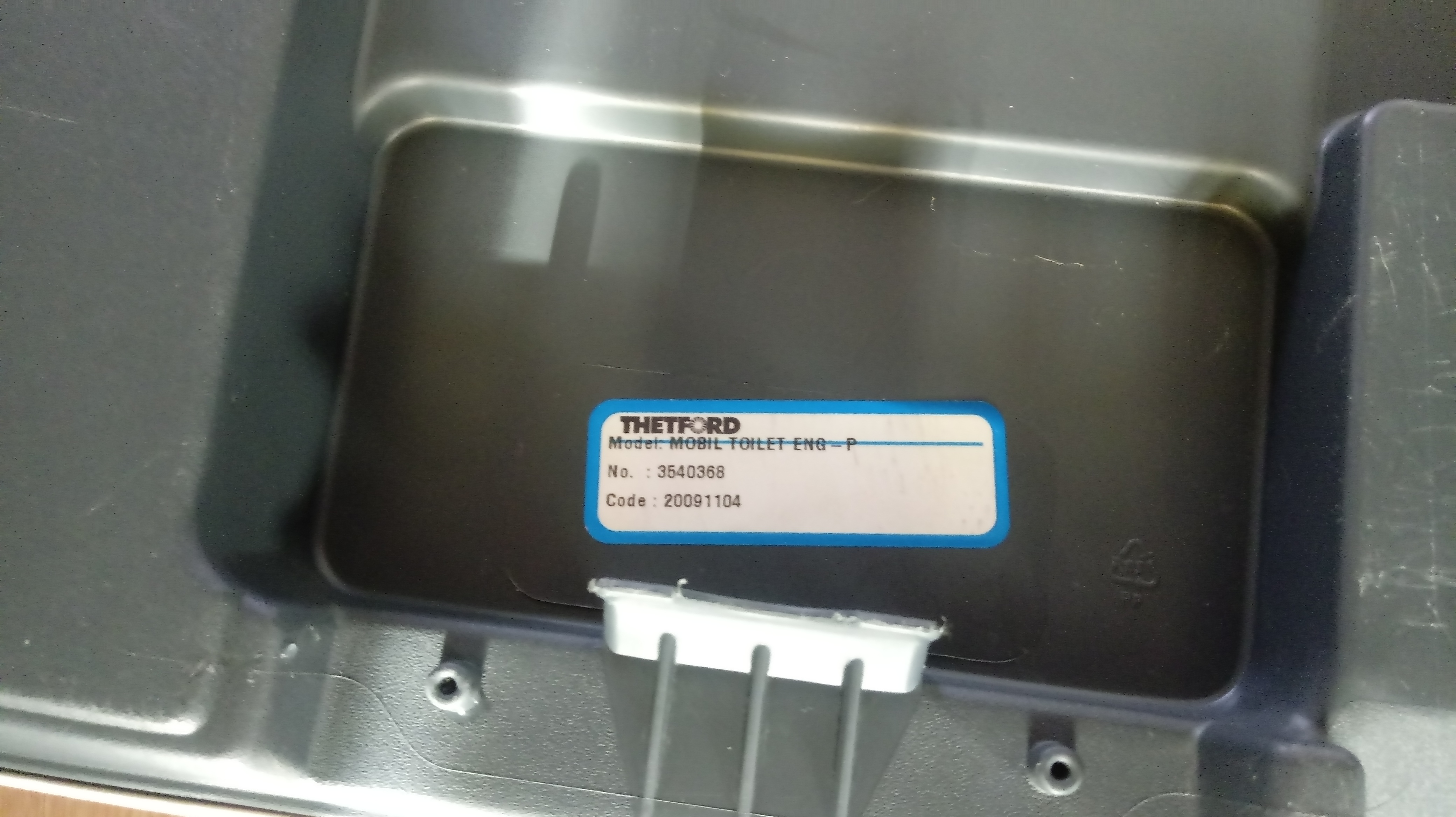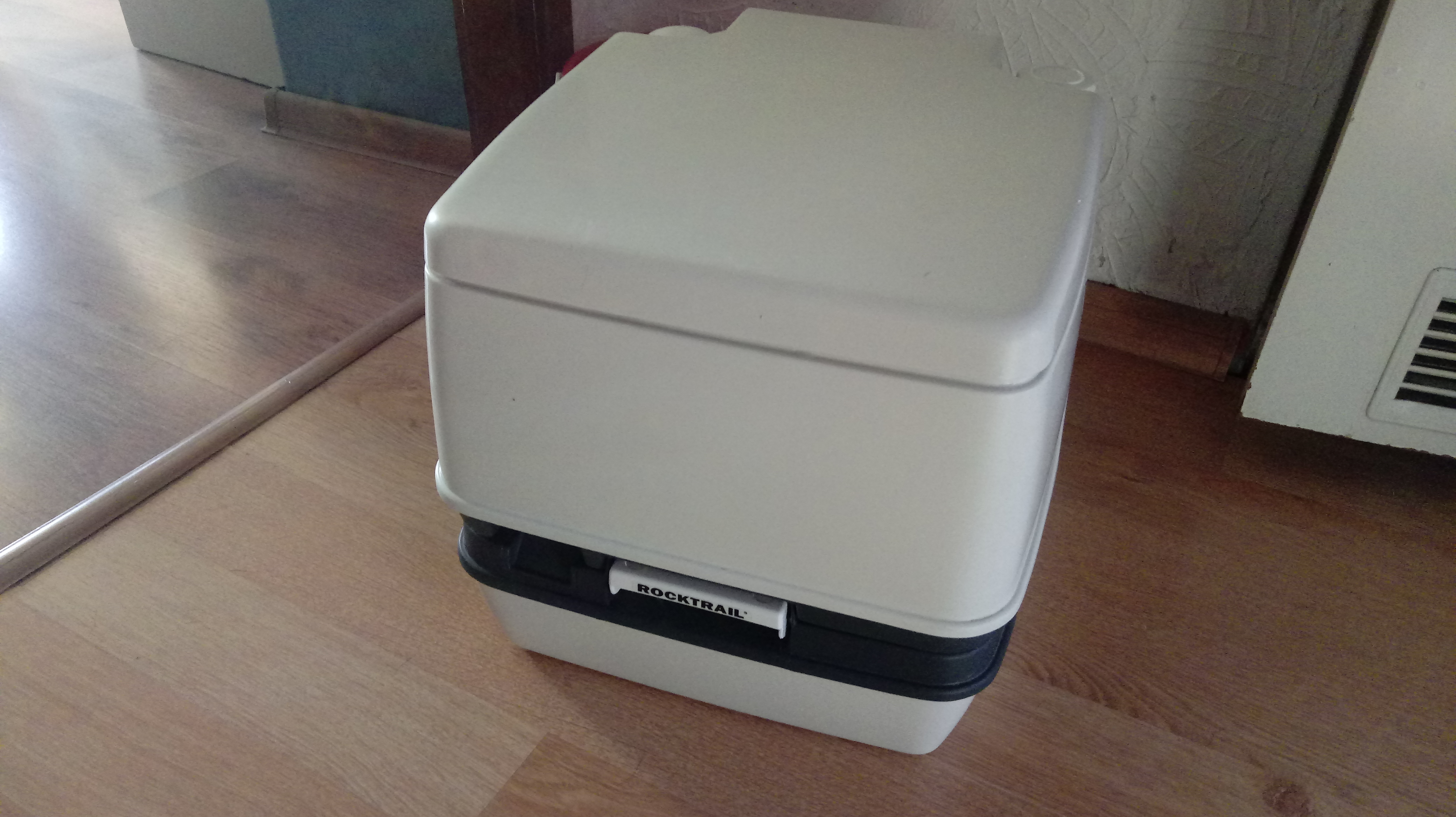 Od jakiegoś czasu przymierzaliśmy się do zakupu reaktora atomowego do naszej przyczepy. W sobotę po 22, przeglądając OLX natknąłem się na ogłoszenie sprzedaży kibelka w cenie dobrej flaszki. W niedzielę był już u nas. Podobno użyty raz i na taki wygląda. Z tego co wyczytałem, to ROCKTAIL jest marką Lidla, ale na kibelku znalazłem naklejki THETFORD. Na rurze spustowej też widnieje logo THETFORD.