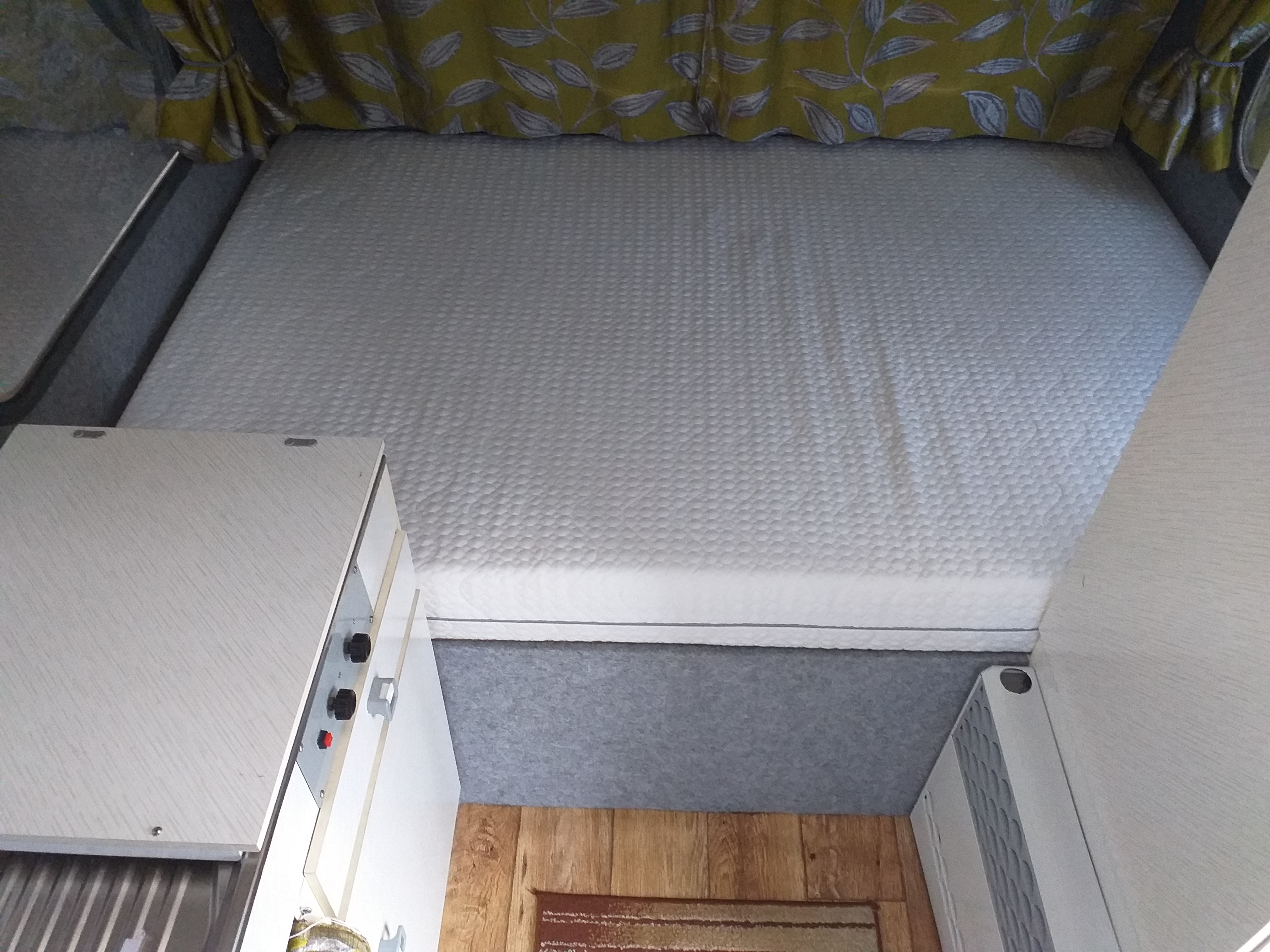 Łoże jak trzeba. My po sezonie zdecydowaliśmy się jednak na oryginalny układ materacy. Ale to dlatego, że planujemy jesienno-zimowo-wiosenne wypady i czasem jednak będzie się w tej przyczepie siedziało.