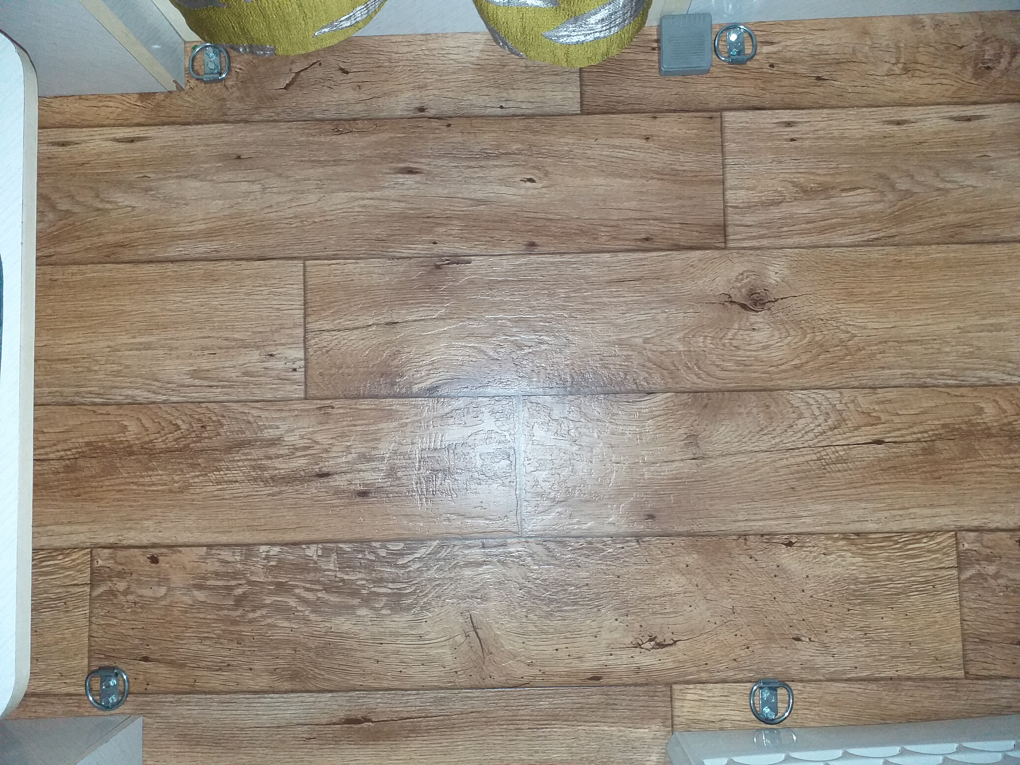 Od jakiegoś czasu myślałem nad takimi uchwytami do mocowania bagażu na podłodze. Po tym jak Rafalski zafundował sobie takie cuś to i ja nabrałem odwagi na montaż. Wygląda to średnio ale nasze przyczepki wymagają czasem pójścia na kompromis ;) Teraz stolik,krzesła czy przedsionek nie będą obijały szafki czy pieca. Solidne oczka w liczbie czterech sztuk już zamontowane.