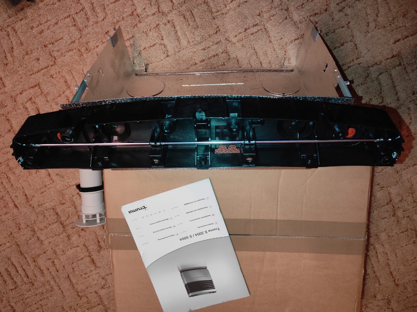 W panelu na czas transportu umieszczony jest pręt do obsługi zaworu. Pręt jest bez pokrętła bo ono będzie w przedniej obudowie.
