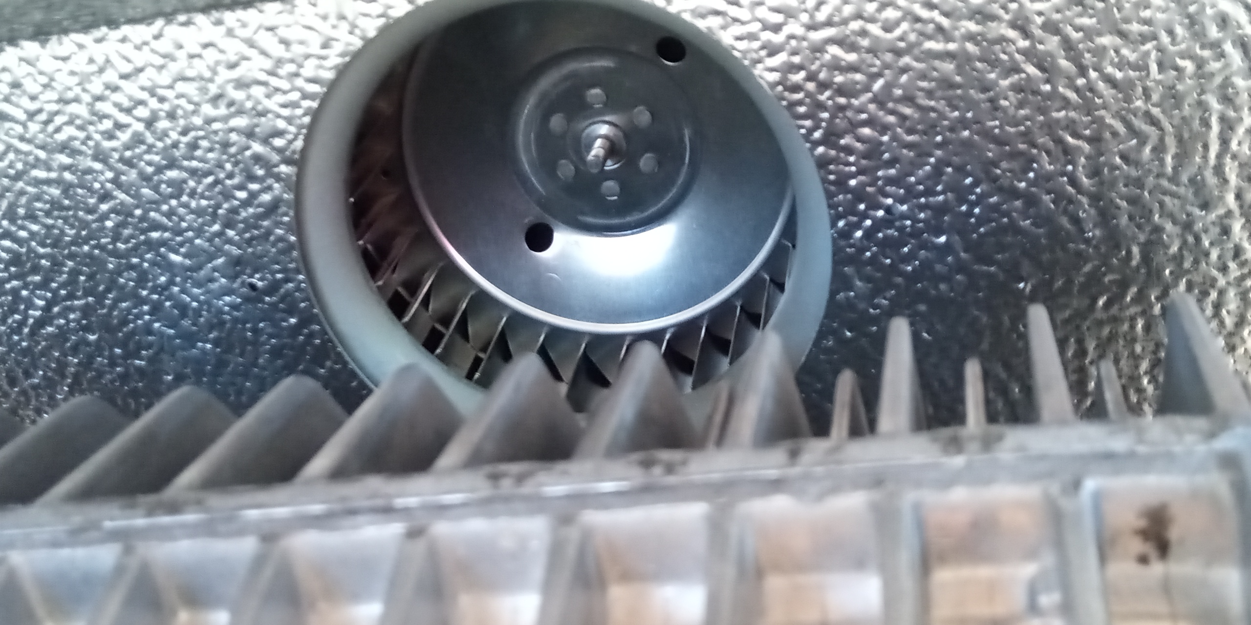 Stary piec zdemontowany. Obecna blacha wylatuje z otworu który muszę trochę powiększyć aby założyć nową osłonę. Sądziłem że stara zostanie ale podstawa nowego pieca ma inny kształt i palnik haczy.
